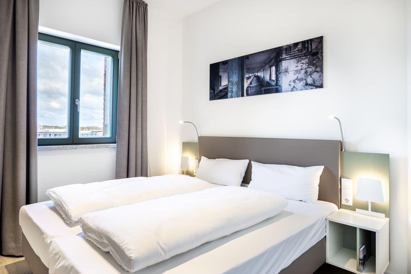 Das 43 m² große barrierearme 2-Zimmer Apartment, wiks4-56, befindet sich im Upstalsboom Krusespeicher und ist für bis zu 4 Personen geeignet. Das moderne Apartment mit Blick auf den Hafen verfügt über kostenfreies WLAN.
