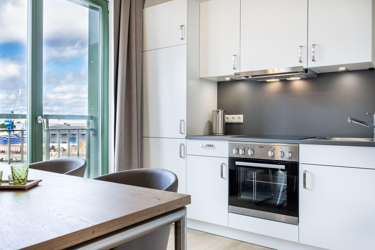 Das helle Apartment verfügt über bodentiefe Fenster, Fußbodenheizung, kostenfreies WLAN und eine voll ausgestattete offene Küche mit Geschirrspüler, Kühlschrank mit Tiefkühlfach, Herd mit 4 Glaskeramikkochfeldern und Backofen, Kaffeemaschine, Toaster, Wasserkocher und Mixstab. Im kombinierten Wohn-Essbereich befinden sich eine Doppelschlafcouch (1,40 x 2,00 m), ein Flatscreen-TV (42 Zoll), eine HiFi-Anlage sowie Gesellschaftsspiele. Das Schlafzimmer beinhaltet ein komfortables Boxspring-Doppelbett (1,80 x 2,00 m) und einen Flatscreen-TV (42 Zoll). Im geschmackvollen Badezimmer stehen euch eine ebenerdige Regendusche, ein Waschtisch, WC, ein Handtuchwärmer sowie ein Föhn zur Verfügung. Das Apartment verfügt über einen Safe für eine Laptopgröße bis ca. 17 Zoll. Ein Kinderbett kann gegen Entgelt im Wohnbereich aufgestellt werden. Haustiere sind in diesem Apartment herzlich willkommen.