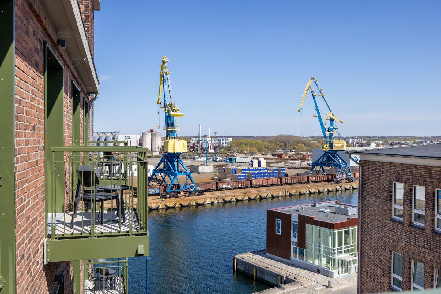Modernes Apartment mit Balkon, WLAN und Sauna im Hafen von Wismar.