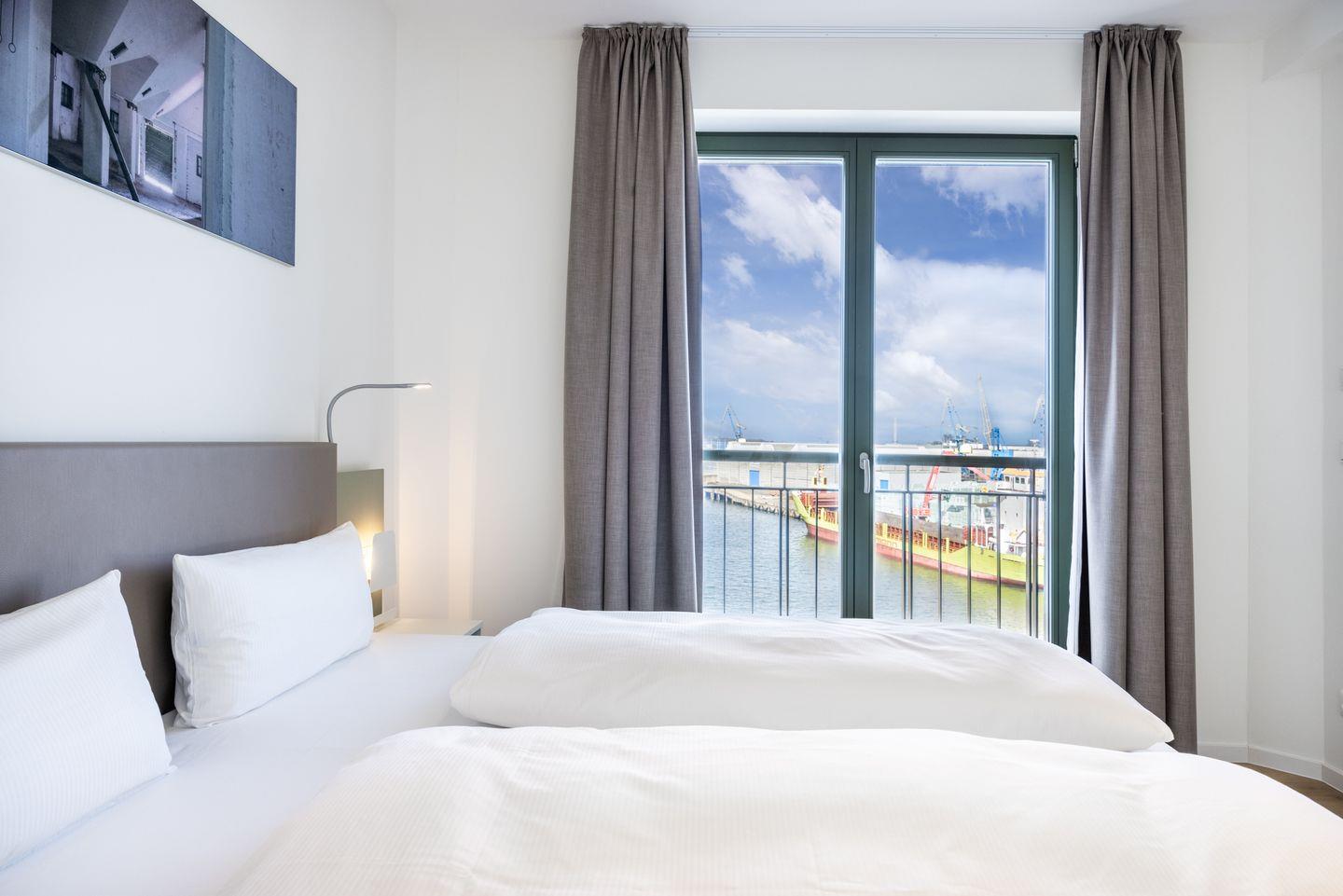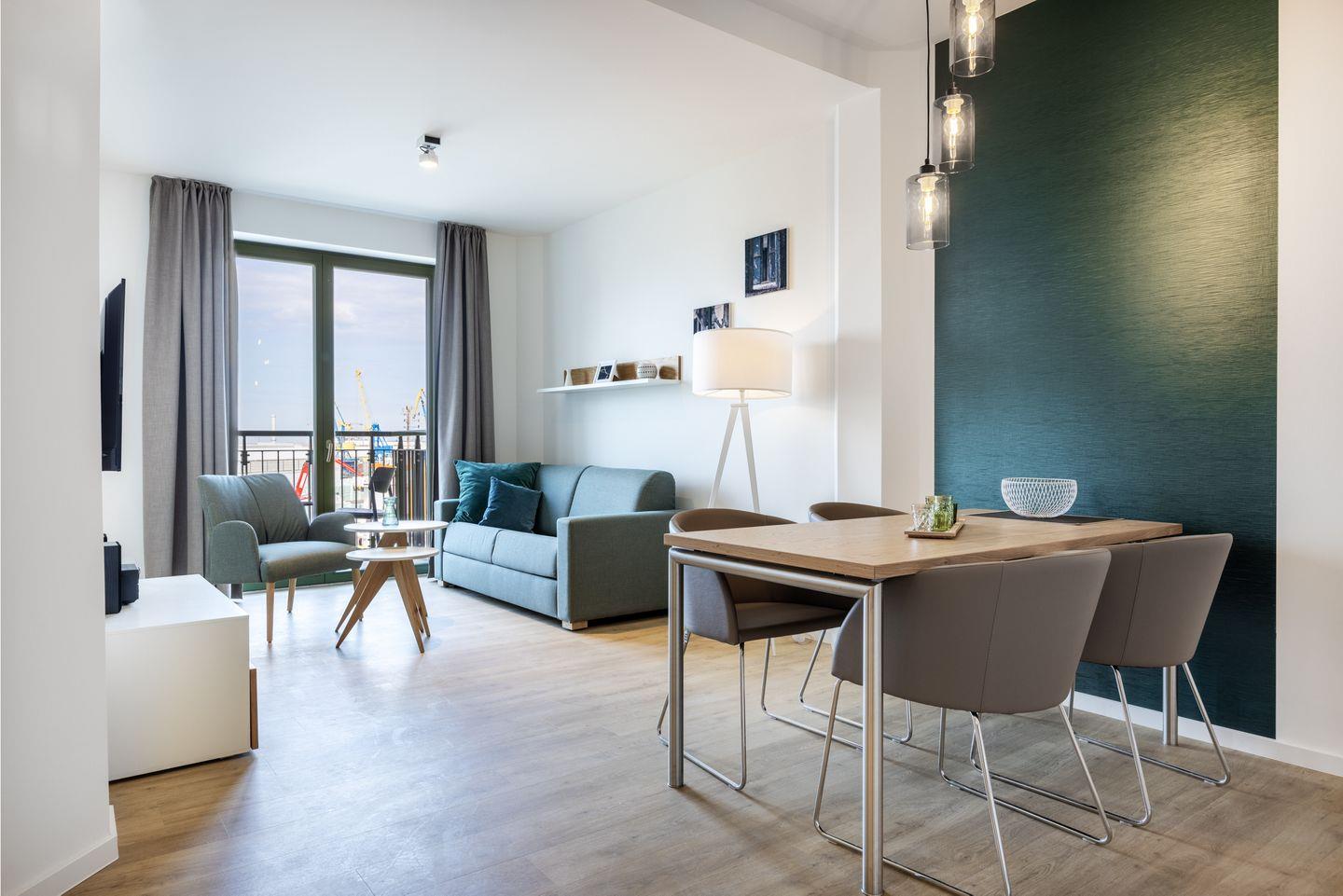 Modernes Apartment mit Saunanutzung, Balkon und Blick in den Hafen von Wismar