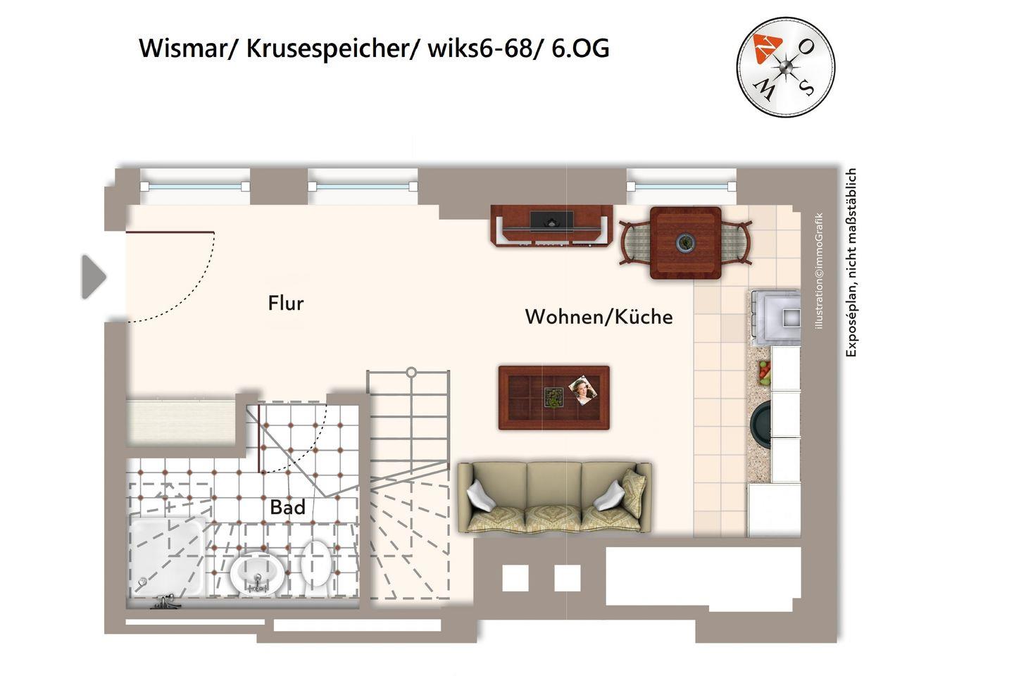 Modernes Maisonette-Apartment mit Dachterrasse und traumhaftem Hafenblick in Wismar.