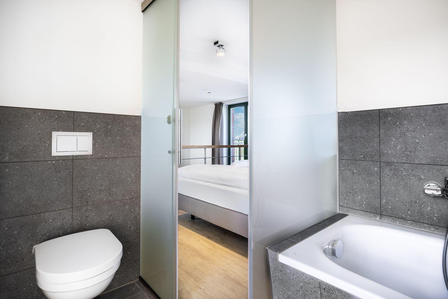 Das helle Apartment verfügt über bodentiefe Fenster, Fußbodenheizung, kostenfreies WLAN und einen Safe für eine Laptopgröße bis ca. 17 Zoll.