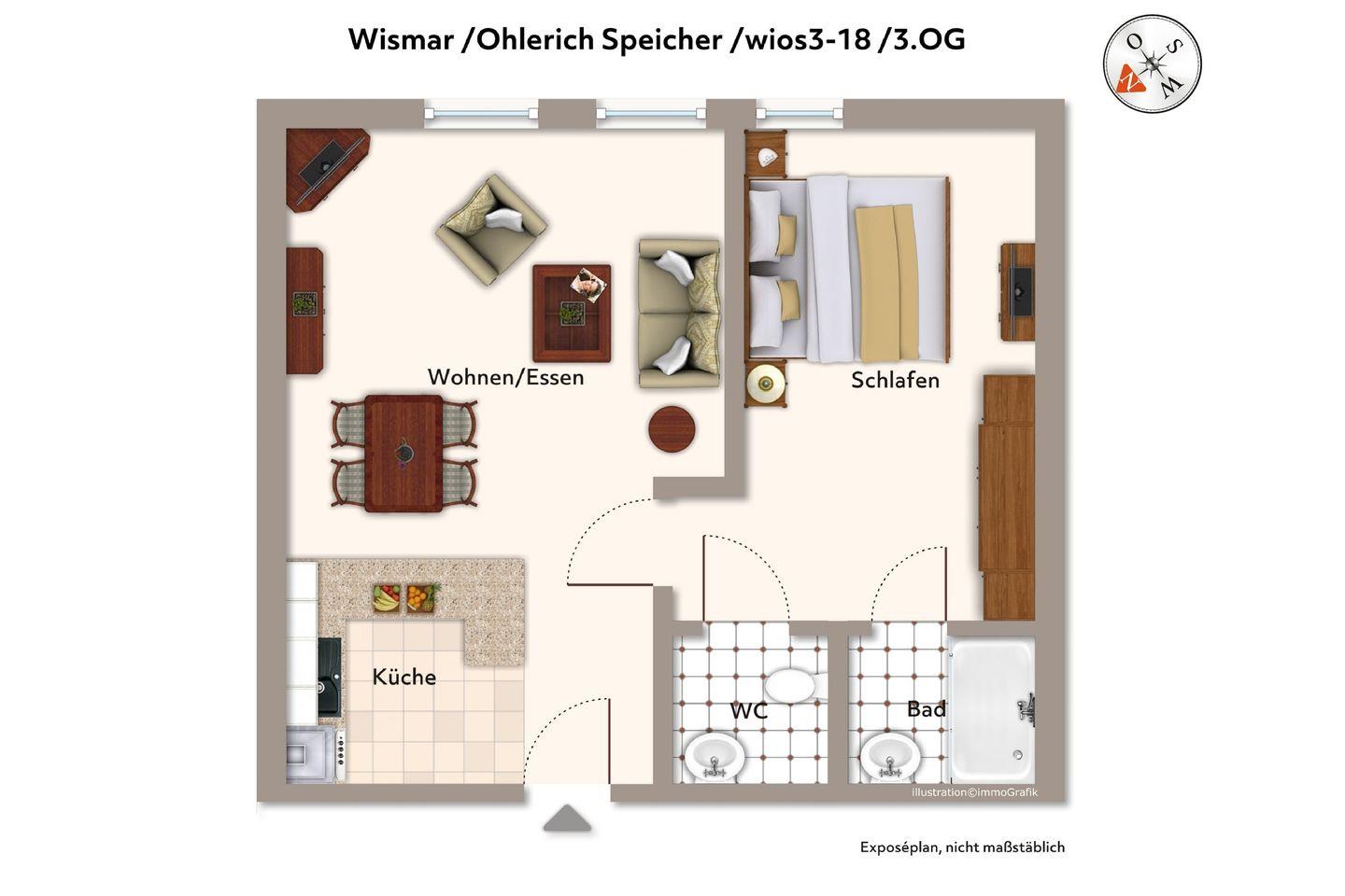 Das Nichtraucher-Apartment in Süd-West-Lage befindet sich im 3. Obergeschoss des denkmalgeschützten Ohlerich Speichers. Der Alte Hafen von Wismar, einer der attraktivsten Orte der Hansestadt, liegt euch hier zu Füßen. Von hier aus lässt sich die Stadt und das schöne Umland ideal erkunden. Der Alte Hafen ist übrigens auch ein sehr beliebter Veranstaltungsort für Events und Feste.