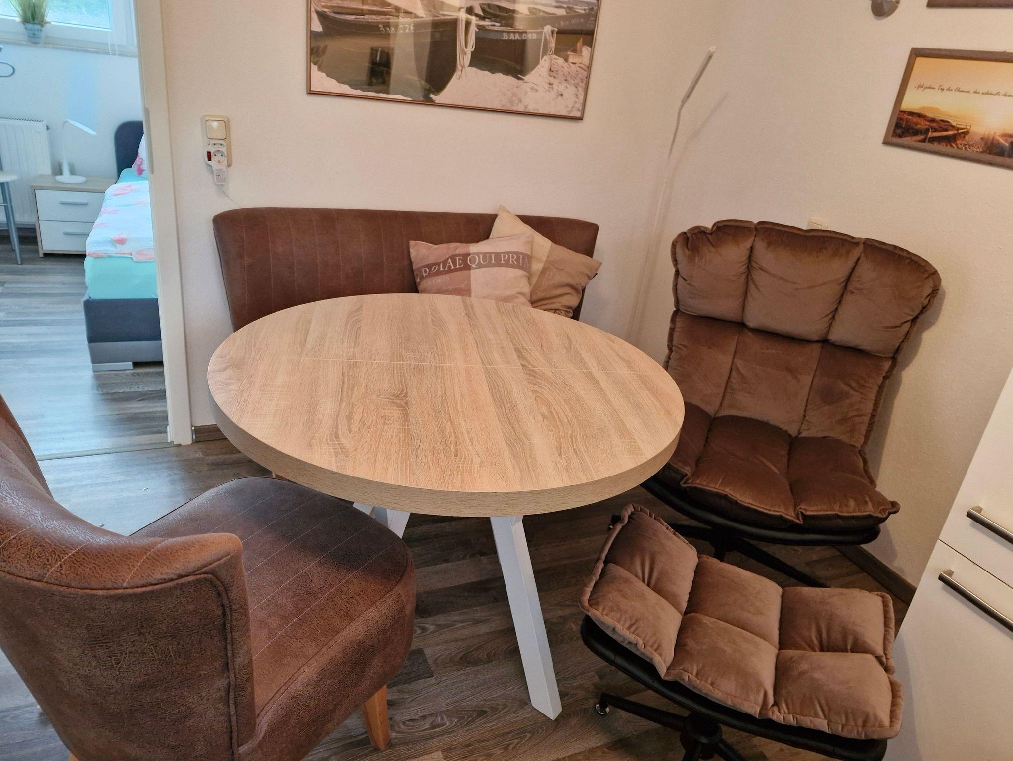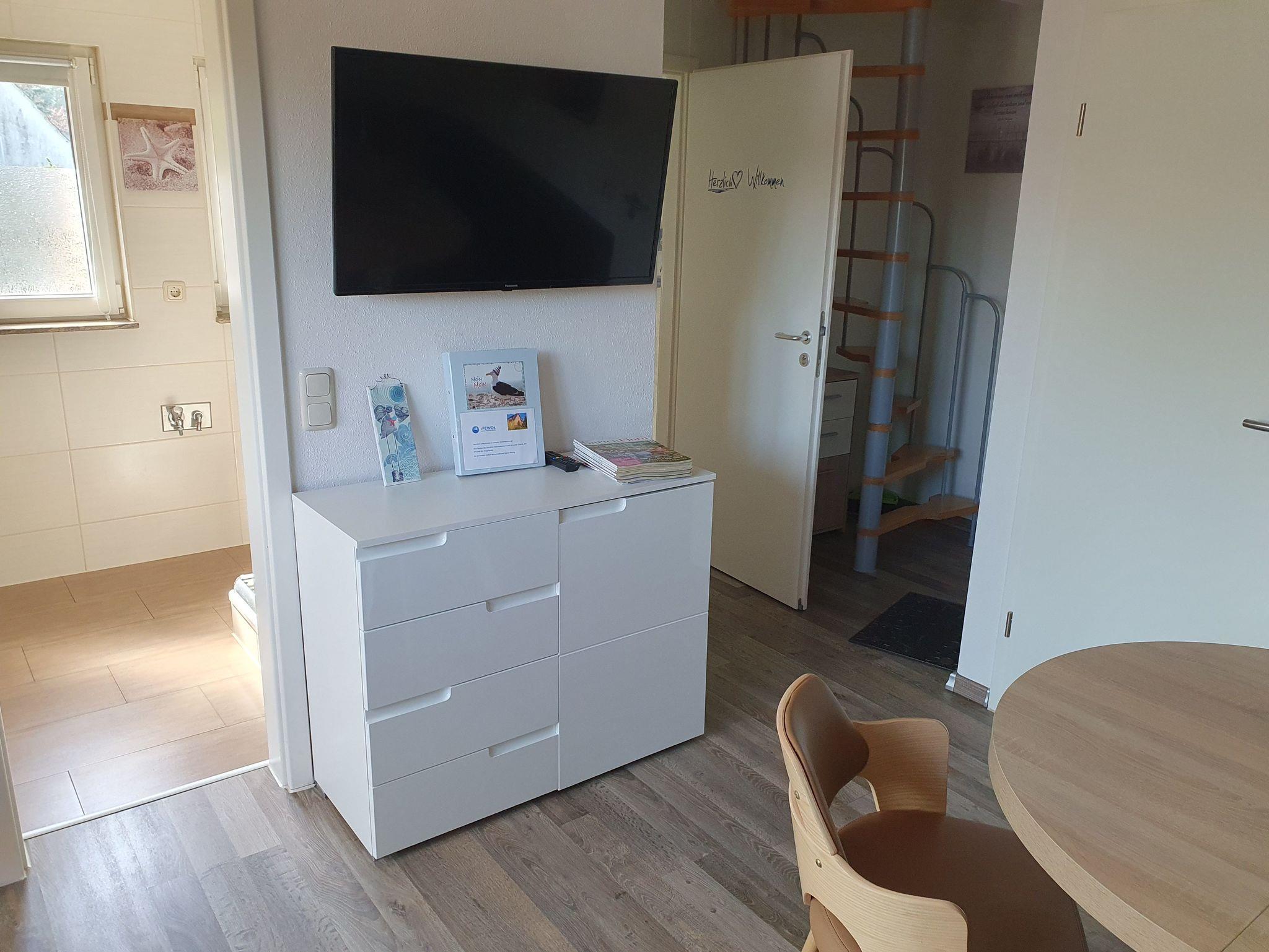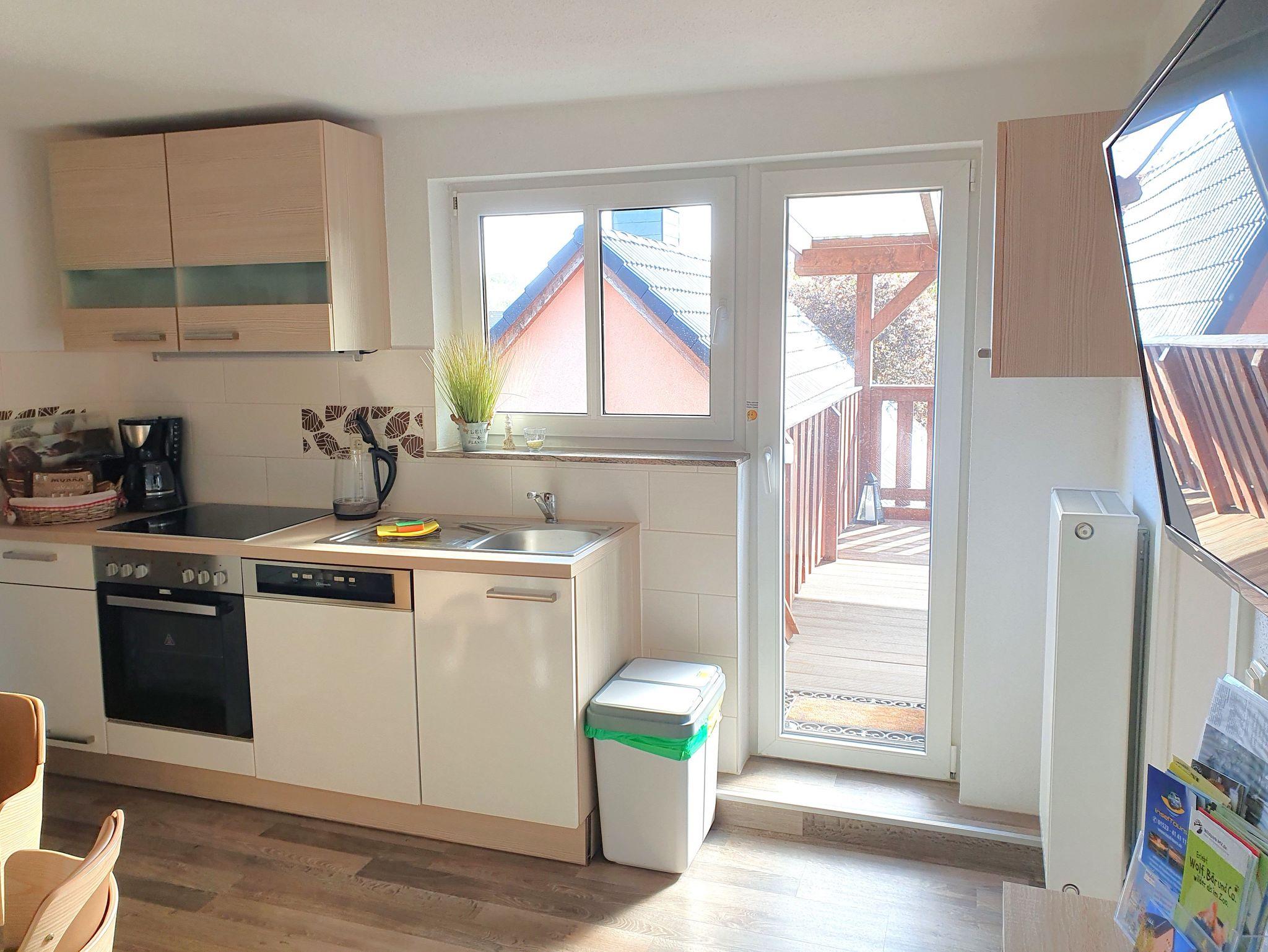 Herzlich willkommen in der modernen, gemütlichen Ferienwohnung in der oberen Etage des Ferienhauses „Möwe“, mit separatem Eingang und großzügiger, überdachter Terrasse mit Blick ins Grüne. Die lichtdurchflutete Wohnküche ist voll ausgestattet mit Toaster, Kaffeemaschine, Herd mit Backofen, Spülmaschine sowie bequemen Sitzmöbeln, Flachbild-TV und Radio - ideal für entspannte Urlaubstage und gemütliches Beisammensein.