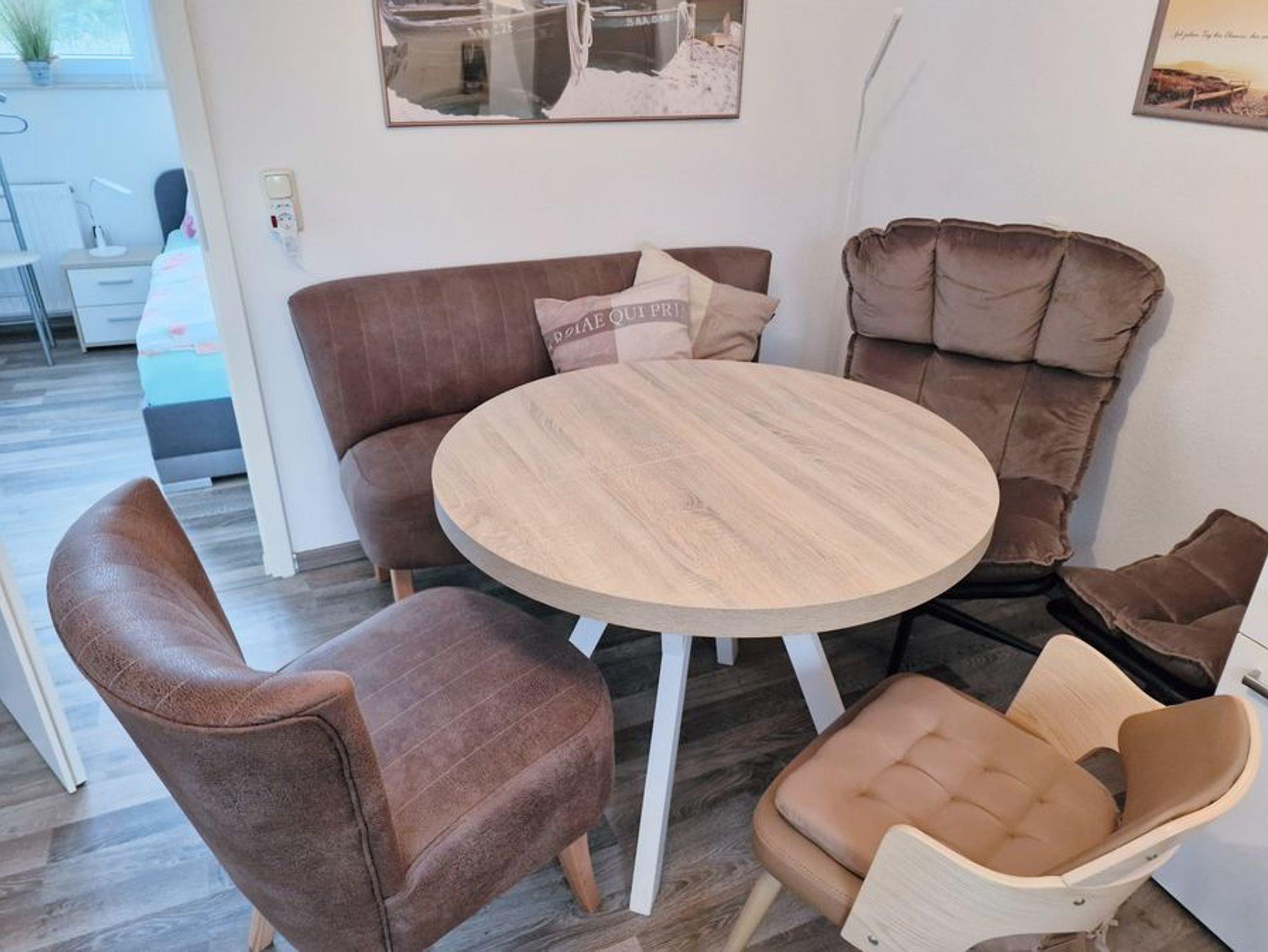 Eine gemütliche Wohnküche verfügt über eine gute Ausstattung (Toaster, Kaffeemaschine, Herd mit Backofen, Spülmaschine) und bequeme Sitzmöbel sowie Flachbild-TV und Radio.