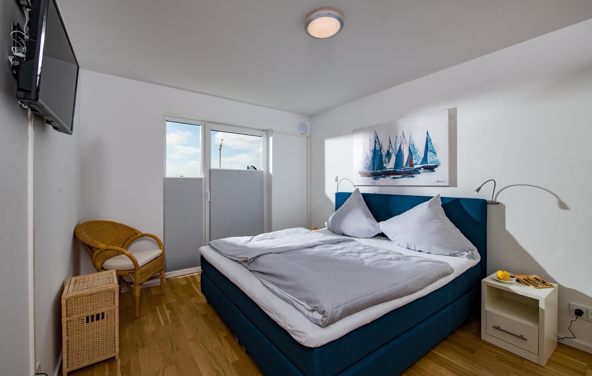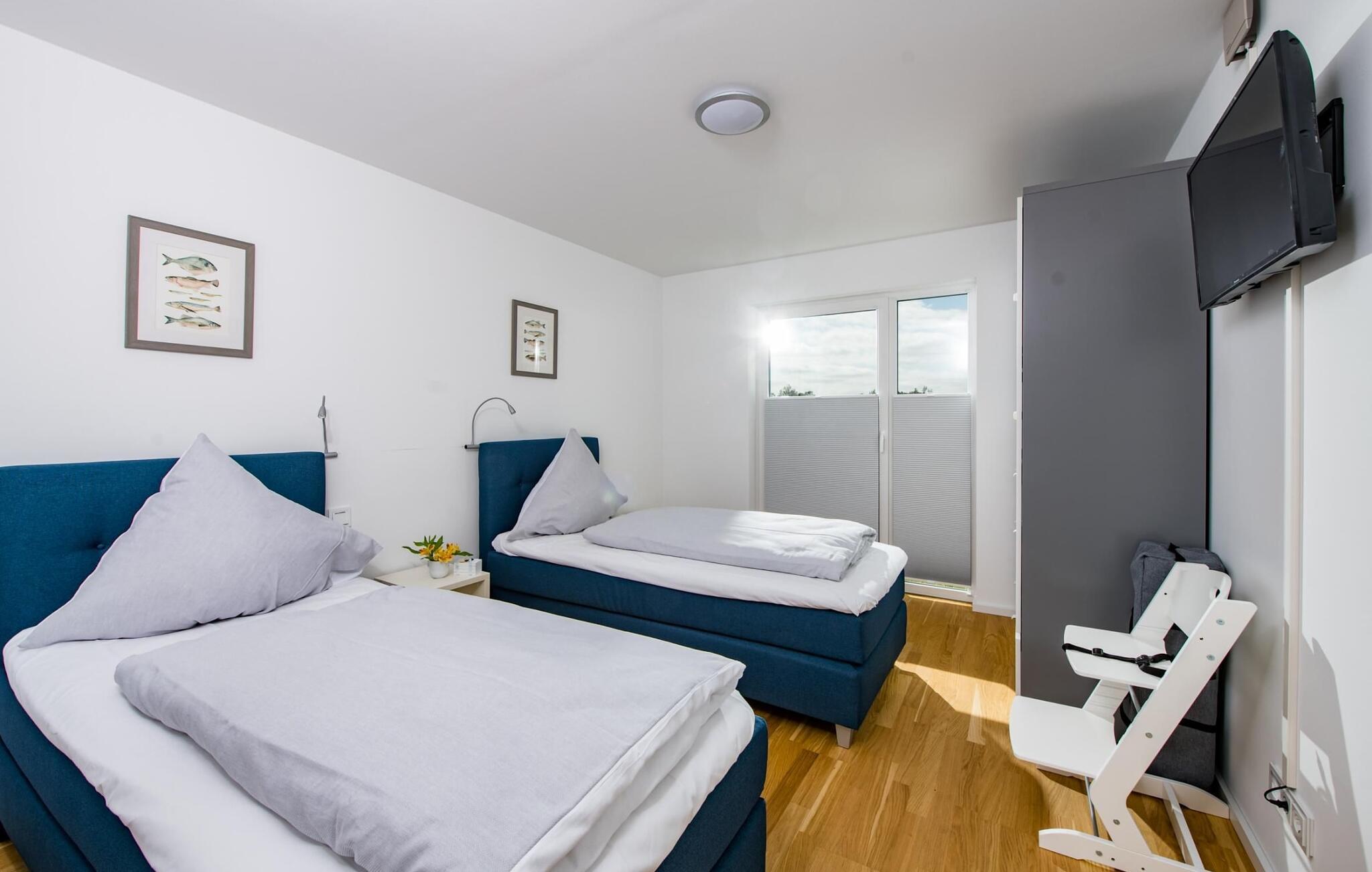 Zwei Schlafzimmer sind mit hochwertigen Boxspringbetten und je einem zusätzlichen Flatscreen-TV ausgestattet.