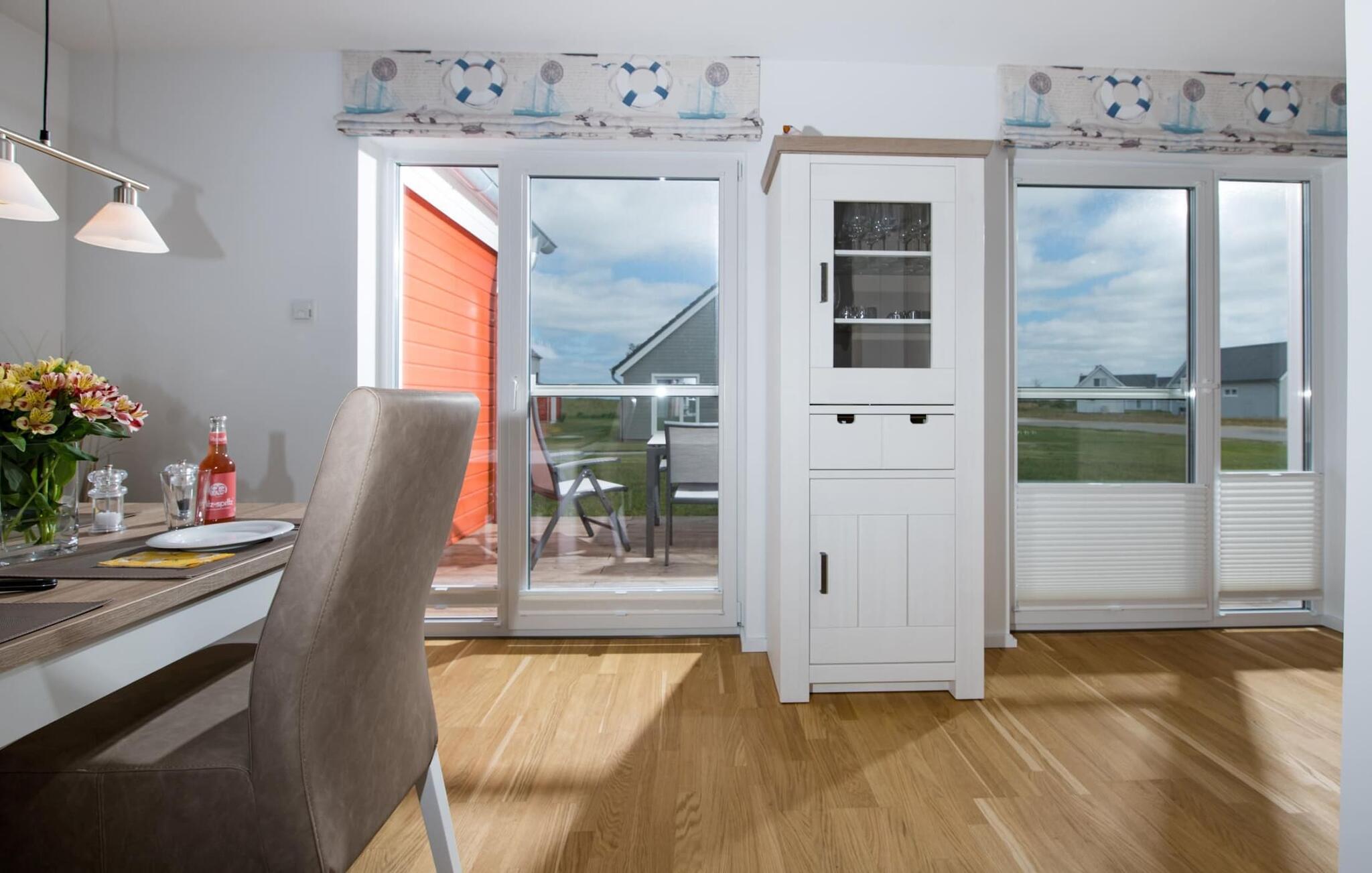 Ferienhaushälfte Happy Holidays in Olpenitz mit Strandnähe, Kamin, Infrarotsauna und großem Garten für entspannte Urlaubstage.