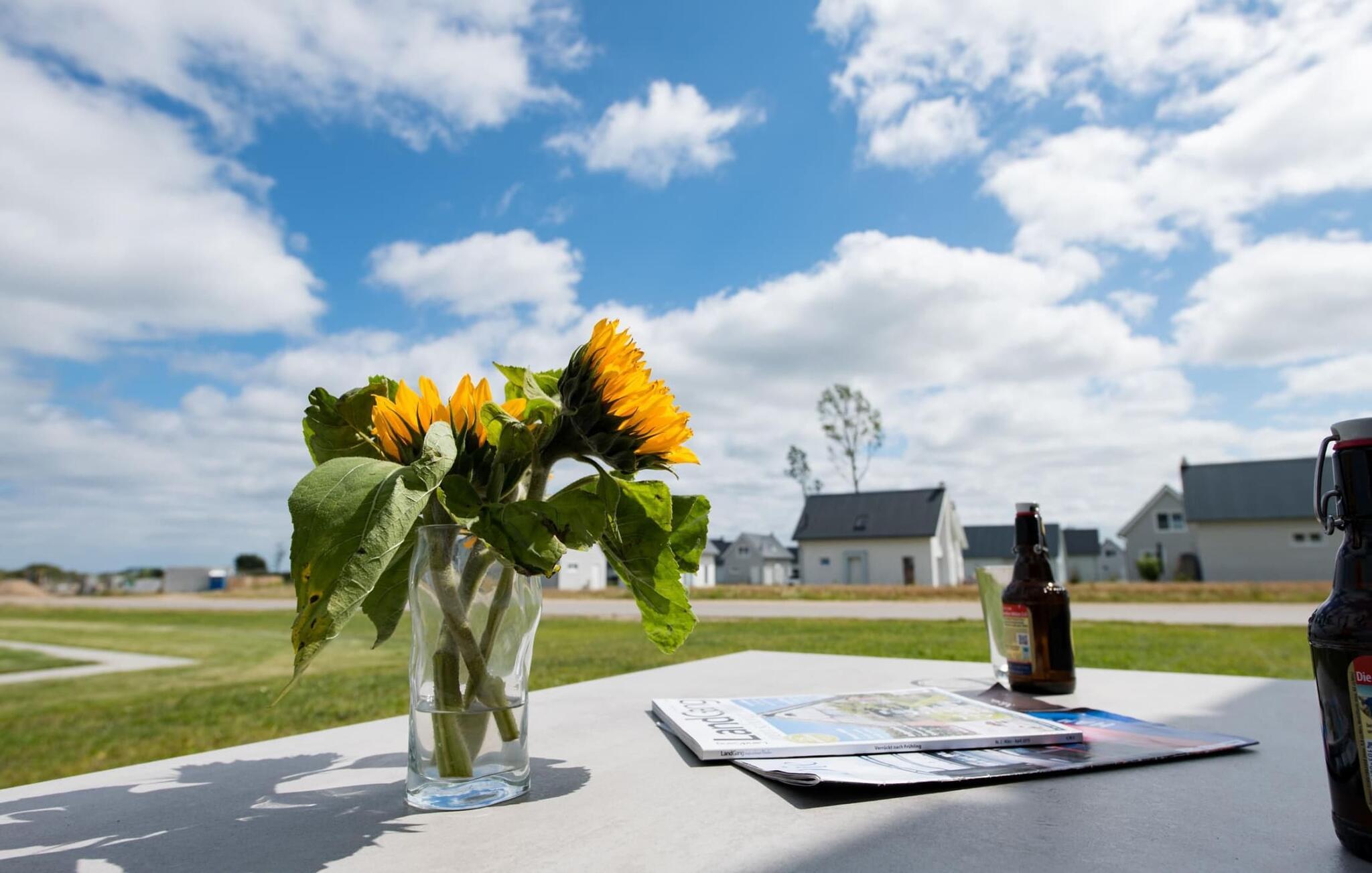 Zwei Terrassen bieten mit Ost und Süd-West Ausrichtung ganztags Sonne und sind neben einem Gartentisch mit Stühlen auch mit Strandkorb und Sonnenliegen ausgestattet. Auch die Grünfläche um das Haus lädt zum Verweilen ein. Fußbodenheizung, Wärme-Infrarot Kabine, Badewanne und Kaminofen sorgen derweil für Komfort zu jeder Jahreszeit und laden nach dem Strandspaziergang zum Entspannen ein. Gemütlicher Grillabend oder romantischer Sonnenuntergang.