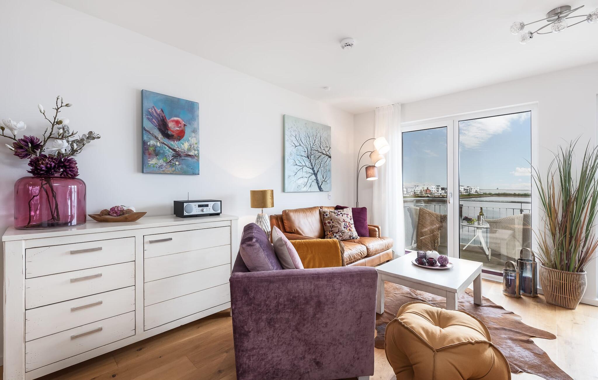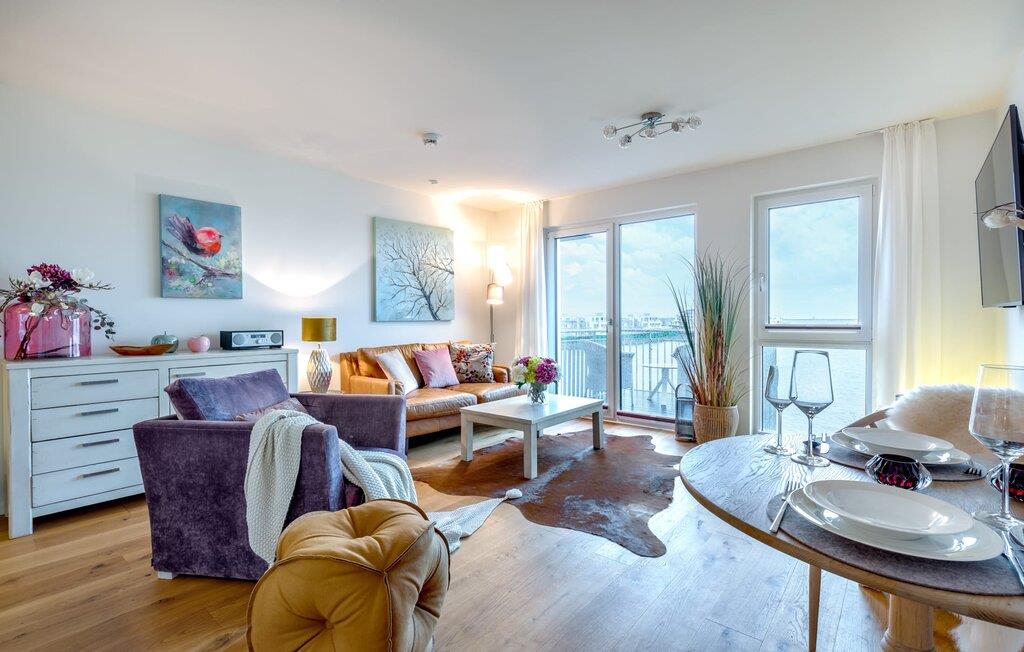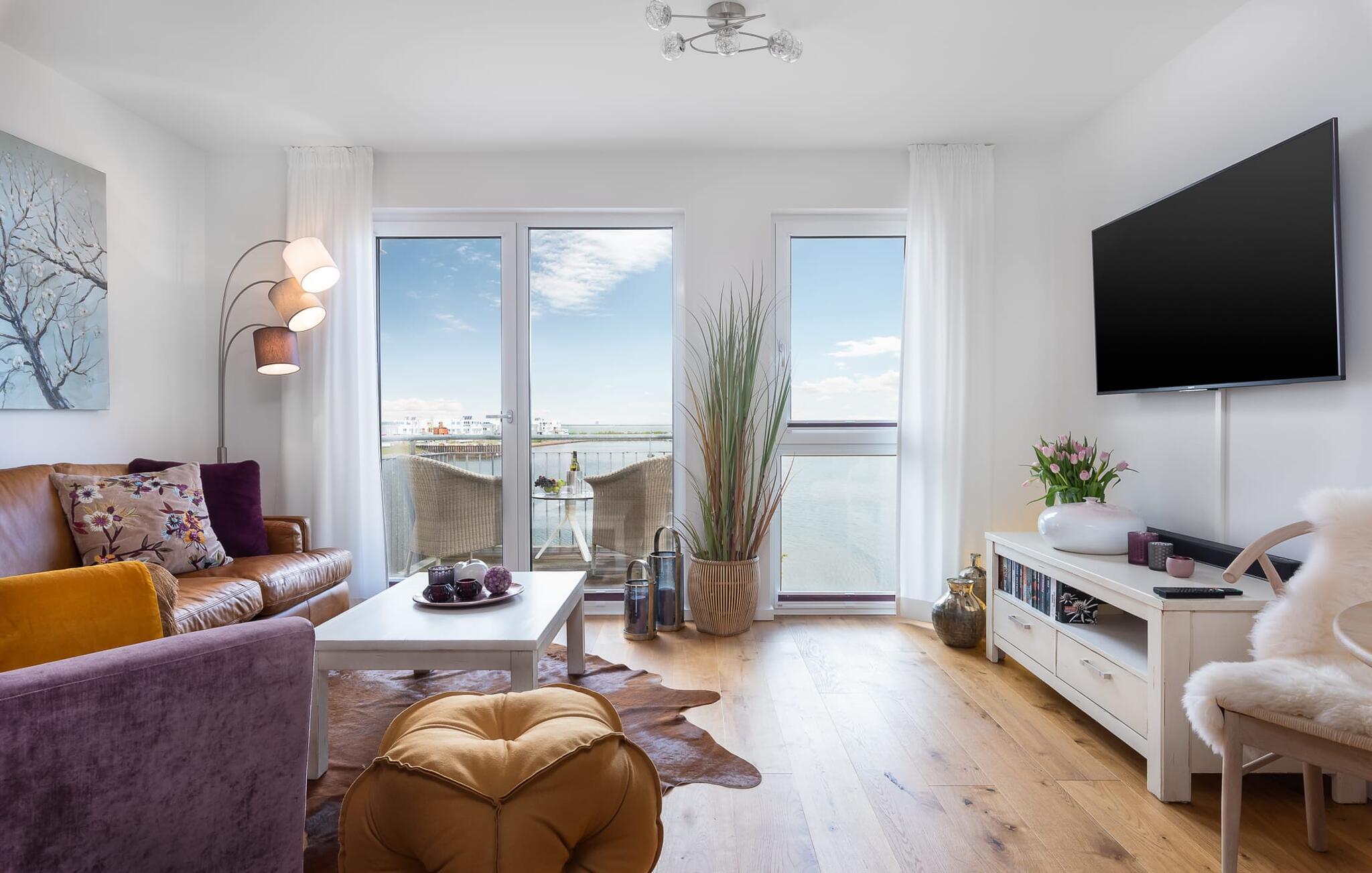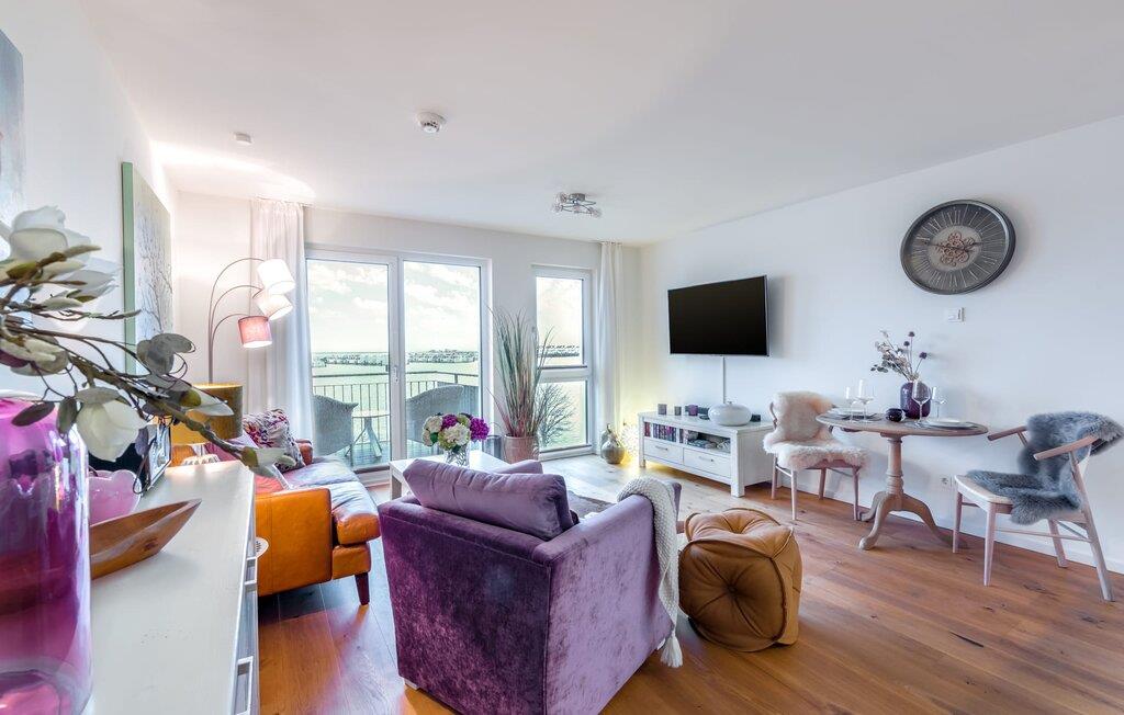 Genießen Sie den exklusiven Meerblick und die moderne Ausstattung der Ferienwohnung Harbours Love Side am Sportboothafen in Olpenitz.
