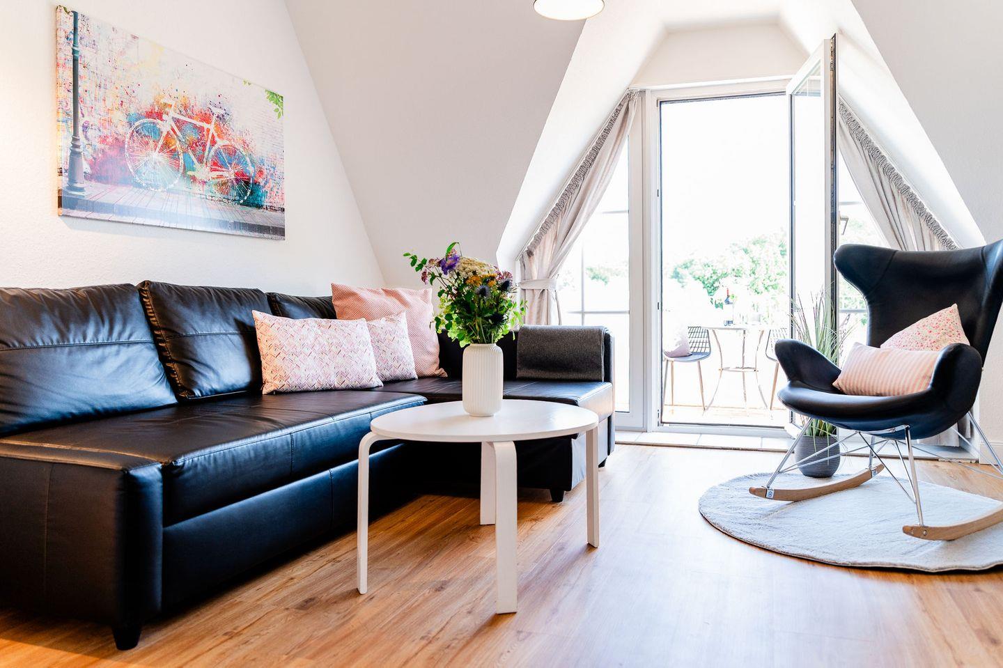 Charmantes Studio-Apartment "Smile" direkt am Strand von Wassersleben mit Balkon und Blick auf die Flensburger Förde.