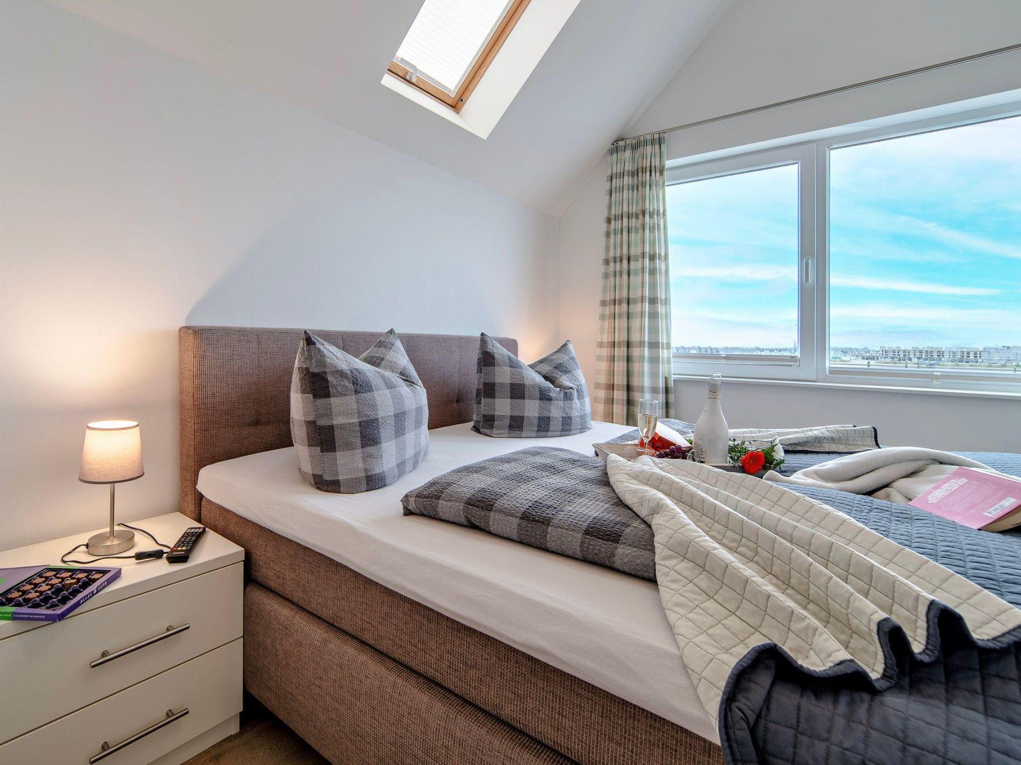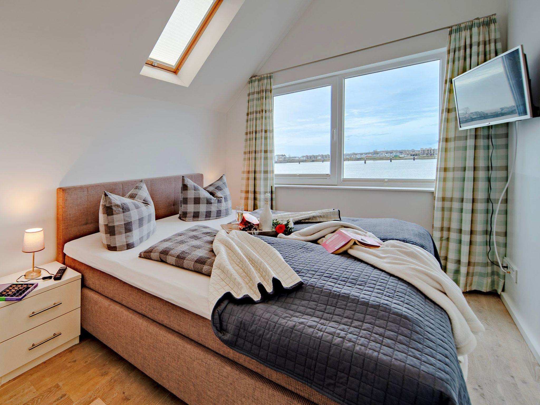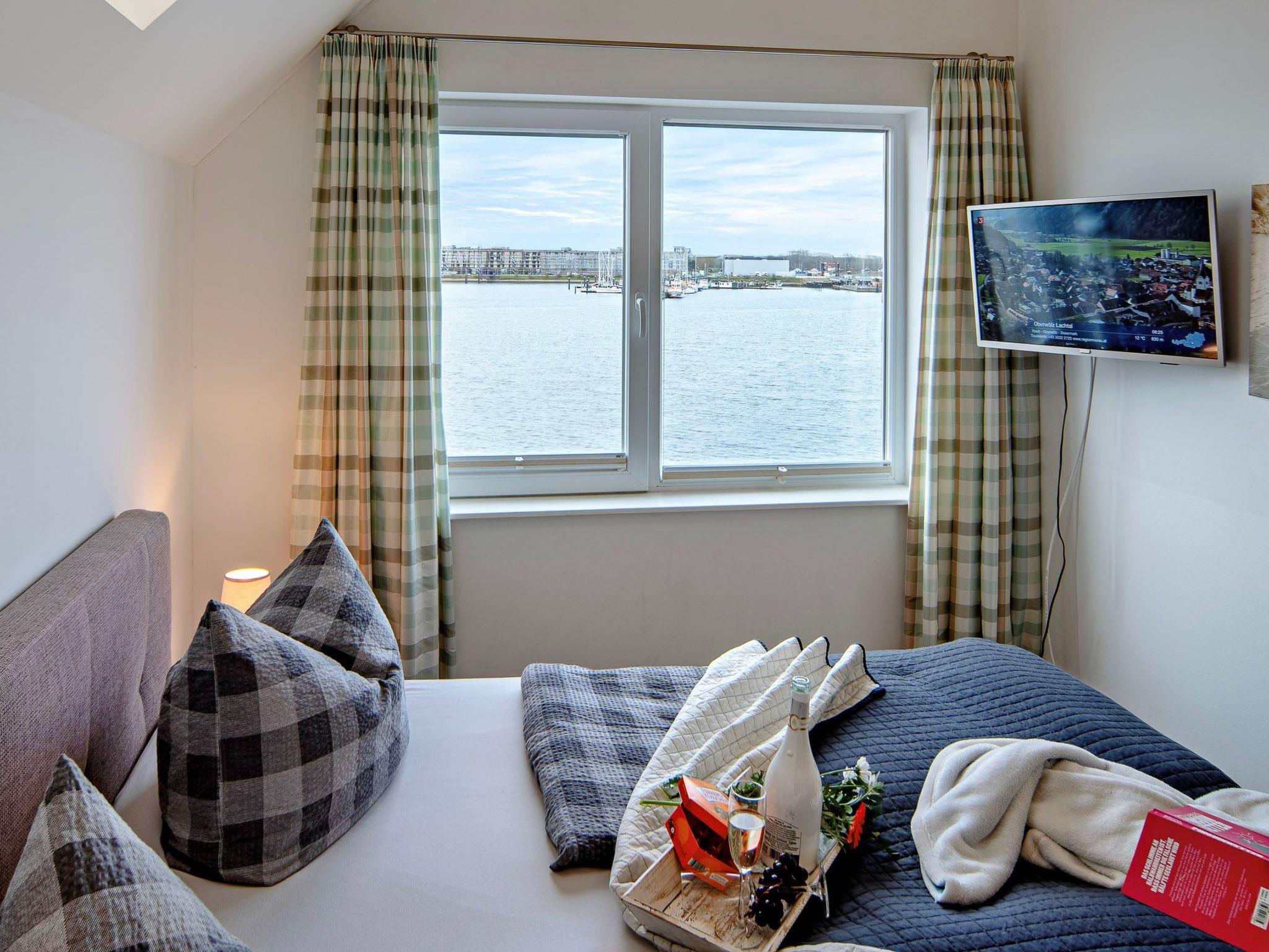 Ferienwohnung Kaptein`s Lounge by Seeblick Ferien ORO für 2-6 Personen auf zwei Ebenen im Obergeschoß + Dachgeschoß mit 180 Grad-Panorama-Blick sowohl auf den Hafen von Port Olpenitz im Süden und auf die Schlei mit den vielen vorbeifahrenden Segelschiffen, Maasholm und Schleimünde im Norden!Die Steigerung von traumhaft??? Kapteins Lounge by Seeblick Ferien Olpenitz!Der Blick dieser Maisonette-Wohnung auf zwei Ebenen im Ober- und Dachgeschoß des Hafenhauses am Kaianleger im OstseeResort Olpenitz mit 93 qm Wohnfläche ist wirklich unbeschreiblich! Durch die großen Fensterflächen gelangt viel Licht in die Wohnung, so daß sie stets hell und einladend wirkt - und man fühlt sich hier fast mehr wie auf der "Kommandobrücke" eines (Kreuz-) Schiffs als in einer Ferienwohnung! Den Lebensmittelpunkt dieses loftartig gestalteten Feriendomizils bietet die Eingangsebene im 1. Obergeschoß, in dem die Räume fast fließend ineinander übergehen. Das geräumige und einladende Wohnzimmer hat einen unbeschreiblichen Ausblick auf die Schlei und ist der ideale Treffpunkt für die ganze Familie, auch bei kühleren Jahreszeiten, wenn der eingebaute Kamin prasselt. Über den angrenzenden Eßbereich mit offener Küche gelangt man zur großen Terrasse in Südausrichtung und einem 180 Grad-Panoramablick über den ganzen Hafen. Abgerundet wird diese Etage mit einem Gäste-WC und Dusche. Über eine bequeme Treppe gelangen Sie vom Wohnbereich ins Dachgeschoß zu den zwei Schlafzimmern und dem großzügigen Wellness-Bad mit Duche, großer Badewanne mit Whirlpoolfunktionen und einer Infrarotsauna. Und auch hier bietet sich überall ein unvergleichbarer Ausblick auf Hafen und Schlei. Direkt an der Ostsee in der Eckernförder Bucht entsteht auf dem Gelände eines ehemaligen Marinestützpunktes bei Kappeln an der Schlei ein neues Ferienresort mit dem Namen „OstseeResort Olpenitz“. Mehr Wasserblick als speziell in diesem außergewöhnlichen Ferienobjekt können Sie fast nirgendwo sonst haben: Nach Norden vom Wohn- und Schlafzimmer aus auf Schlei und die vorbeifahrenden Segelschiffe, die Ostsee sowie den Leuchtturm von Schleimünde, und nach Süden von Eßbereich und großer Panorama-Terrasse aus auf das komplette Hafengebiet von Port Olpenitz!Diese Wohnung stellt wirklich ein ABSOLUTES HIGHLIGHT dar.