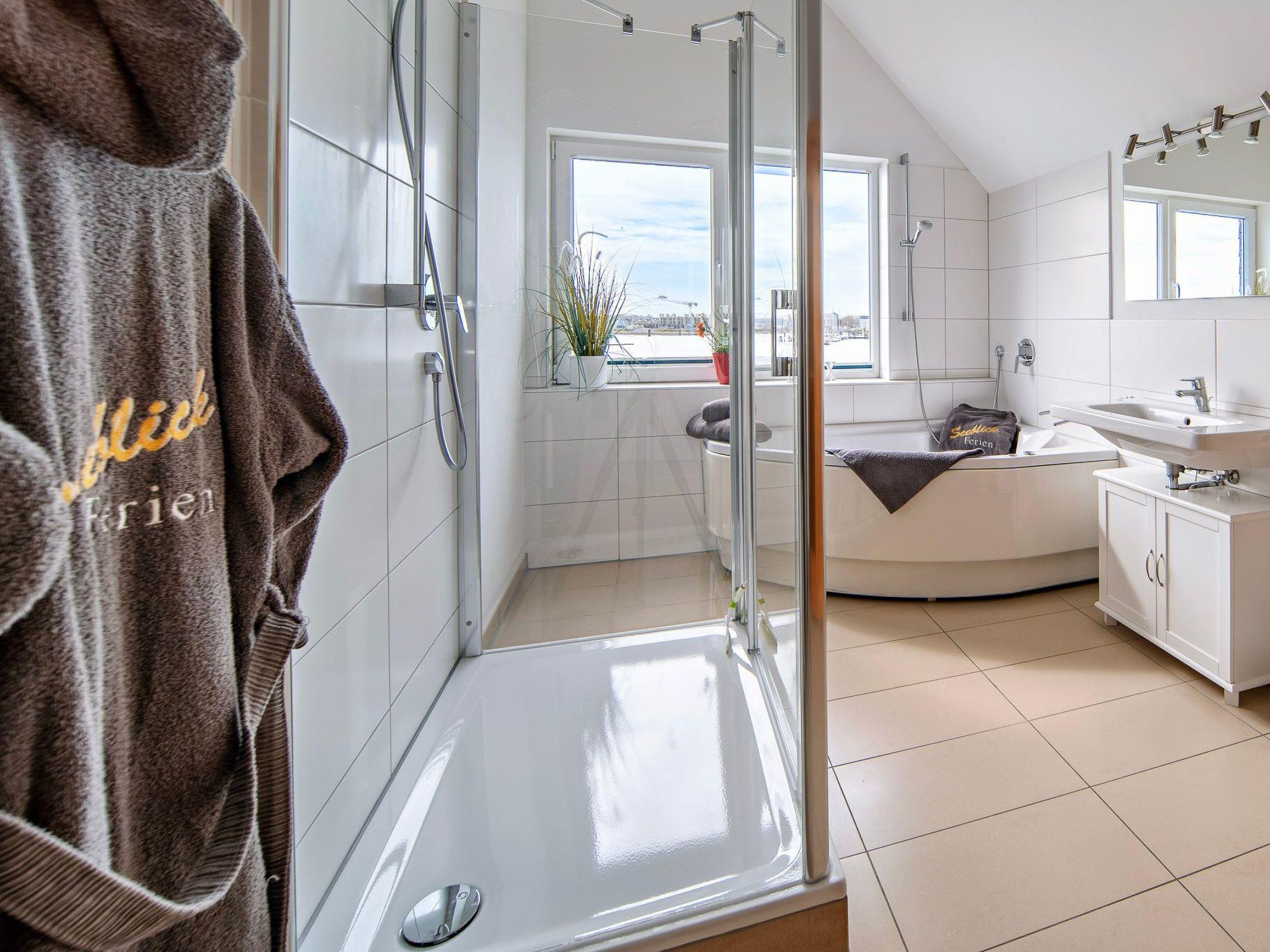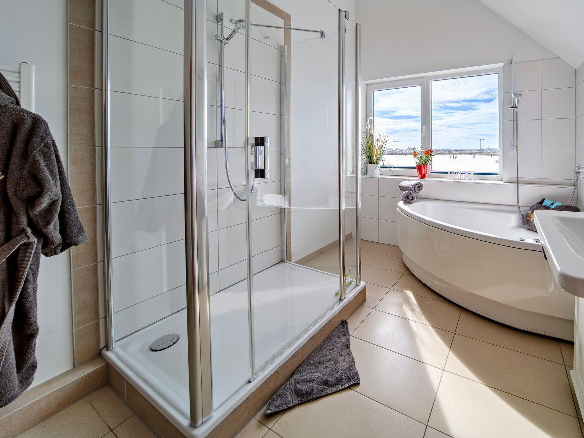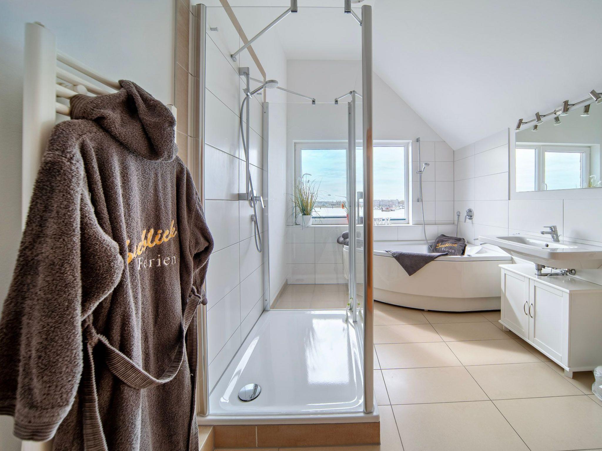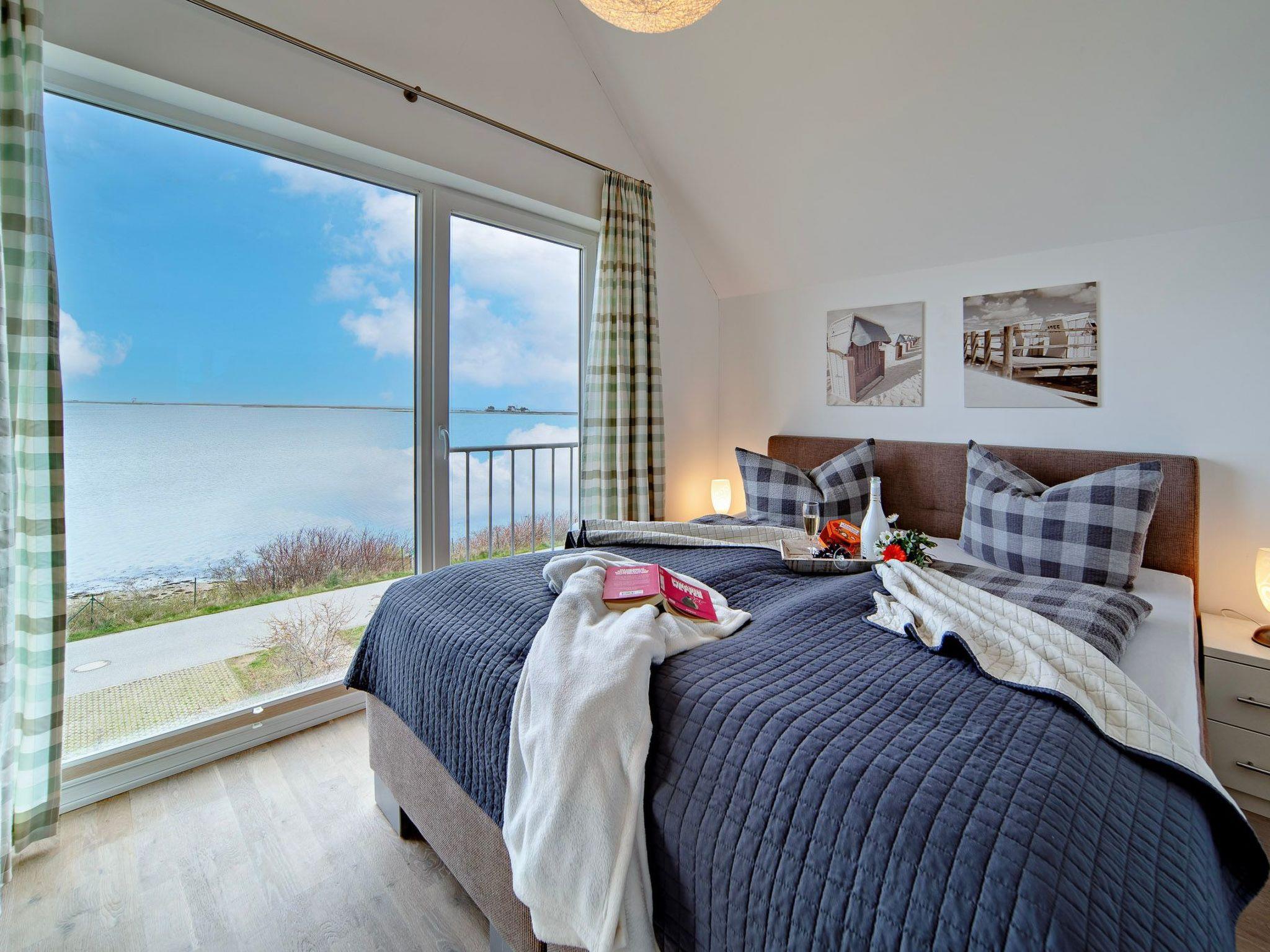 Ferienwohnung Kaptein`s Lounge by Seeblick Ferien ORO für 2-6 Personen auf zwei Ebenen im Obergeschoß + Dachgeschoß mit 180 Grad-Panorama-Blick sowohl auf den Hafen von Port Olpenitz im Süden und auf die Schlei mit den vielen vorbeifahrenden Segelschiffen, Maasholm und Schleimünde im Norden!Die Steigerung von traumhaft??? Kapteins Lounge by Seeblick Ferien Olpenitz!Der Blick dieser Maisonette-Wohnung auf zwei Ebenen im Ober- und Dachgeschoß des Hafenhauses am Kaianleger im OstseeResort Olpenitz mit 93 qm Wohnfläche ist wirklich unbeschreiblich! Durch die großen Fensterflächen gelangt viel Licht in die Wohnung, so daß sie stets hell und einladend wirkt - und man fühlt sich hier fast mehr wie auf der "Kommandobrücke" eines (Kreuz-) Schiffs als in einer Ferienwohnung! Den Lebensmittelpunkt dieses loftartig gestalteten Feriendomizils bietet die Eingangsebene im 1. Obergeschoß, in dem die Räume fast fließend ineinander übergehen. Das geräumige und einladende Wohnzimmer hat einen unbeschreiblichen Ausblick auf die Schlei und ist der ideale Treffpunkt für die ganze Familie, auch bei kühleren Jahreszeiten, wenn der eingebaute Kamin prasselt. Über den angrenzenden Eßbereich mit offener Küche gelangt man zur großen Terrasse in Südausrichtung und einem 180 Grad-Panoramablick über den ganzen Hafen. Abgerundet wird diese Etage mit einem Gäste-WC und Dusche. Über eine bequeme Treppe gelangen Sie vom Wohnbereich ins Dachgeschoß zu den zwei Schlafzimmern und dem großzügigen Wellness-Bad mit Duche, großer Badewanne mit Whirlpoolfunktionen und einer Infrarotsauna. Und auch hier bietet sich überall ein unvergleichbarer Ausblick auf Hafen und Schlei. Direkt an der Ostsee in der Eckernförder Bucht entsteht auf dem Gelände eines ehemaligen Marinestützpunktes bei Kappeln an der Schlei ein neues Ferienresort mit dem Namen „OstseeResort Olpenitz“. Mehr Wasserblick als speziell in diesem außergewöhnlichen Ferienobjekt können Sie fast nirgendwo sonst haben: Nach Norden vom Wohn- und Schlafzimmer aus auf Schlei und die vorbeifahrenden Segelschiffe, die Ostsee sowie den Leuchtturm von Schleimünde, und nach Süden von Eßbereich und großer Panorama-Terrasse aus auf das komplette Hafengebiet von Port Olpenitz!Diese Wohnung stellt wirklich ein ABSOLUTES HIGHLIGHT dar.
