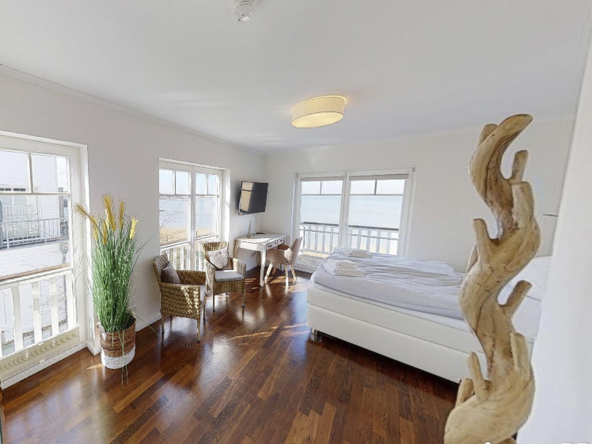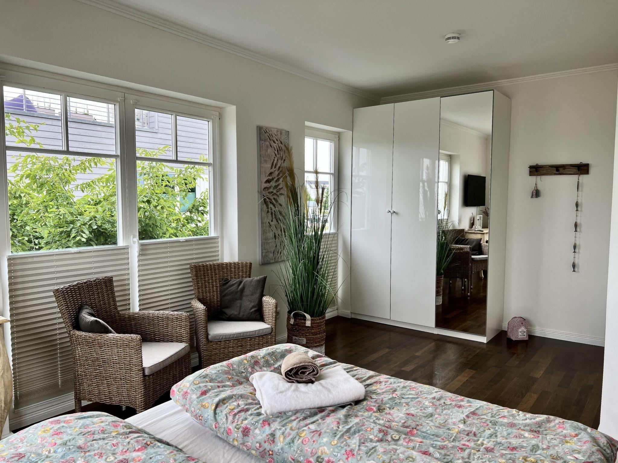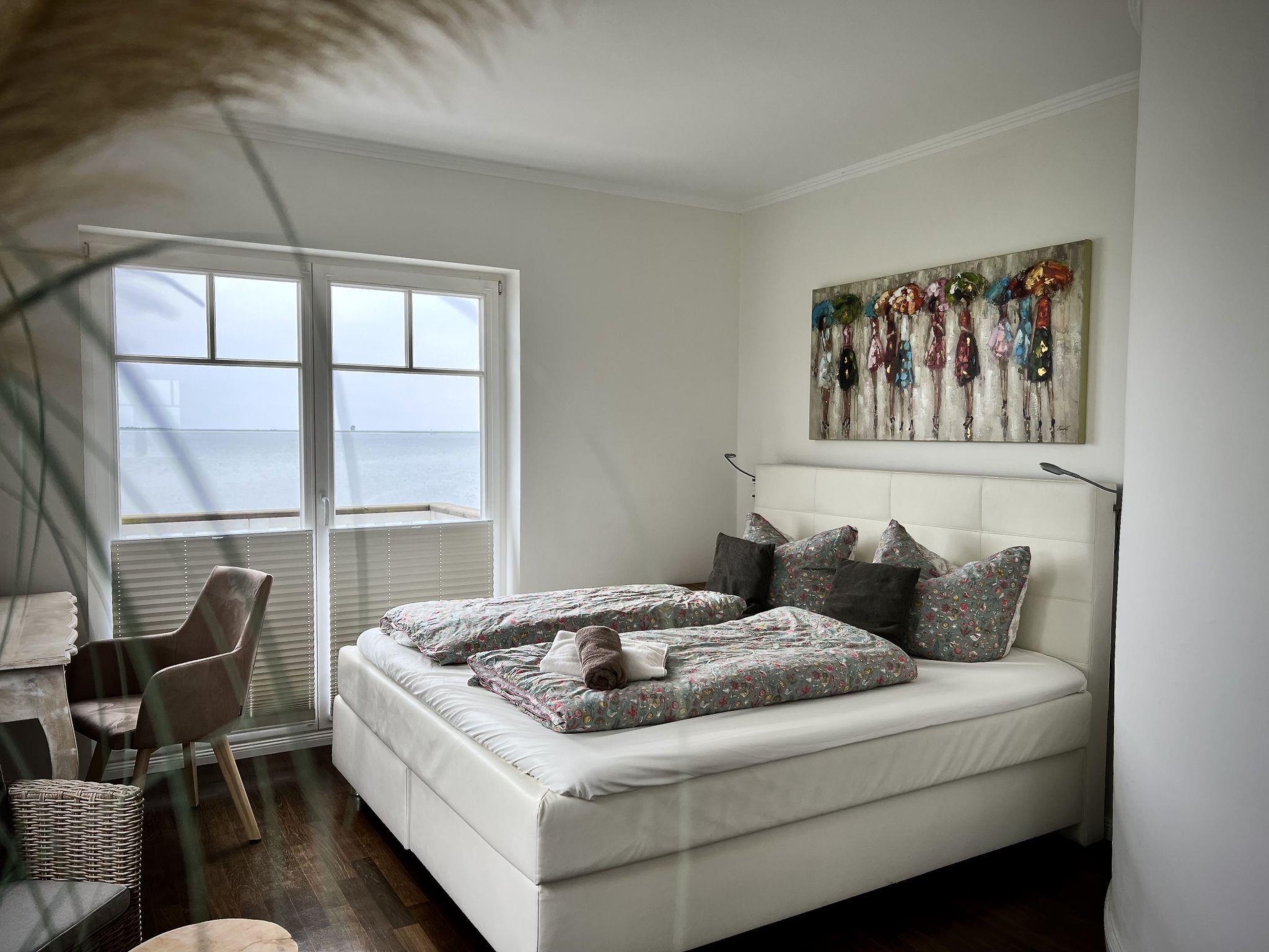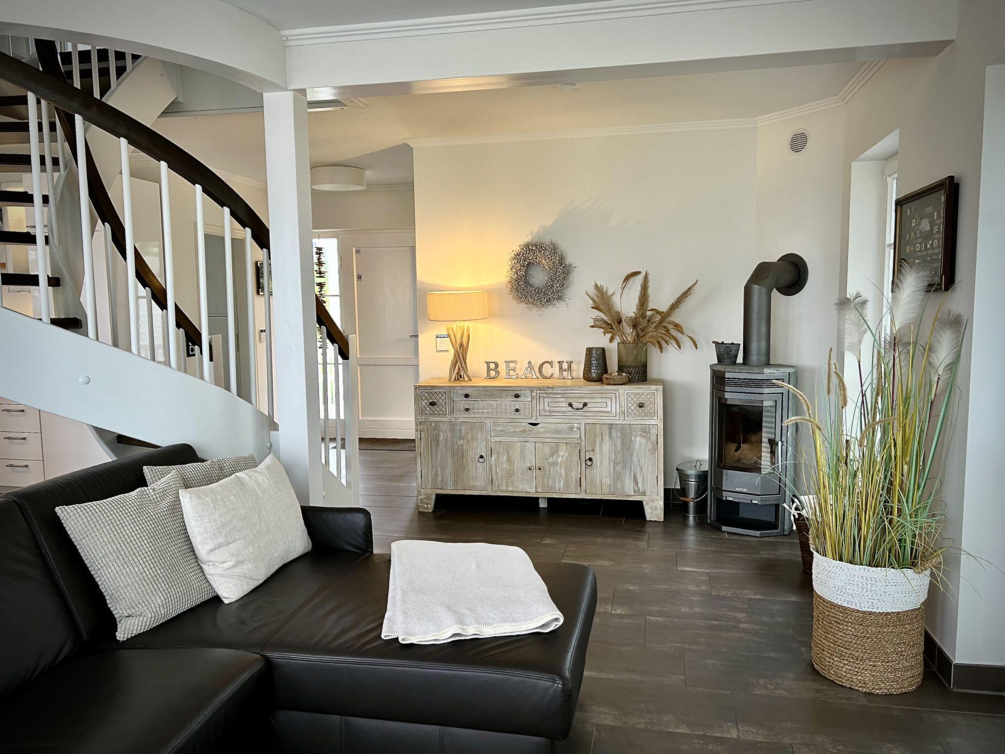Im Fokus steht der perfekt umgesetzte lichtdurchflutete Wohn- und Essbereich mit bodentiefen Fenstern, einer gemütlicher Echtleder Sitzlandschaft, welche zusätzlich zwei Schlafplätze bietet und dem großen Esstisch, dem Mittelpunkt der Wohnung. Die geschmackvolle Einrichtung, verleihen dem Herz der Wohnung Charme und außergewöhnlichen Wohnkomfort, wobei die Fußbodenheizung das I-Tüpfelchen aufsetzt.Der holzbefeuerte Kaminofen, mit seinem prasselnden Feuer, sorgt in diesem gemütlichen Ambiente selbst bei nordischen Schietwettertagen, für heimelige Kuschelstunden. Der 55 Zoll Smart TV mit HD+ und das Internet Radio sorgen ebenfalls für Indoor-Unterhaltung damit man den Bezug zur Realität in diesem Ambiente nicht ganz verliert.Die um das ganze Haus verlaufene Veranda bietet die Möglichkeit immer ein windgeschütztes Plätzchen zu finden und die Zeit am Meer zu genießen. Der im Anschluss an die Terrasse in Richtung Wasser umzäunte Garten mit kleinem Strandabschnitt ist das Highlight und definitiv einzigartig. Ein Strandkorb, Gartenmöbel und zwei Adirondack-Stühle mit Tisch und Fußteil stehen zur Verfügung. Der Blick fällt hier auf die atemberaubende Wasserkulisse der Schlei. Unvergessliche Sonnenuntergänge mit vorbeifahrenden Segelschiffen, Möwen in der Luft und die umgebende Ostseebrise ist ein Naturschauspiel, von dem man nicht müde wird, zuzuschauen. Das ist Urlaub mit Seeblick in diesem Traumhaus Sliminde.Sollten Sie das Los gezogen haben, Ihre Mannschaft zu verköstigen, ist das auf keinen Fall eine Niete. Die offen gestaltete Küche bietet an hochwertiger Technik und Ausstattung alles, was das Kochherz begehrt und lässt die vermeintliche Arbeit zur Freude werden. Bis ins kleinste Detail liebevoll eingerichtet. Es liegt sogar ein Kindergeschirr bereit. Die direkt an den Essbereich angrenzende Terrasse verbindet den Wohnbereich mit der Natur und verspricht gesellige Grillabende der besonderen Art mit dem Ofyr-Grill oder romantische Candle-Light Dinners bei traumhafter Kulisse und Ambiente Beleuchtung.Für zusätzlichen Komfort sorgt ein Gäste WC, sowie ein Hauswirtschaftsraum mit Waschmaschine, Kondensations-Trockner und Spüle, welcher das Erdgeschoss komplettiert. Über eine imposante Wendeltreppe gelangt man in das Obergeschoss. Zwei großzügige Schlafzimmer mit hochwertigen Boxspringbetten für vier Personen, garantieren einen wunderbar entspannten Schlaf und schöne Träume. Doch möchte man eigentlich bei diesem Ausblick schlafen...? Das Beruhigende ist: man wacht mit demselben traumhaften Ausblick wieder auf. Jedes Schlafzimmer punktet insbesondere mit dem direkten Zugang zum Balkon und dem traumhaften Ausblick auf die Schlei, sowie einen kleinen Schreibtisch für diejenigen, die im Urlaub ein wenig Arbeiten müssen. High Speed WLAN über Glasfaser und ein 43 Zoll Smart TV in jedem Schlafzimmer, ist in diesem Ferienobjekt selbstverständlich.Das voll ausgestattete Badezimmer im Obergeschoss, mit bodengleicher Dusche, bietet maritime Wellness-Momente. In der separaten finnischen Sauna lässt es sich zu jeder Jahreszeit tiefenentspannen.Vor dem Haus stehen zwei eigene Parkplätze und ein abschließbarer Fahrradschuppen mit 220V Stromanschluß zur Verfügung. Abgerundet wird dies durch die Elektroladesäule (Wallbox 11Kw mit Typ2 Stecker) für das Elektroauto.In der Unterkunft ist grundsätzlich kein Hund gestattet.