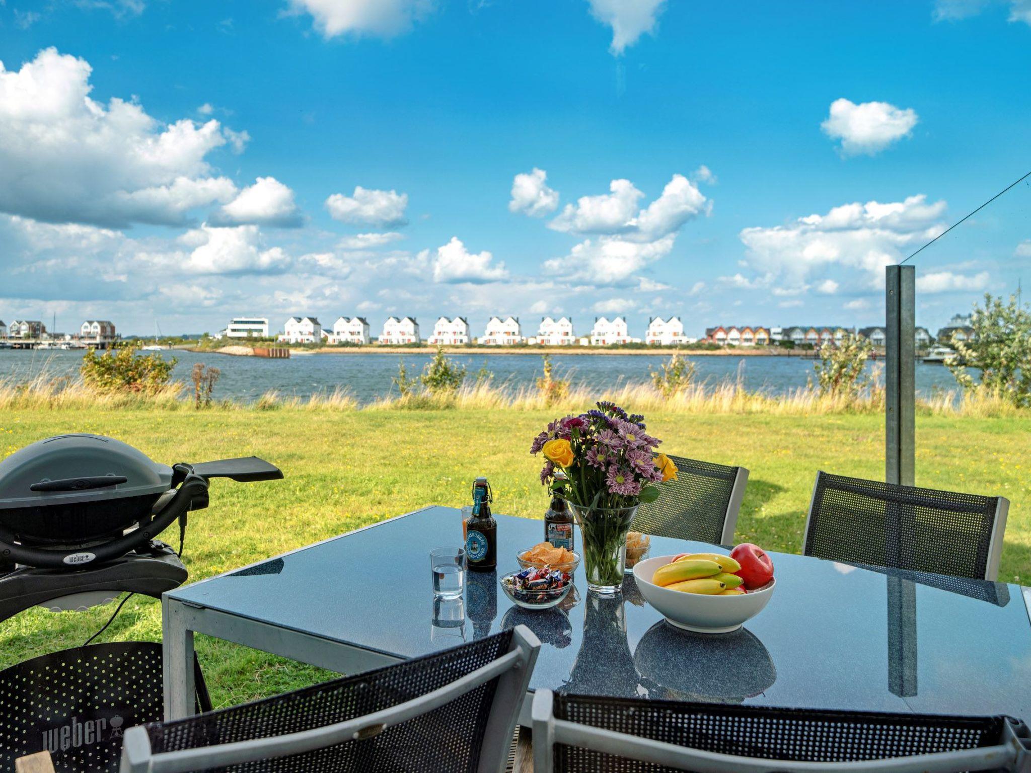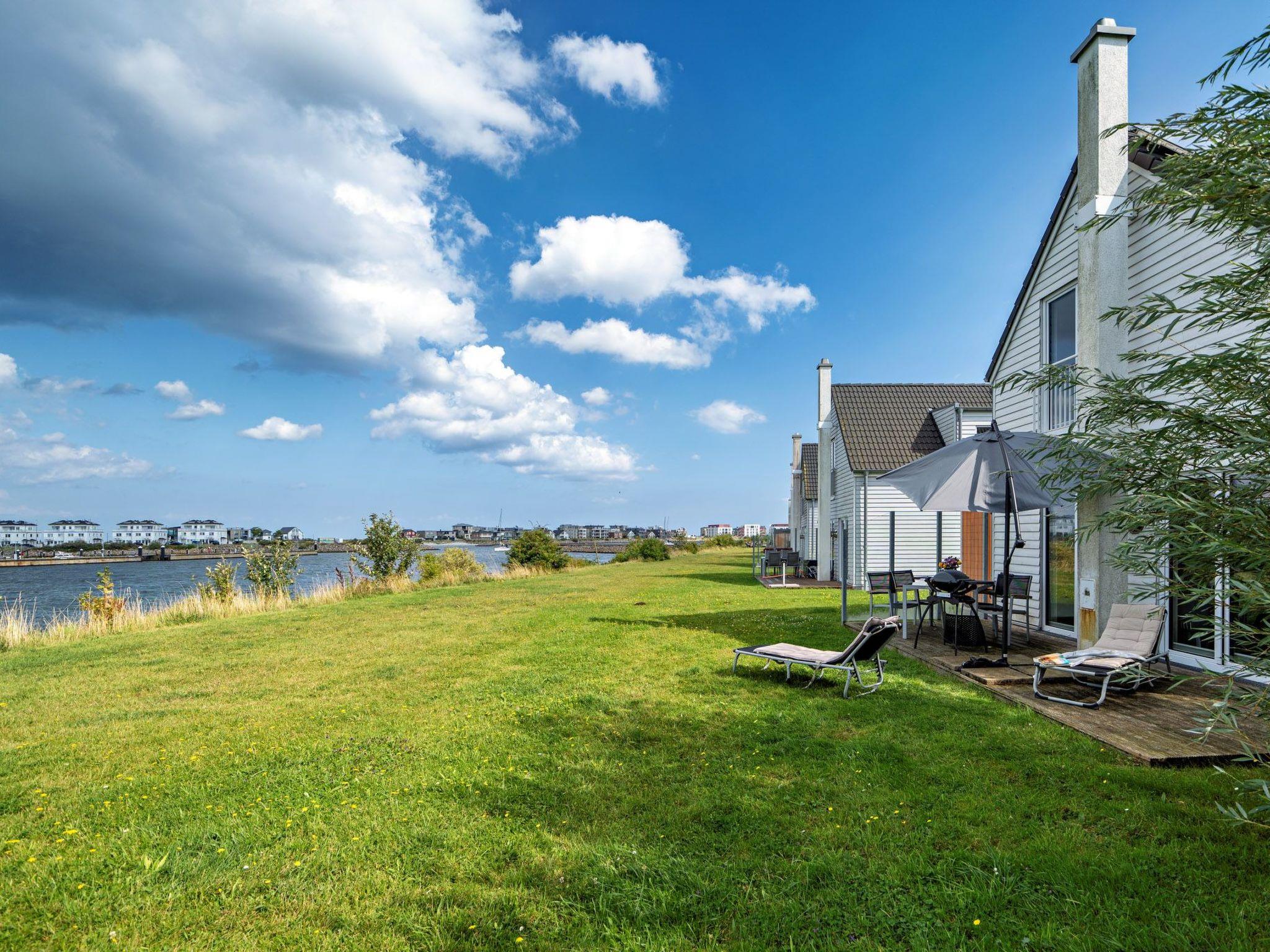 Die großzügige Terrasse bietet einen einzigartigen Blick auf vorbeiziehende Segel- und Sportboote, während der private Garten Ruhe und Erholung verspricht. Ein Weber-Elektrogrill und Sonnenliegen stehen zur Verfügung.