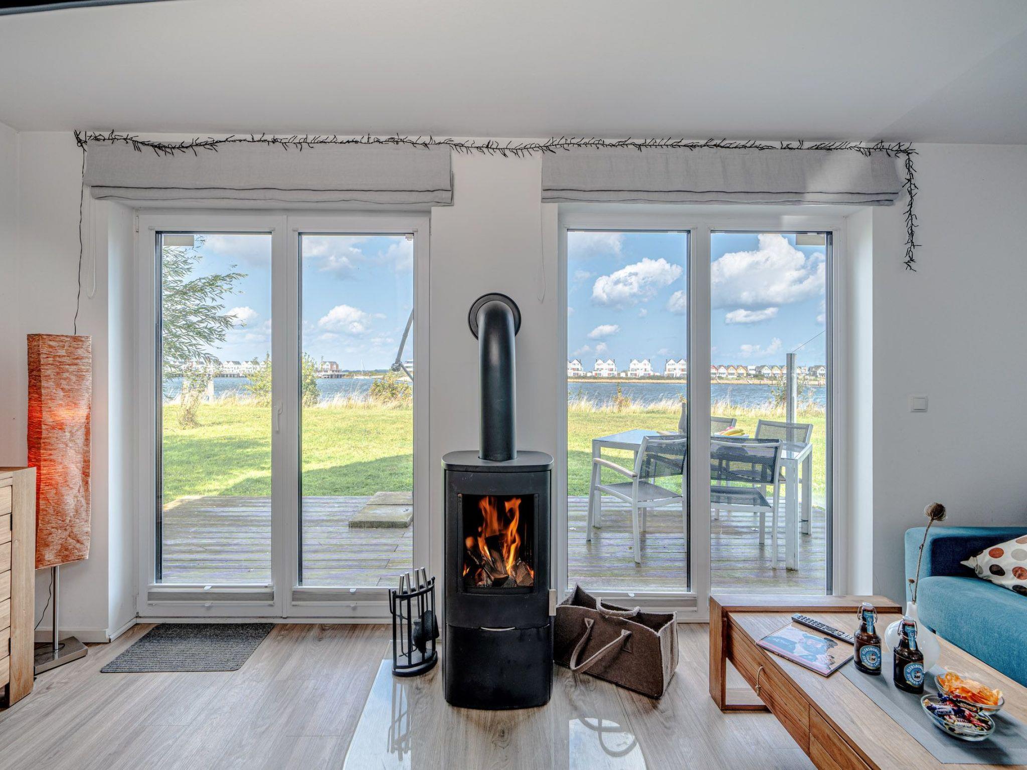 Der offene Wohnbereich im Erdgeschoss ist der perfekte Ort, um den Blick auf das glitzernde Wasser zu genießen. Ob beim gemeinsamen Essen oder bei einem gemütlichen Kaminabend im Wohnzimmer – hier erleben Sie Ostsee-Feeling pur.