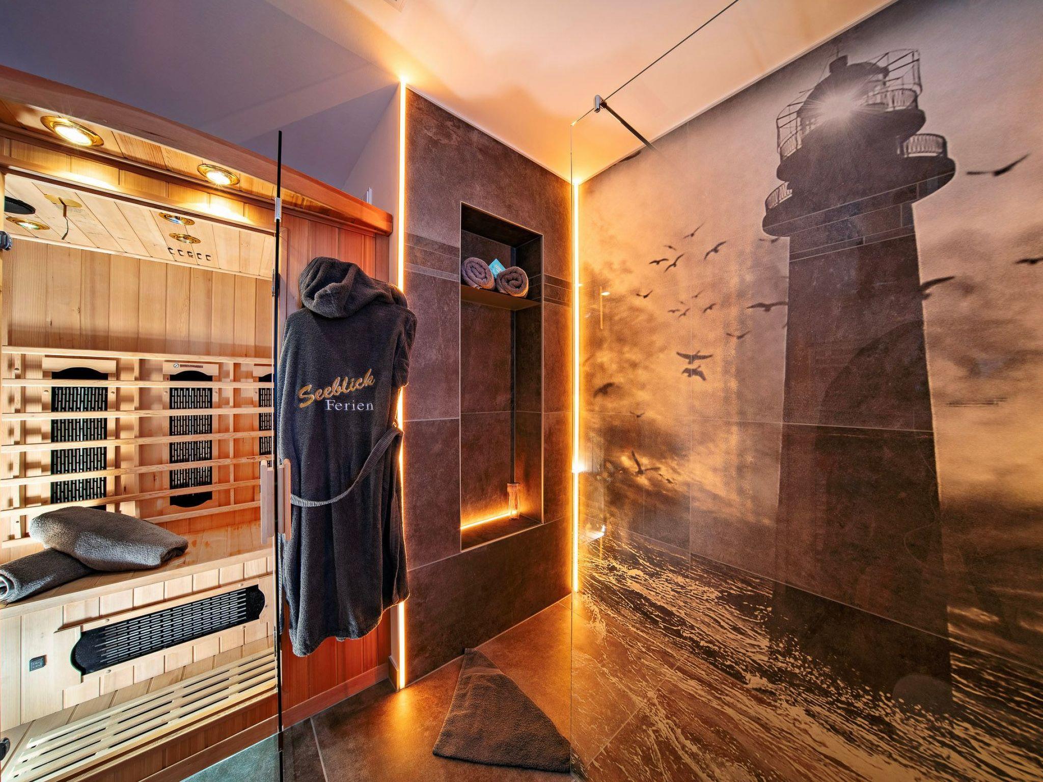 Entspannung und Wellness: Neben einem holzbefeuerten Kamin im Wohnbereich bietet die Räuberhöhle by Seeblick Ferien ORO ein Badezimmer mit XXL Walk In Dusche und eine Infrarotsaunakabine mit Hifi-Sound-System und Farblichttherapie. Hier können Sie sich nach einem erlebnisreichen Tag wunderbar entspannen und neue Energie tanken. Für gemütliche Abende vor dem Kamin ist bereits ein kleiner Vorrat fürs erste Feuer im Ferienhaus bereitgestellt. Doch bitte denken Sie daran, ihn nachzufüllen. Gern können Sie natürlich auch vorab bei unserem Gästeservice ein Kaminholzpaket buchen.