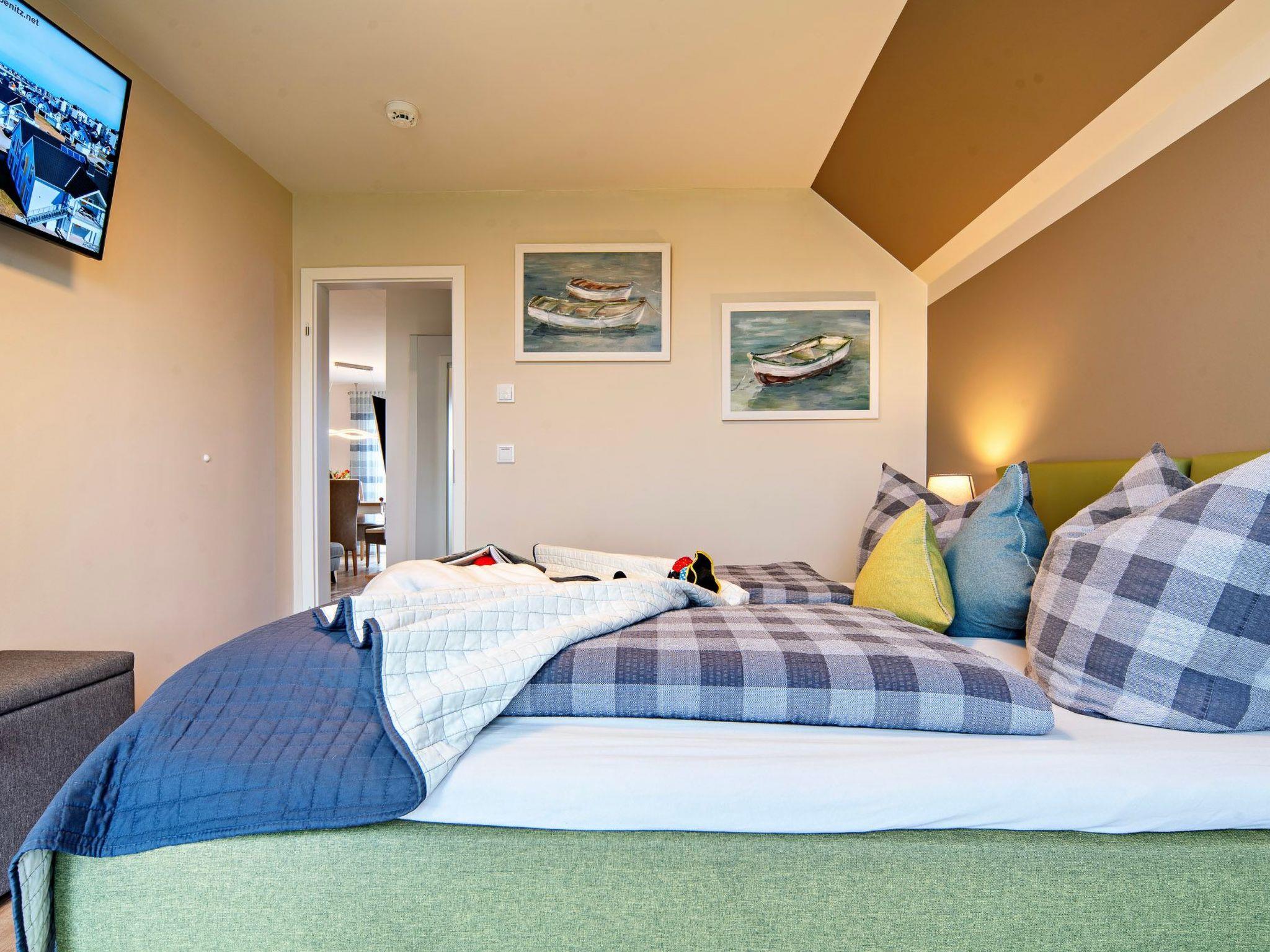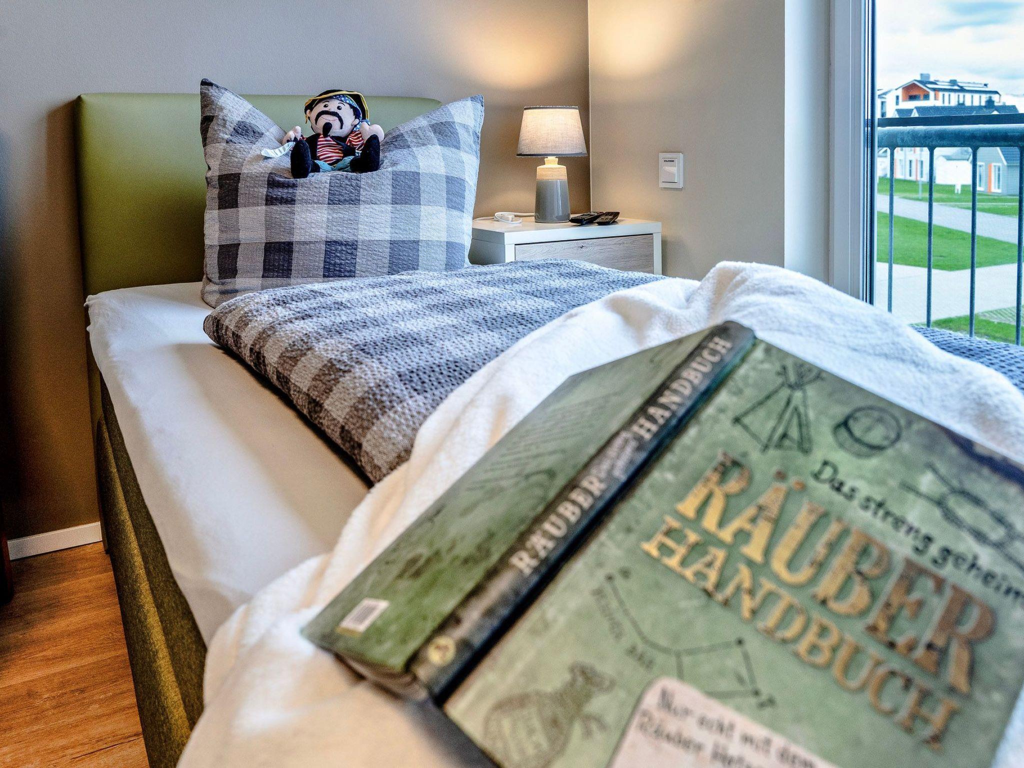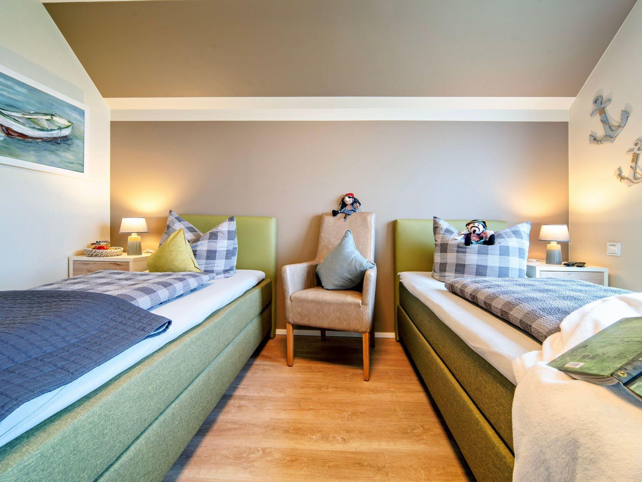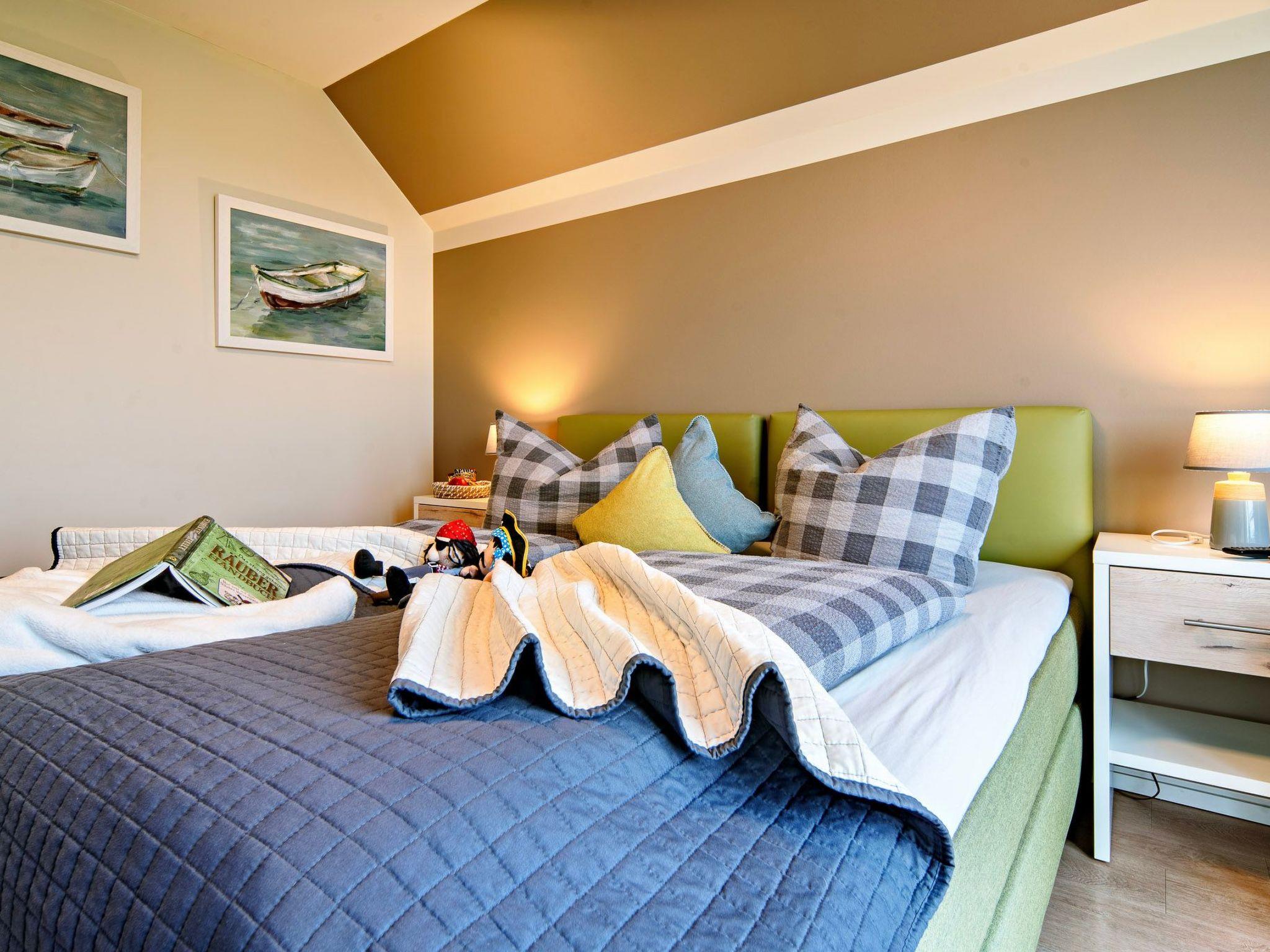 Komfortables Wohnen mit vielen Annehmlichkeiten: In der RÄUBERHÖHLE by Seeblick Ferien ORO finden Sie alles für eine erholsame Nachtruhe. Das Masterbedroom verfügt über ein gemütliches Boxspringdoppelbett, das Ihnen optimalen Komfort bietet. Genießen Sie eine angenehme Nachtruhe und entspannen Sie sich beim Fernsehen, direkt vom Bett aus. Das zweite Schlafzimmer ist mit zwei Einzelboxspringbetten ausgestattet, die bei ausreichender Harmonie zusammengeschoben werden können. Hier haben Sie die Flexibilität, je nach Ihren Bedürfnissen die Schlafgelegenheiten anzupassen. Selbstverständlich ich dieses ebenfalls mit einem Smart TV ausgestattet.