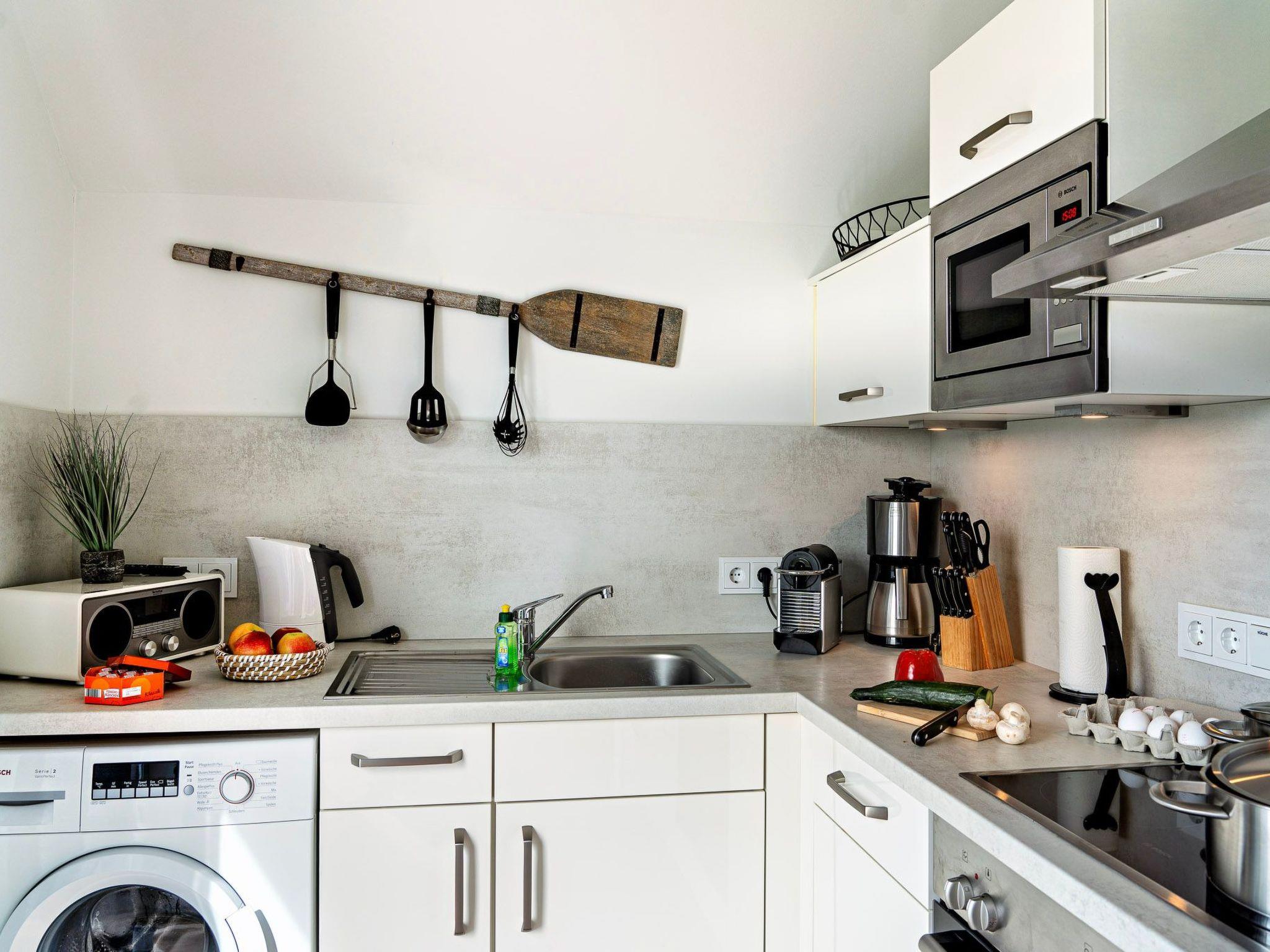 Ausstattung und Extras: In der Ferienwohnung finden Sie eine voll ausgestattete Wohnküche, eine Waschmaschine, eine Spülmaschine, ein Bügeleisen und viele weitere Annehmlichkeiten vor. Verdunkelbare Plissees und Fliegengitter sorgen für eine angenehme Atmosphäre. Gesellschaftsspiele stehen für gemeinsame Unterhaltung bereit.