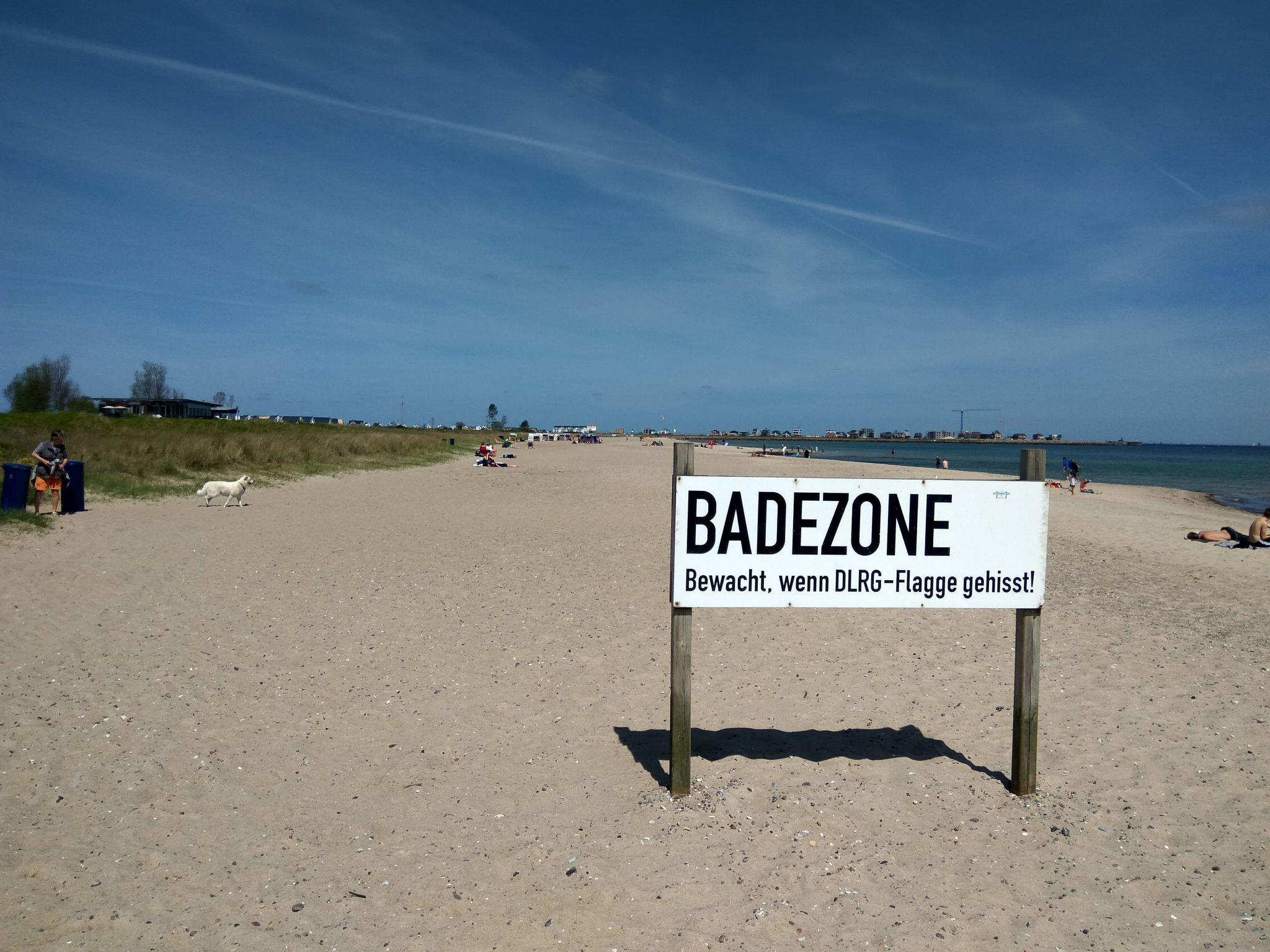 Der nächste Badestrand in Port Olpenitz ist nur 300 m entfernt. Ein weiterer 5km langer Sandstrand ist Luftlinie ca 800m entfernt ( sie fahren/gehen aber ein wenig länger um den Hafen drum herum ). Dieser hat hat mehrere Strandabschnitte (allgemeines Baden, FKK, Windsurfen und Kitesurfen und natürlich den Hundestrand) . Die kulinarische Versorgung wird durch ein tolles Restaurant durchgeführt, dort gibt es auch Toiletten."
