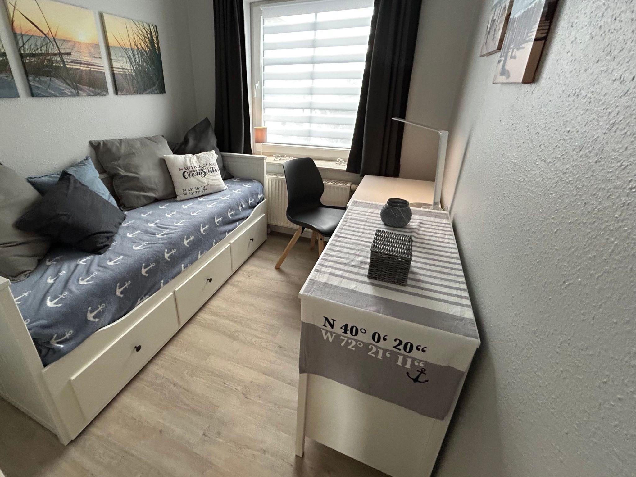 Wohn-/ Essbereich mit neuer integrierter, voll ausgestatteter Küche (u.a. mit Mixer, Waffeleisen usw.), ein Schlafzimmer mit Doppelbett, ein zweites Zimmer mit einem Tagesbett, Kommode, Kleiderschrank und einem kleinen Schreibtisch. Tageslichtbad mit Dusche. Für Ihren Hund (max.1 mit einer Schulterhöhe von jeweils 65 cm) steht eine Box mit Hundekissen, 3 Näpfen, Ankerhaken für den Garten, Kotbeutel etc bereit.