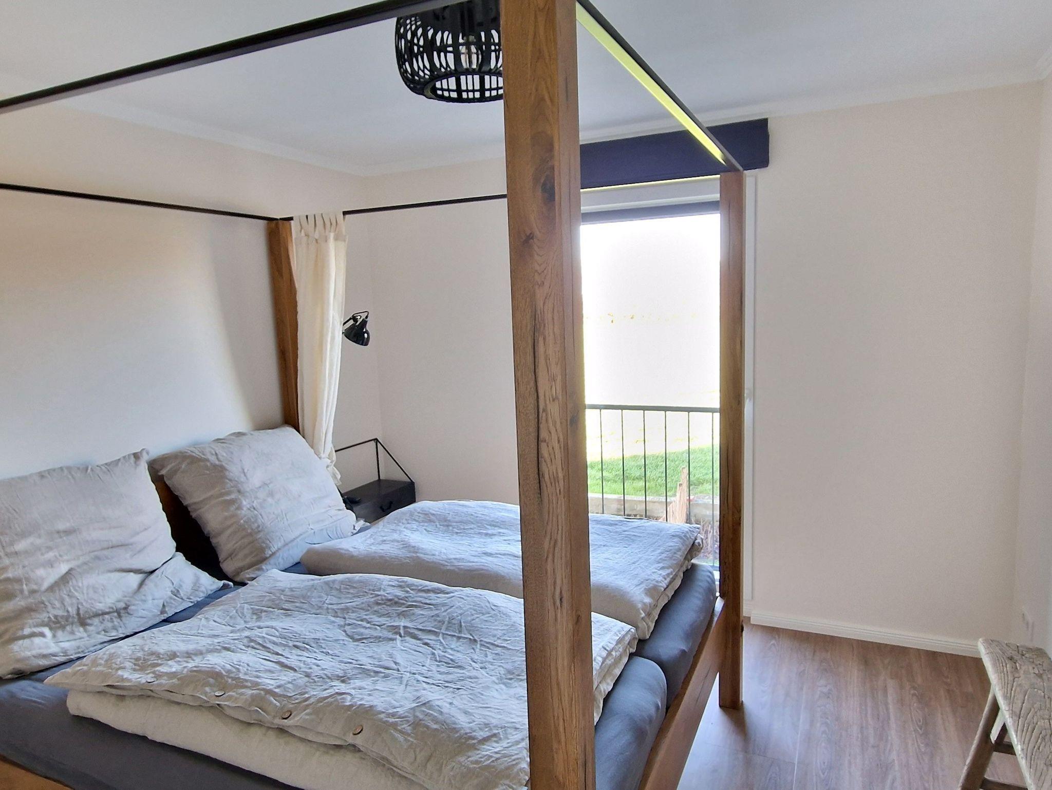 - Schlafzimmer mit ausziehbarem Bett (80-150x200); Verdunklungsplissees; Bettwäsche ist inklusive