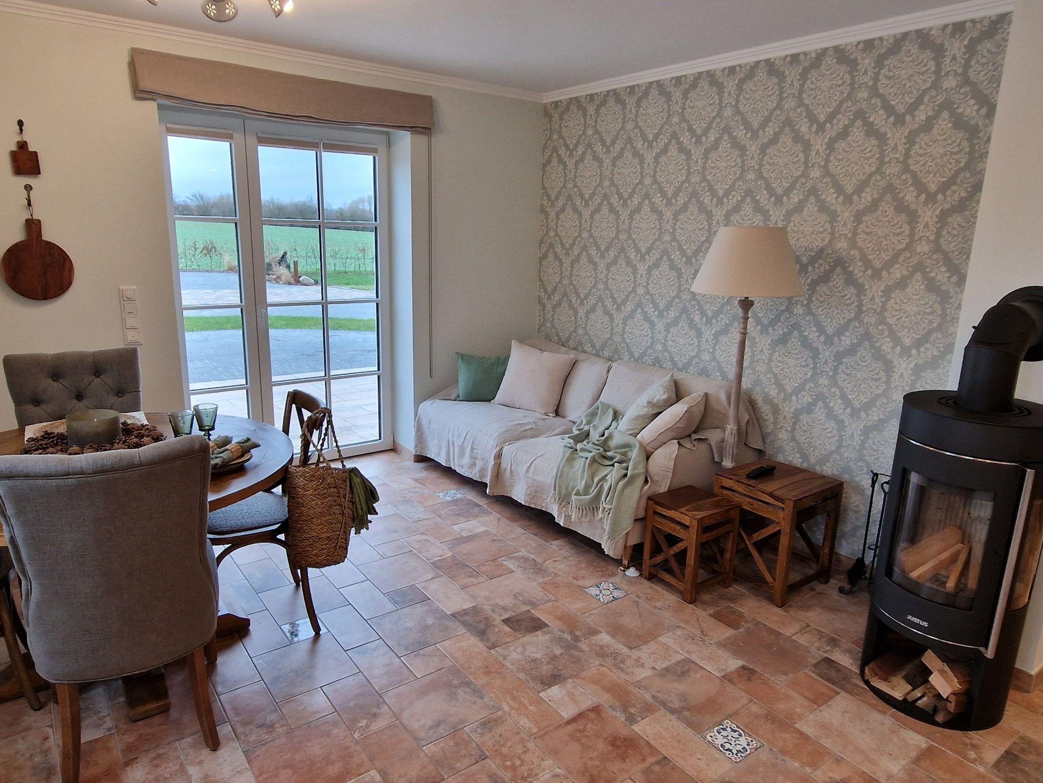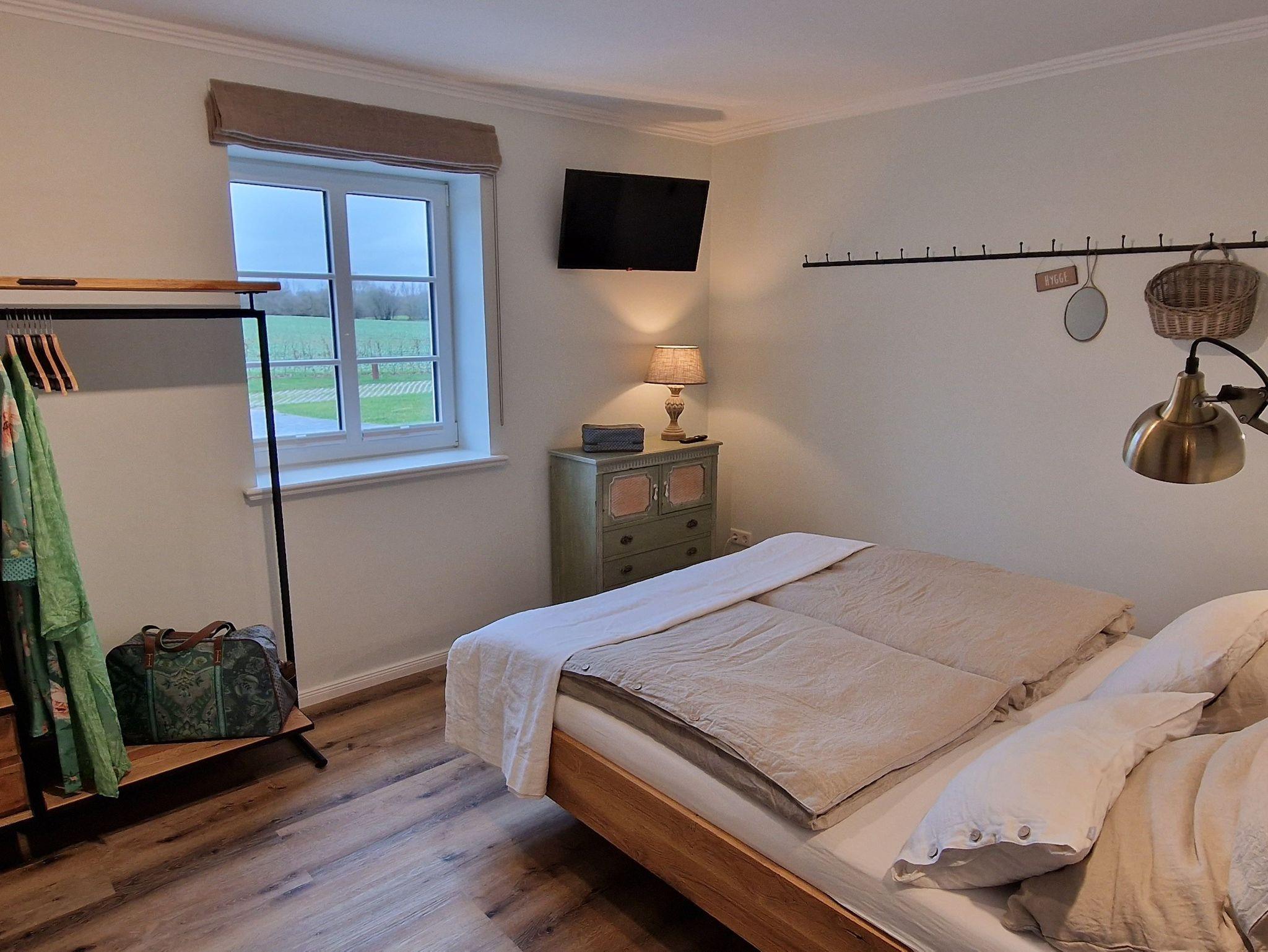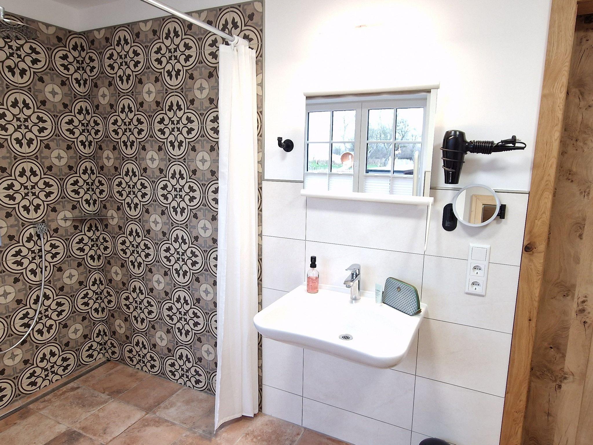 Die barrierearme Ferienwohnung Waschköök im Erdgeschoss des Haupthauses ist in einem charmanten Mix aus Alt und Modern gestaltet und hochwertig ausgestattet. Eine Fußbodenheizung sorgt für angenehme Wärme.