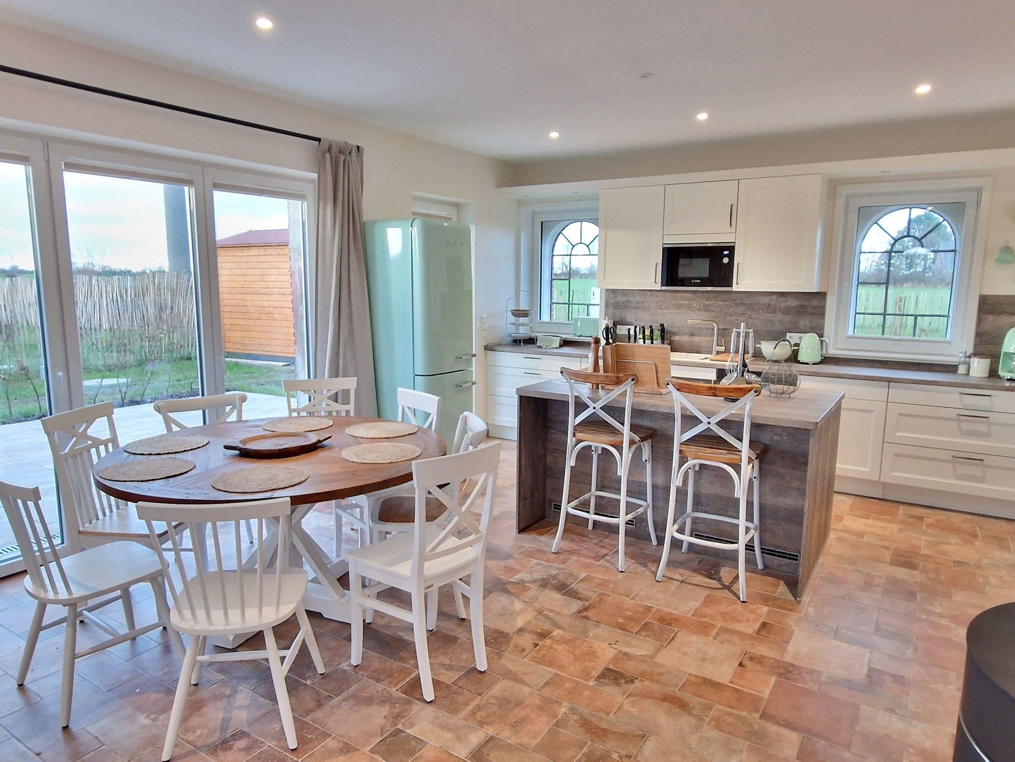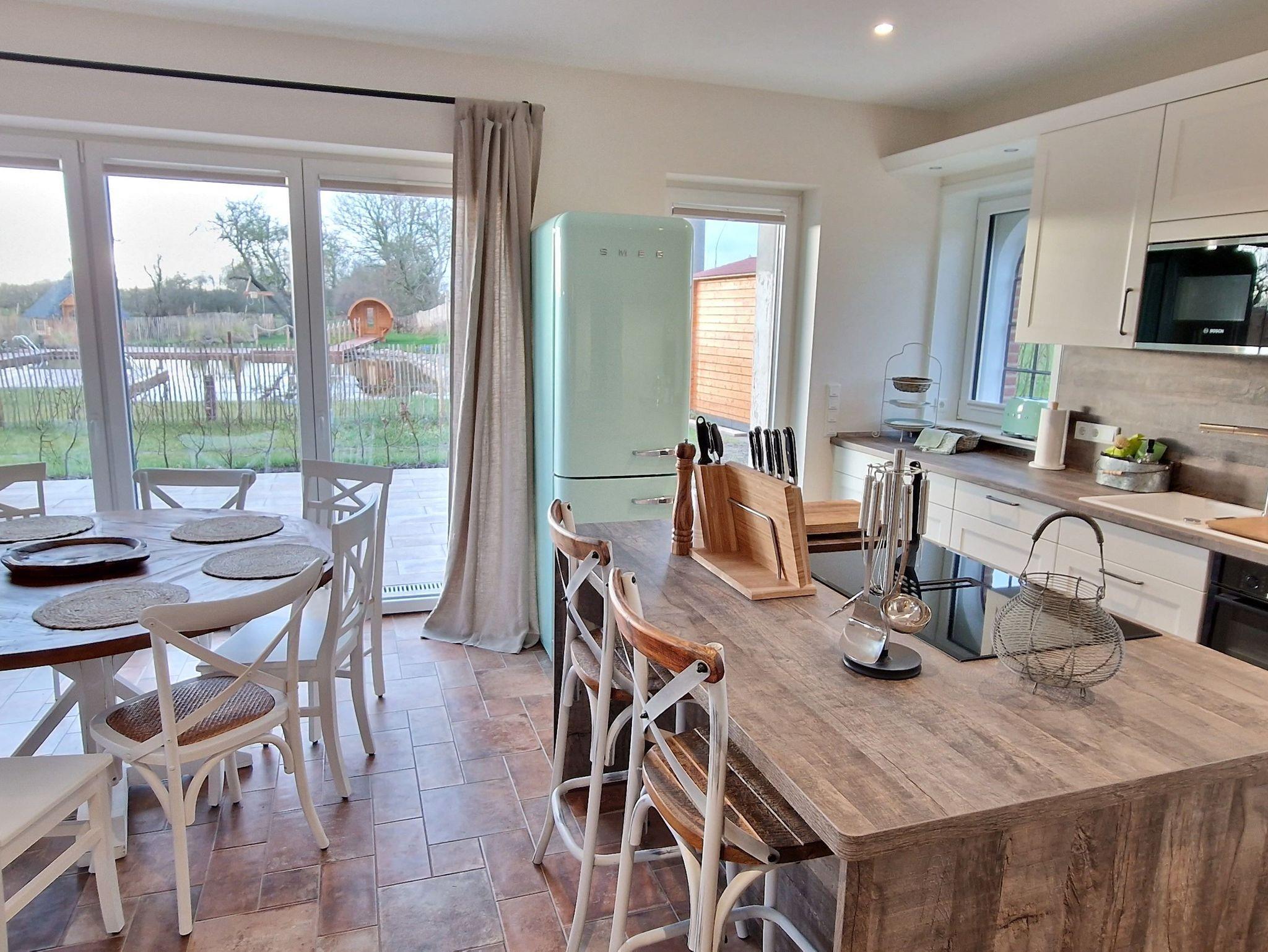- offene Küche mit Kochinsel, Induktionskochfeld und Muldenlüfter