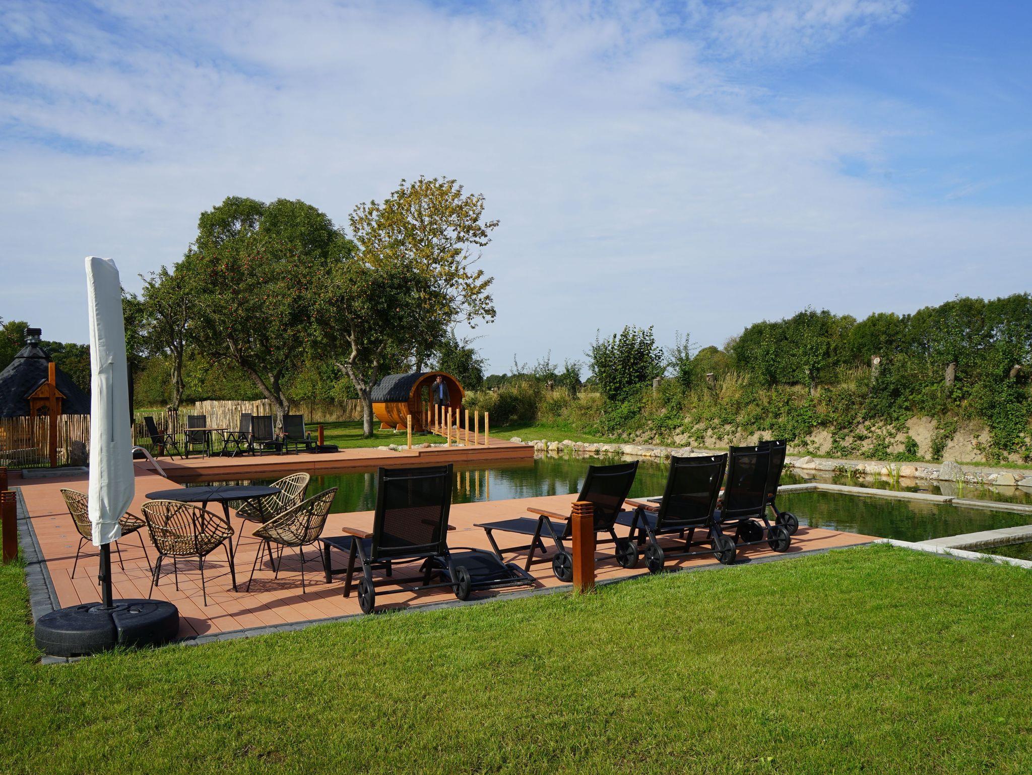 Die Ferienwohnung Sünnunnergang auf dem Hof Mühlenkoppel für bis zu 4 Erwachsene und 4 Kinder bis 16 Jahren ist eine von neun komfortablen Wohnungen, die im Haupthaus und den Nebengebäuden des ehemaligen Hofes entstanden sind. Ein großzügiger Schwimmteich mit Liegebereich und Umkleidehäuschen, eine Grillkota und eine Fasssauna mit rustikaler Schwalldusche stehen allen Gästen des Hofes zur Verfügung. Auf dem Parkplatz vor dem Haupthaus befinden sich 4 E-Ladestationen für Elektroautos (gegen Gebühr).