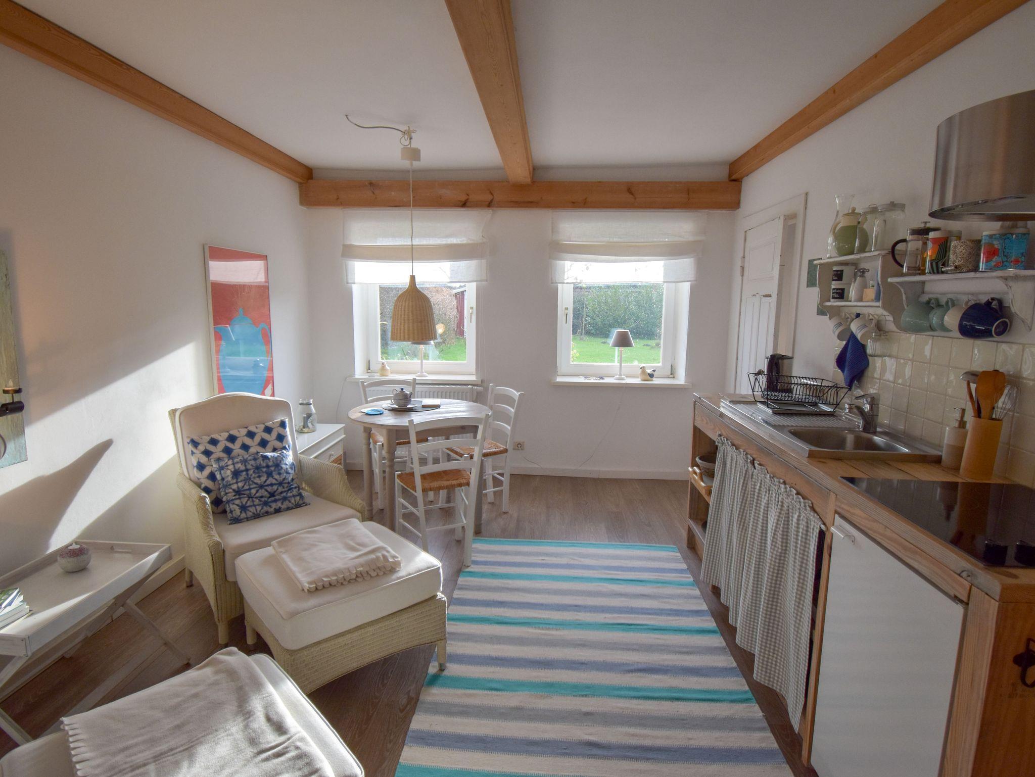 Das Ferienhaus EXTRAZEIT-URLAUB ist eines der ältesten am Ort (Baujahr 1866) und wurde in den letzten Jahren umfassend renoviert und saniert, so dass moderner Komfort und alte Stilelemente ein wohliges Ambiente erzeugen. Das gesamte Ferienhaus ist ebenerdig und bietet auf 90 qm Platz für bis zu 4 Personen. Die Aufteilung des Ferienhauses ermöglicht sowohl großzügiges Wohnen für zwei Personen als auch komfortables Wohnen zu dritt oder viert mit der Option, die Bereiche zu separieren. Ein kleines ehemaliges Stallgebäude bietet die Möglichkeit zum Unterstellen und Laden Ihrer Fahrräder/(E-)Bikes. Hier finden Sie auch einen Grill und Gartenmöbel. Aufgrund des Alters des Hauses teilweise niedrigere Decken.
