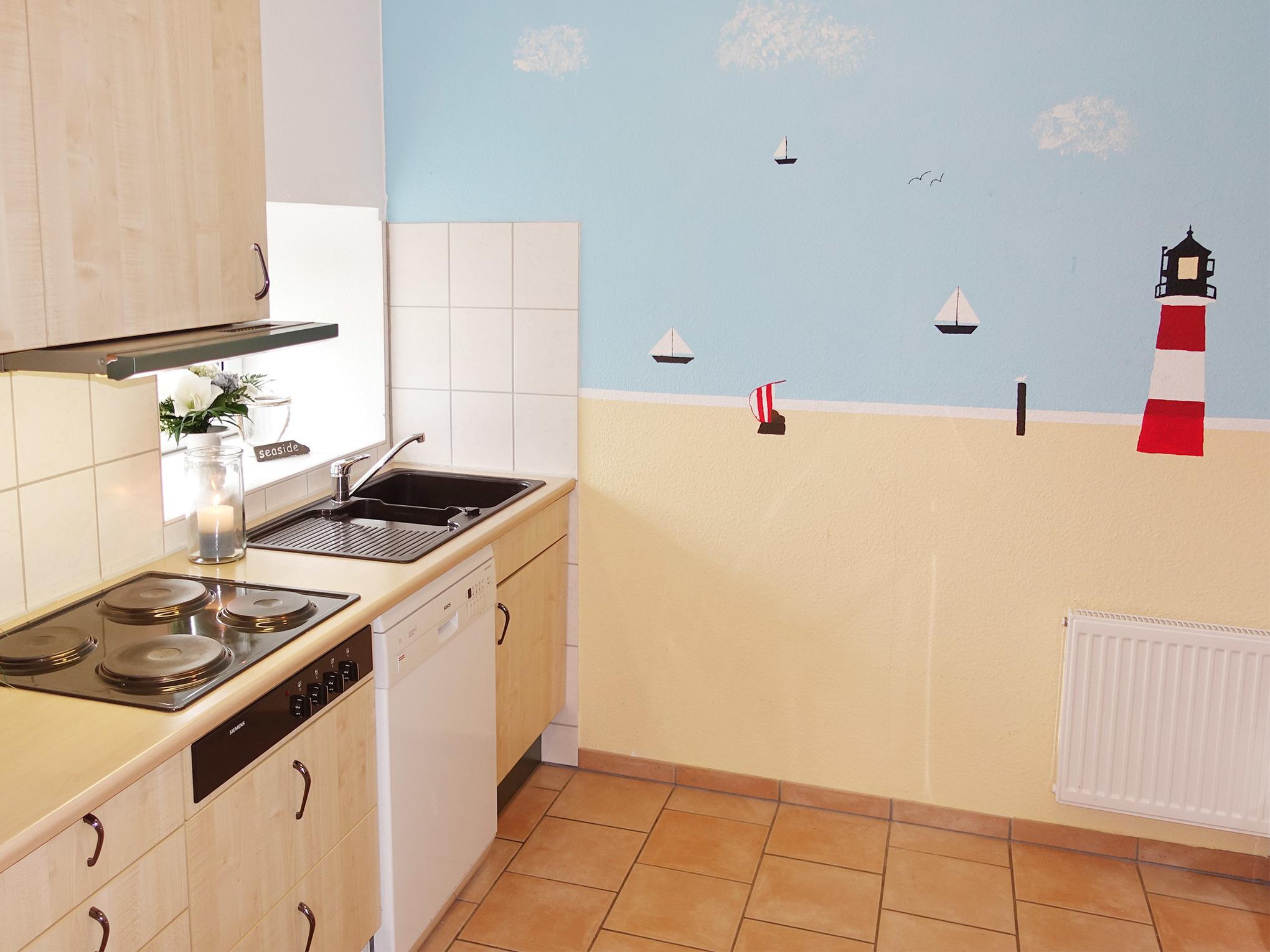 Unsere Ferienwohnung "Familienkoje" bietet mit ihrem hellen maritim eingerichteten Wohnraum und ihren drei gemütlichen Schlafzimmern Platz für sieben Personen. Das Elternschlafzimmer ist mit einem hochwertigen Boxspringbett ausgestattet, die anderen beiden Schlafzimmer besitzen zwei bzw. drei einzelne Betten. Alle Betten sind für Ihren erholsamen Schlaf mit hochwertigen Matratzen und Lattenrosten ausgestattet. Nach Herzenslust Kochen ist in der gut ausgestatteten separaten Küche sehr leicht möglich, den Abwasch macht die Geschirrspülmaschine. Eine separate Terrasse mit eigenem Strandkorb lädt zum Lesen, Träumen und Seele baumeln lassen ein. Den sieben Bewohnern stehen zwei Duschbäder zur Verfügung.
