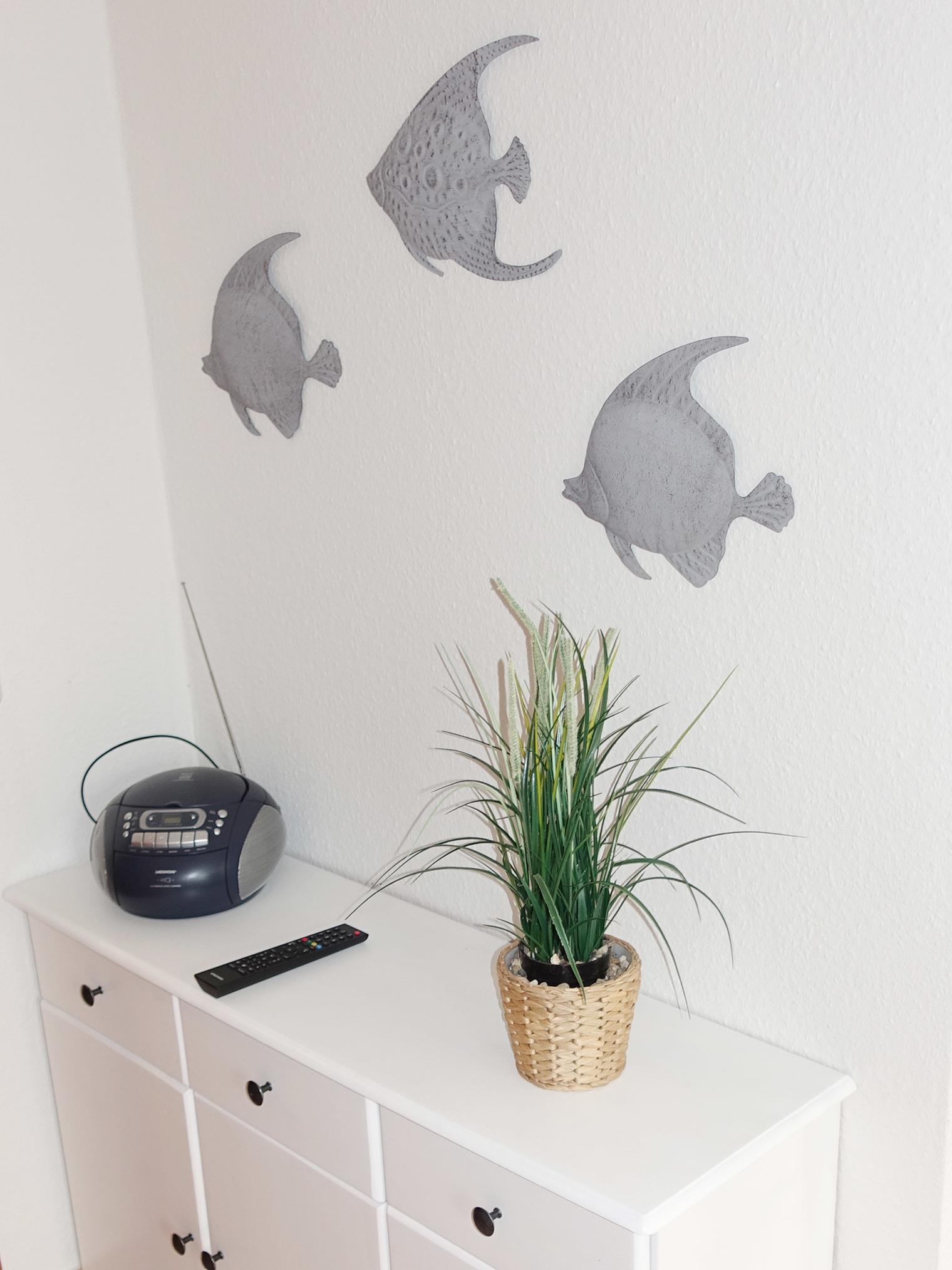 Unsere Ferienwohnung "Seesternquartier" bietet mit ihrem gemütlich eingerichteten Wohnraum und ihren beiden gemütlichen Schlafzimmern Platz für vier Personen. Das Elternschlafzimmer besitzt ein großzügiges Doppelbett, das zweite Schlafzimmer zwei einzelne Betten. Alle Betten sind für Ihren erholsamen Schlaf mit hochwertigen Matratzen und Lattenrosten ausgestattet. Nach Herzenslust Kochen ist in der gut ausgestatteten Küche sehr leicht möglich, den Abwasch macht die Geschirrspülmaschine. Eine separate Terrasse mit eigenem Strandkorb lädt zum Lesen, Träumen und Seele baumeln lassen ein. Für Rollstuhlfahrer sind Eingangs- und Terrassentüren ohne Schwellen eingebaut worden, und die Türen innerhalb der Wohnung sind einen Meter breit. Im Bad wurden unterfahrbare, flache Waschbecken und Haltegriffe an der Toilette sowie an der flachen Dusche verbaut.