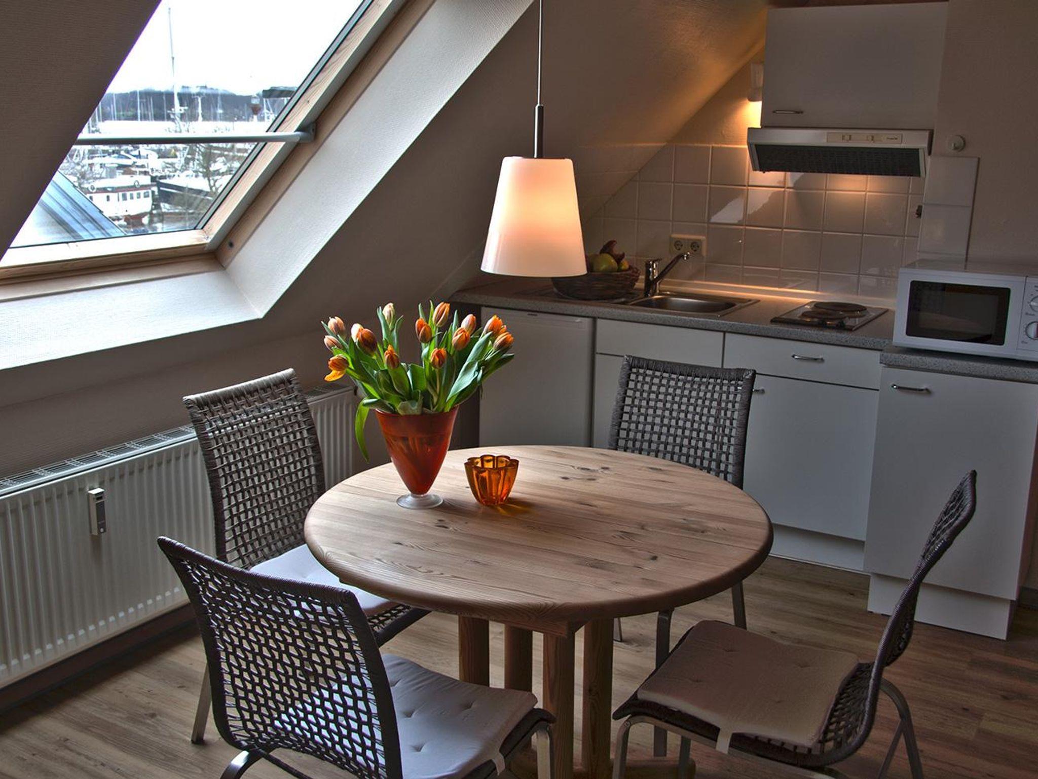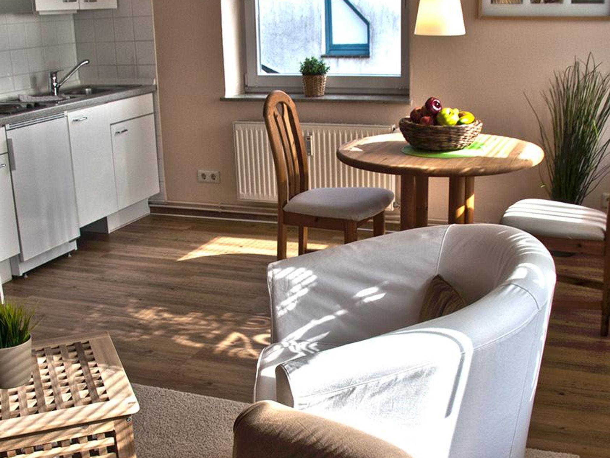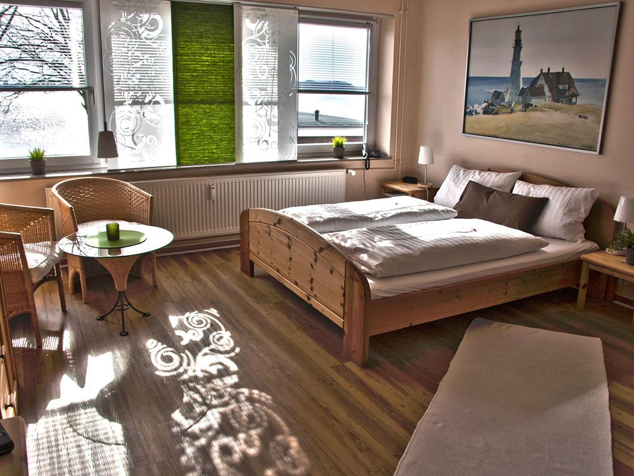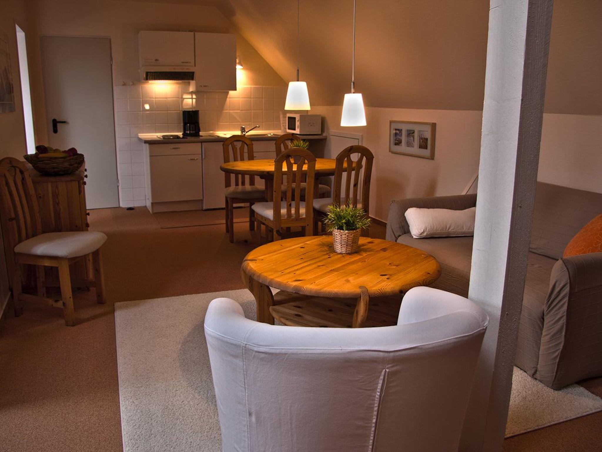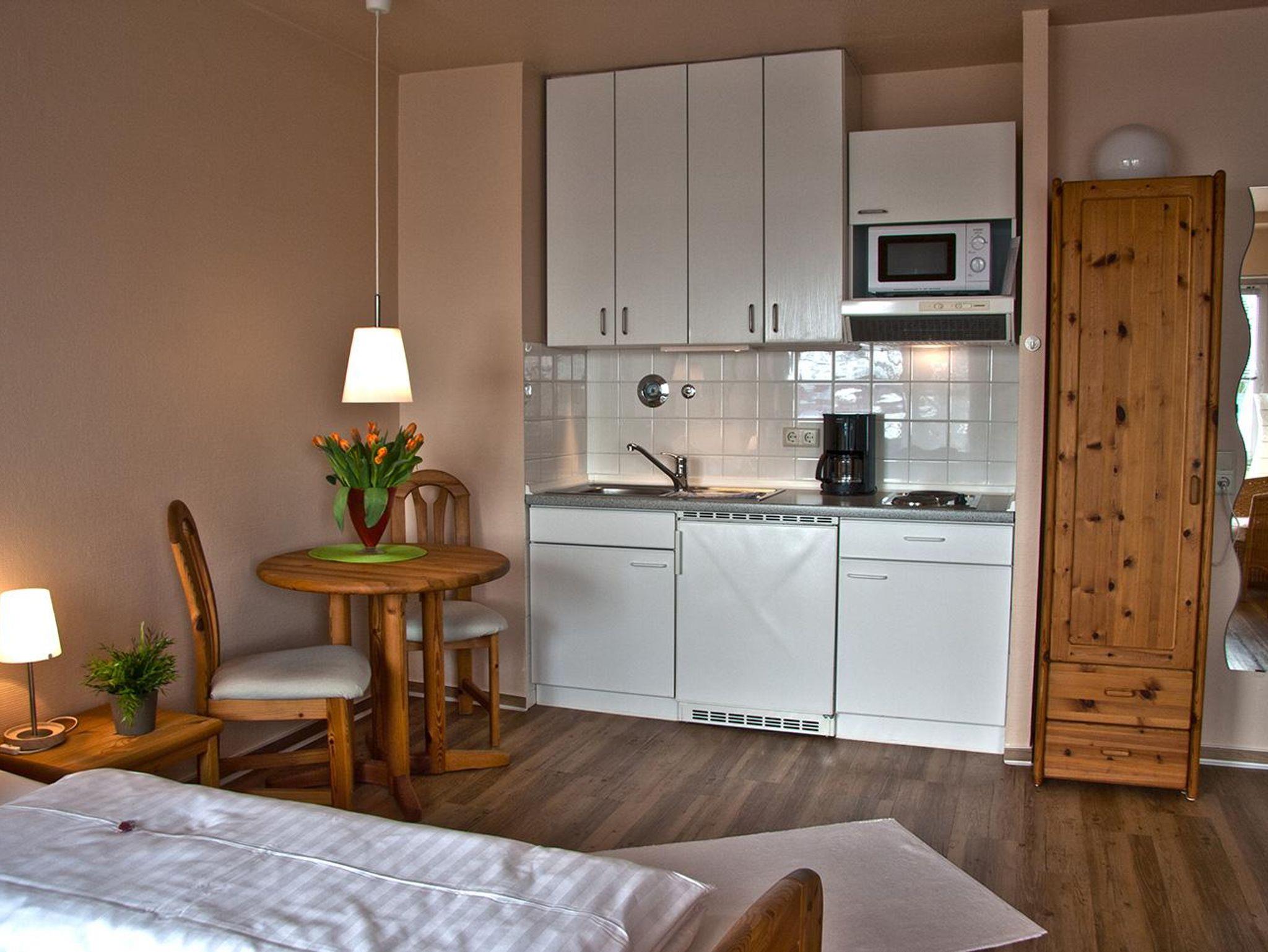 Die Appartements befinden sich im ersten und zweiten Obergeschoss. Sie verfügen über 1 Wohn-/Schlafraum/Küche, Flur und Dusche/WC. Die liebevoll eingerichteten Appartements im skandinavischen Stil sind lichtdurchflutet und laden zum Wohlfühlen ein. Ausstattung: Pantry-Küche, Kühlschrank, Mikrowelle, HD-Fernseher, Radiowecker, kostenloses Telefon (Festnetz innerhalb Deutschlands), kostenloser W-Lan-Zugang.
