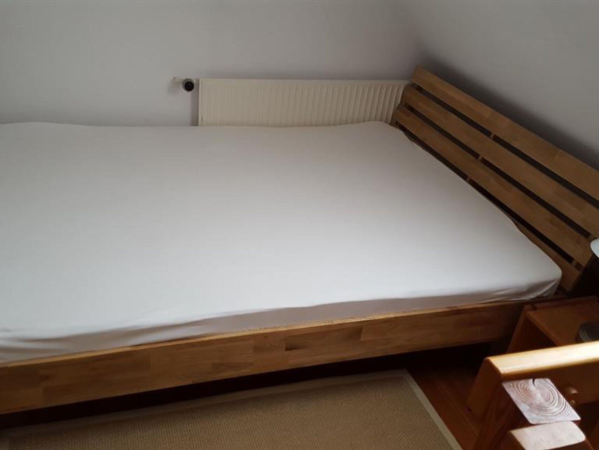 Den kleinen Schlafraum im Dachgeschoss erreichen Sie wiederum über eine steile Holztreppe aus dem Wohnraum. Der Schlafraum verfügt über ein gemütliches Bett (140 x 200).