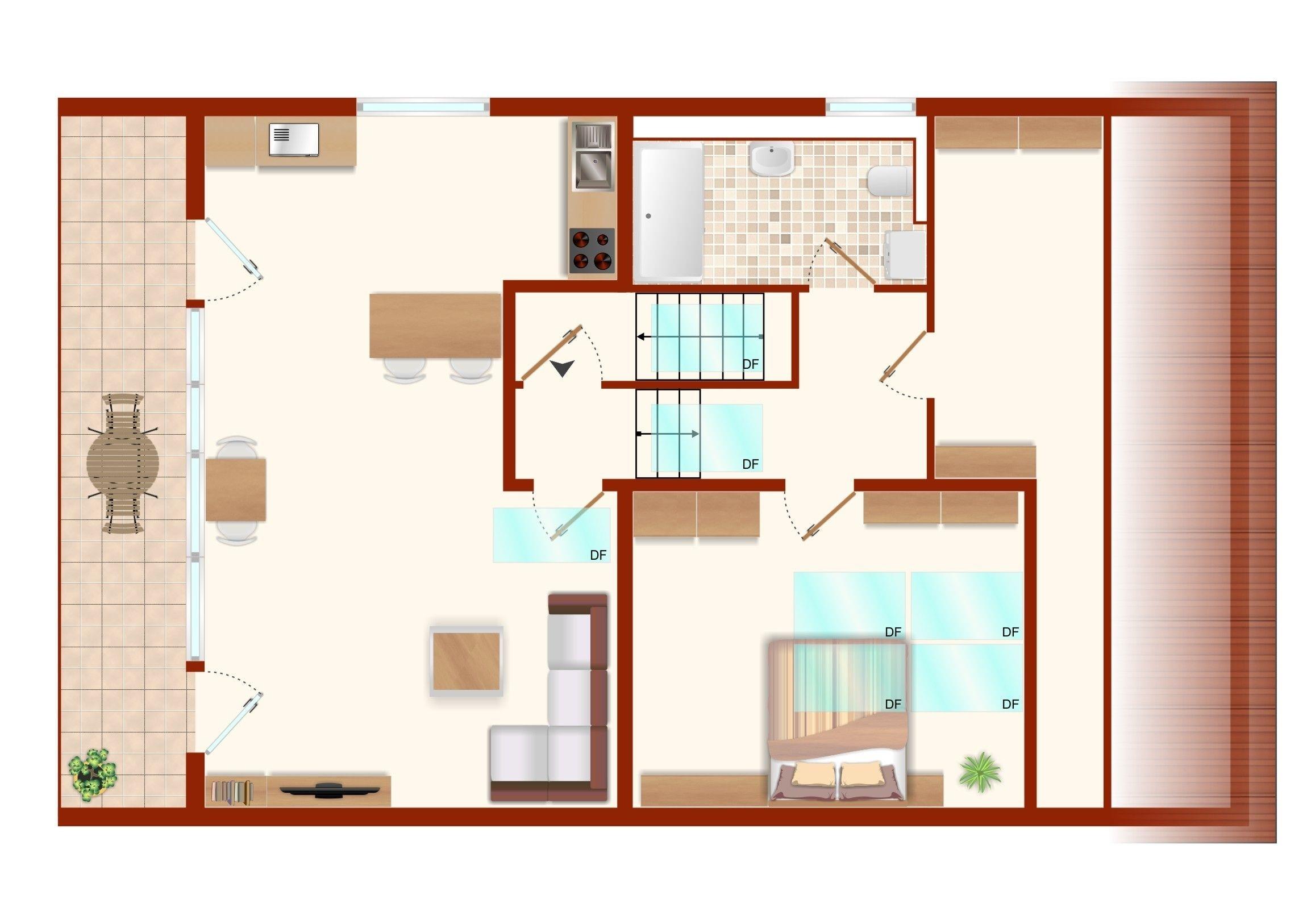 Diese moderne 2-Zimmer-Ferienwohnung bietet Platz für 2 Personen. Sie liegt im 1. Stock (Dachgeschoss) eines Zweifamilienhauses und verfügt über einen Balkon mit Meerblick sowie eine Wohnfläche von ca. 52 m².