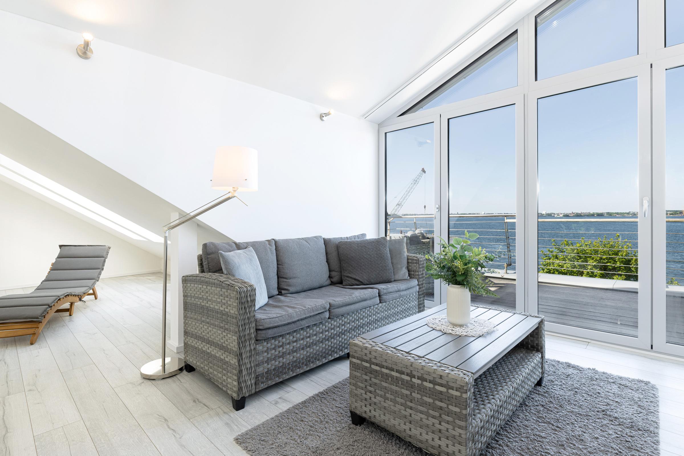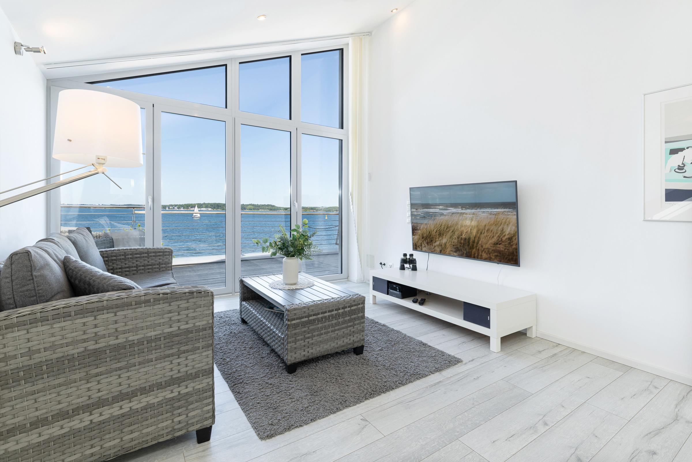 Exklusive, modern und großzügig ausgestattete Ferienwohnung mit traumhaften Fördeblick in unmittelbarer Nähe zum Strand und Hafen!