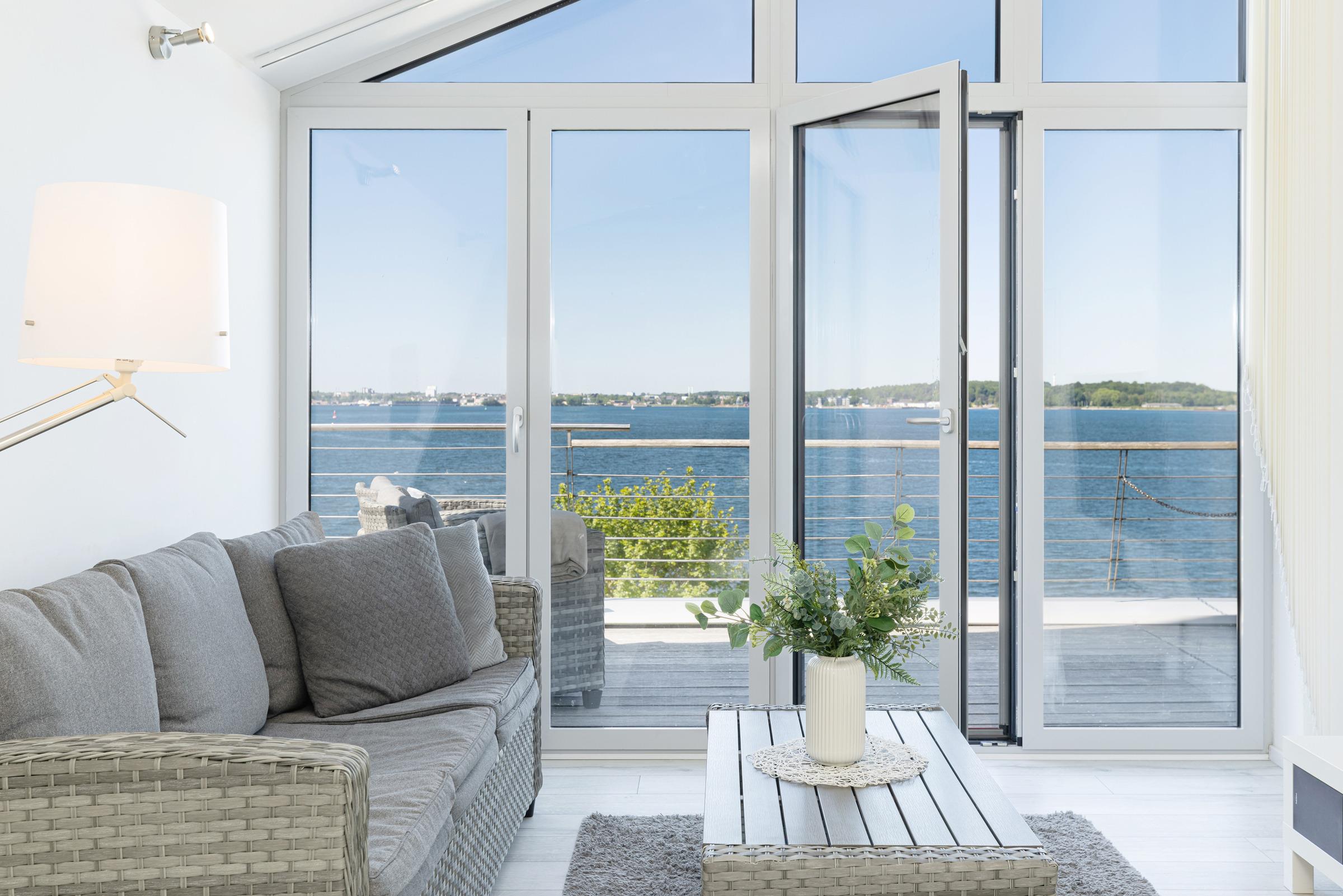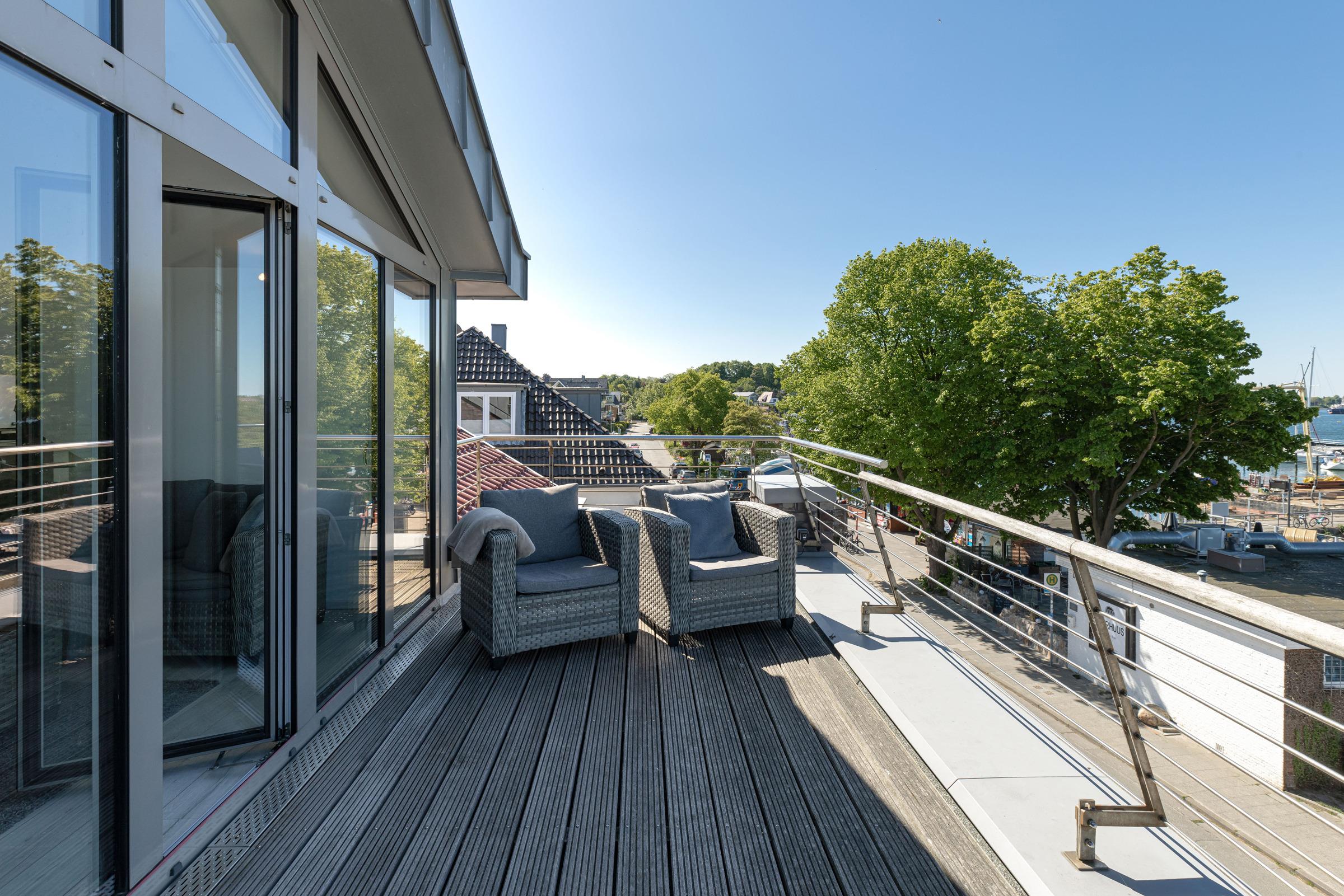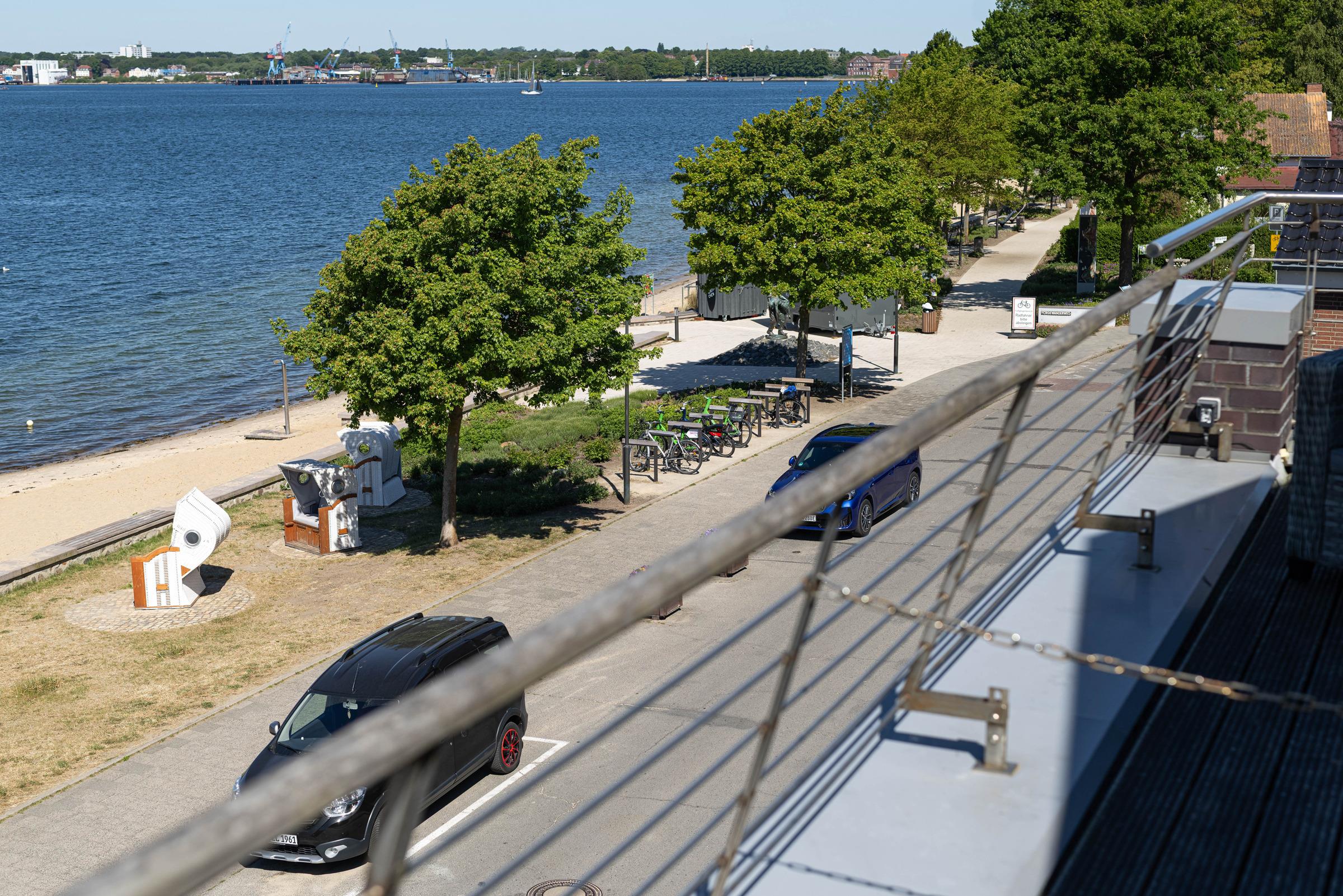 Moderne Ferienwohnung in Heikendorf mit Balkon und traumhaftem Blick auf die Kieler Förde, direkt am Strand und Hafen gelegen.