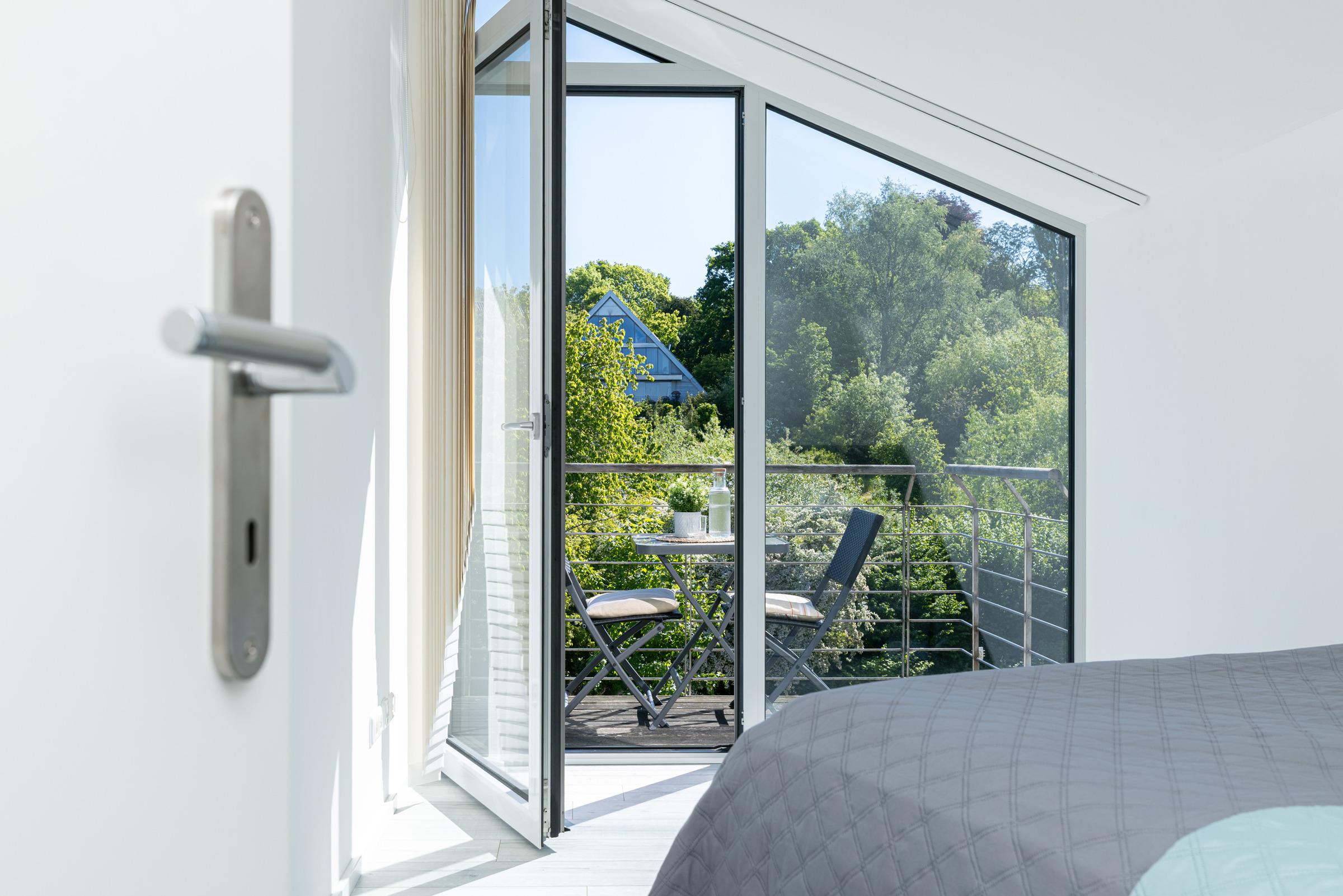 Jeder einzelne Raum besticht durch seine großzügige Aufteilung und seine verwendeten Materialien. Die bodentiefe Fensterfront lädt ganzjährig zum Öffnen und Verweilen ein.