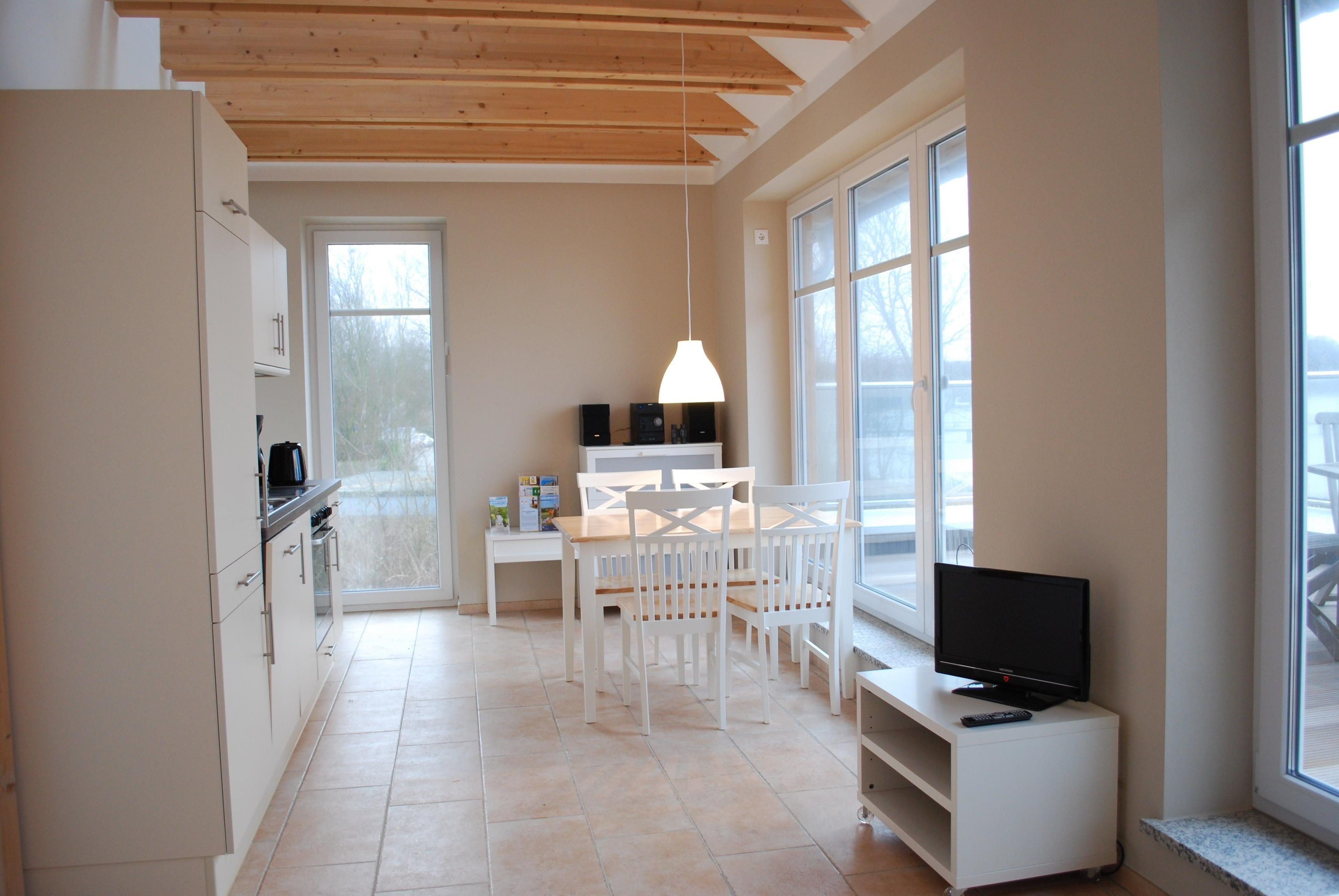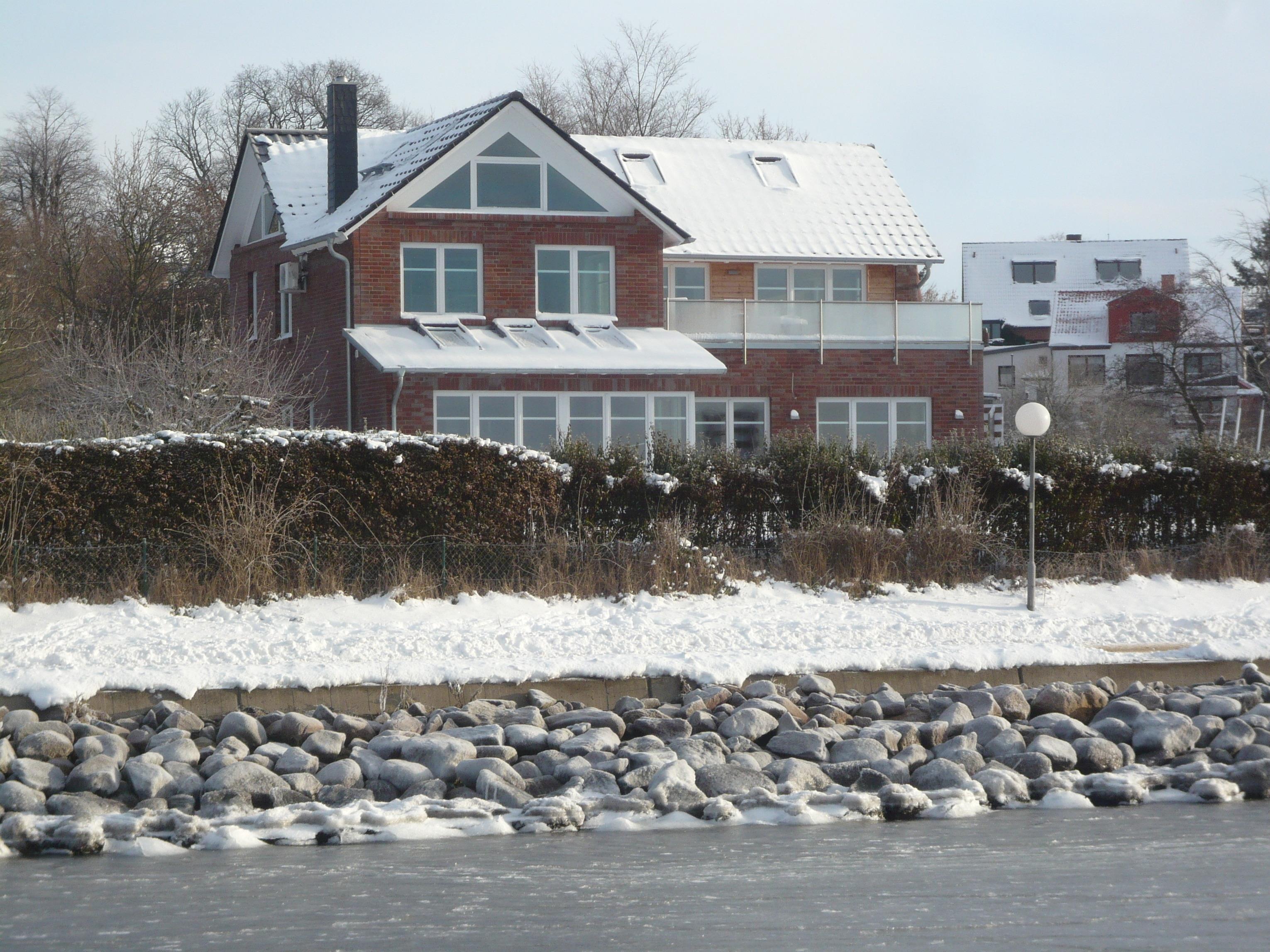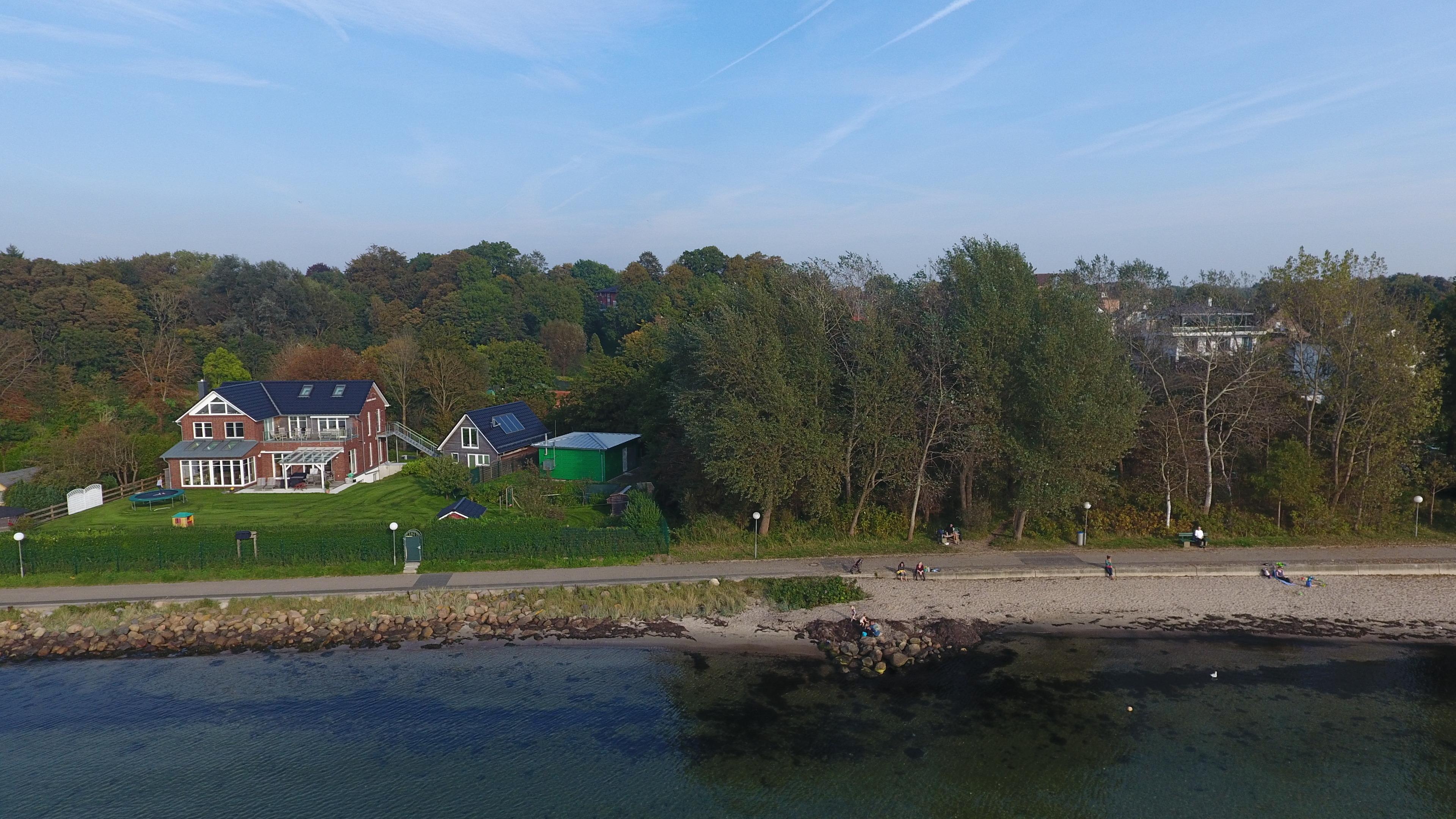Die in 2010 erstelle Ferienwohnung erfüllt höchste Ansprüche: nur 20 m von der Wasserlinie entfernt und nur durch einen ruhigen Fußweg vom Ufer entfernt, bietet die Wohnung unverbaubaren Fördeblick mit großer Dachterrasse.
