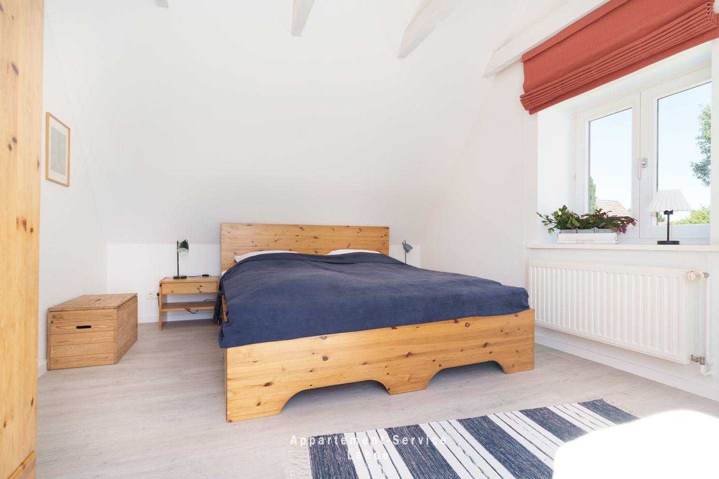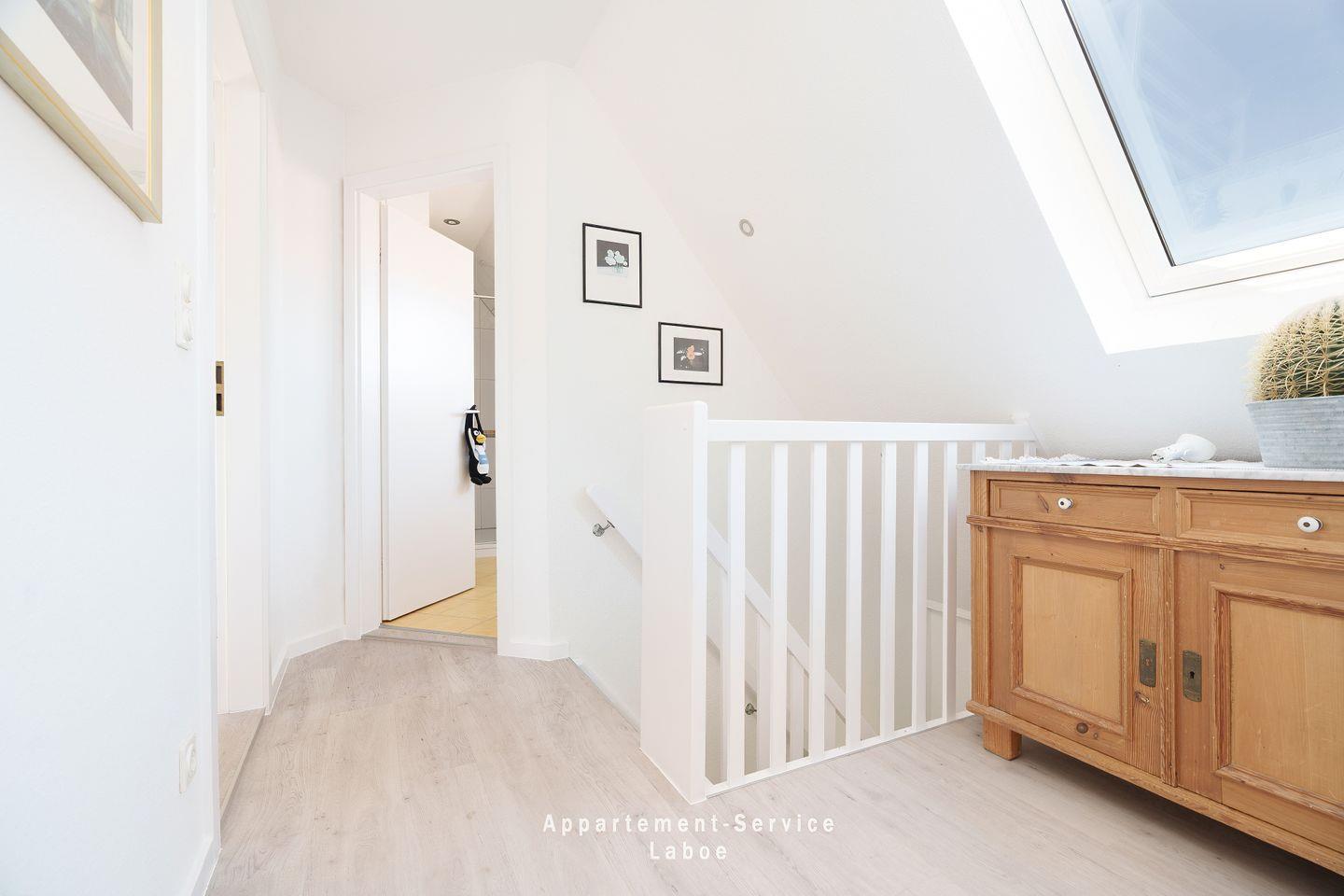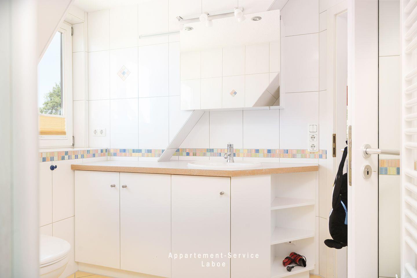Die Küche ist großzügig geschnitten und bestens geeignet, um sich auch im Urlaub selbst zu versorgen. Hier wird gekocht, geschnippelt und gemeinsam gegessen. Durch die Fenster fällt der Blick in den kleinen Garten, der an warmen Tagen wie eine Verlängerung des Wohnzimmers wirkt. Auf der möblierten Terrasse kannst du morgens deinen Kaffee genießen und abends den Tag bei einem Glas Wein ausklingen lassen.