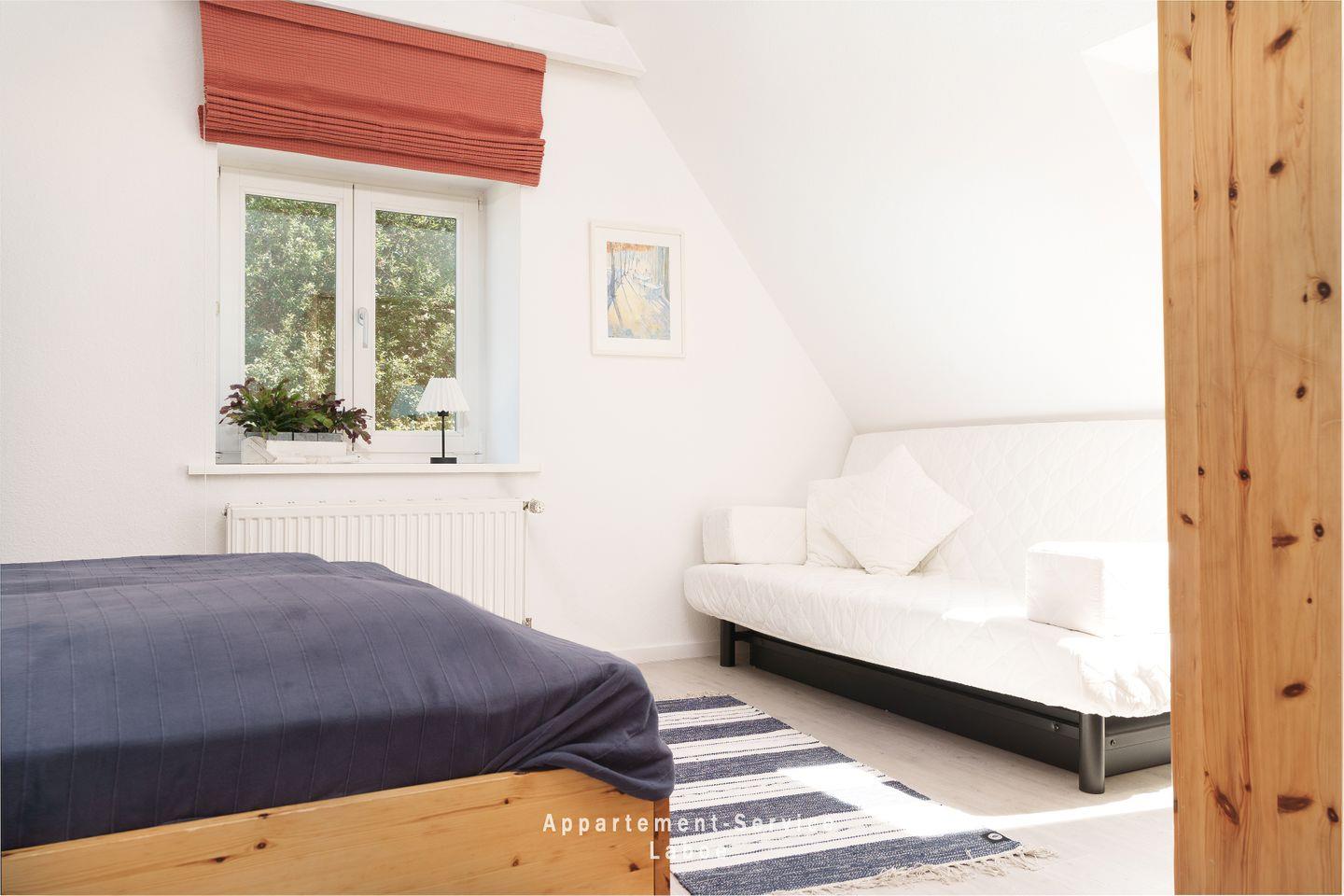 Ferienhaus Nord°54: 90 m² 3-Zimmer-Ferienhaus über 2 Ebenen für max. 6 Personen, 1 x Schlafzimmer mit Doppelbett (180 x 200) und Doppelschlafsofa (140 x 200), 1 x Schlafzimmer mit Einzelbett (90 x180) und Doppelschlafsofa (140 x 200), Wohnzimmer mit Sitzgruppe und Couch (Schlaffunktion), vollausgestattete Küche mit Essplatz, Badezimmer Dusche und WC, möblierte Terrasse, kleiner Garten, Pkw-Stellplatz, WLAN, ruhiges Wohngebiet, Haustiere nicht erlaubt.