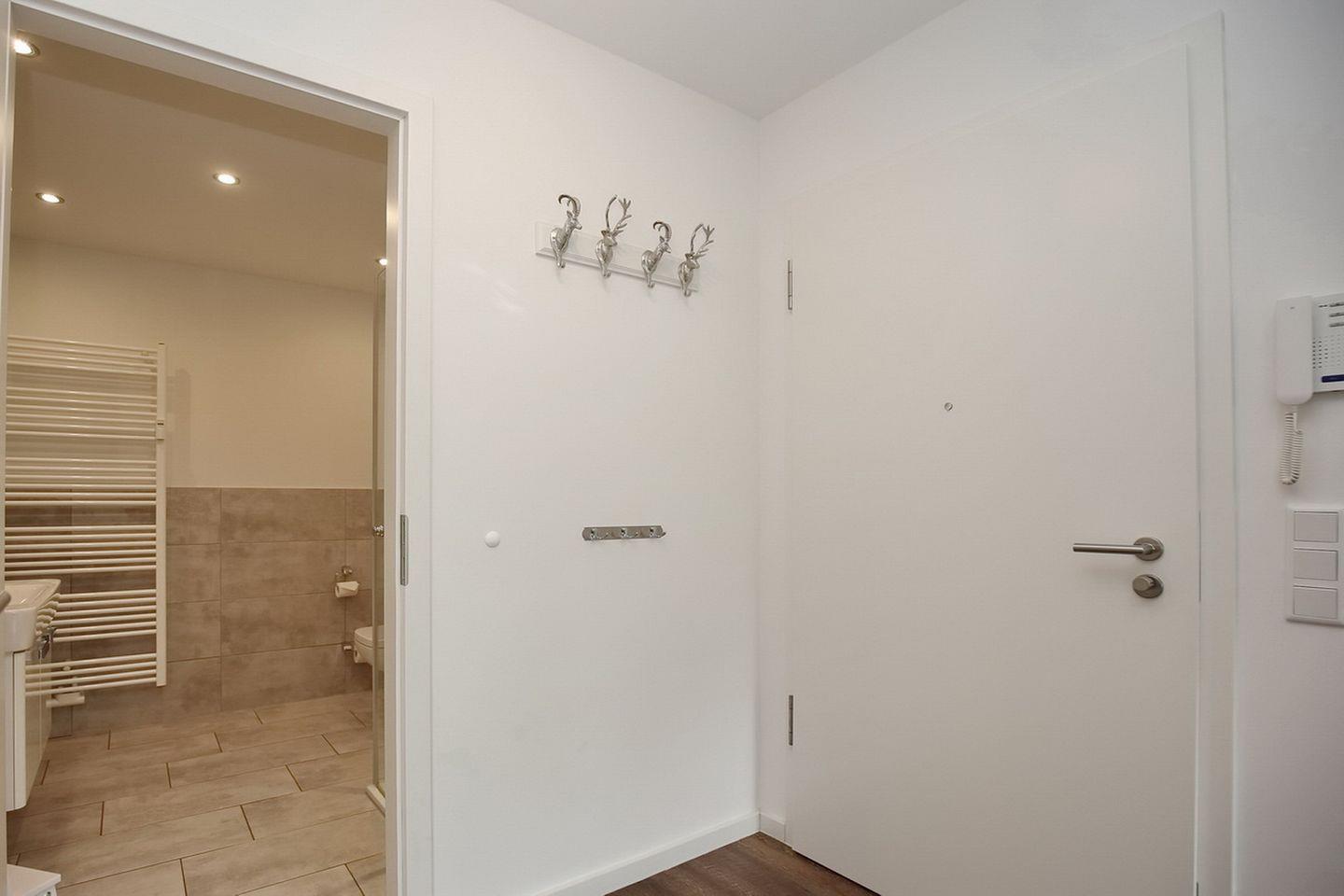 Die Wohnung befindet sich im Erdgeschoss auf der Südostseite des Hauses und hat eine große Terrasse mit Strandkorb. Der Boden ist mit Designbelag ausgelegt. Im offenen Wohnbereich findest du eine moderne Doppelschlafcouch (140 cm x 200 cm), auf der bequem 2 Personen schlafen können. Ausgestattet mit passenden Sesseln, Couchtisch, Flatscreen-TV, Blu-Ray-Player, DVD-Player und einer Auswahl an DVDs, lädt die Wohnung zu gemütlichen Filmabenden ein.