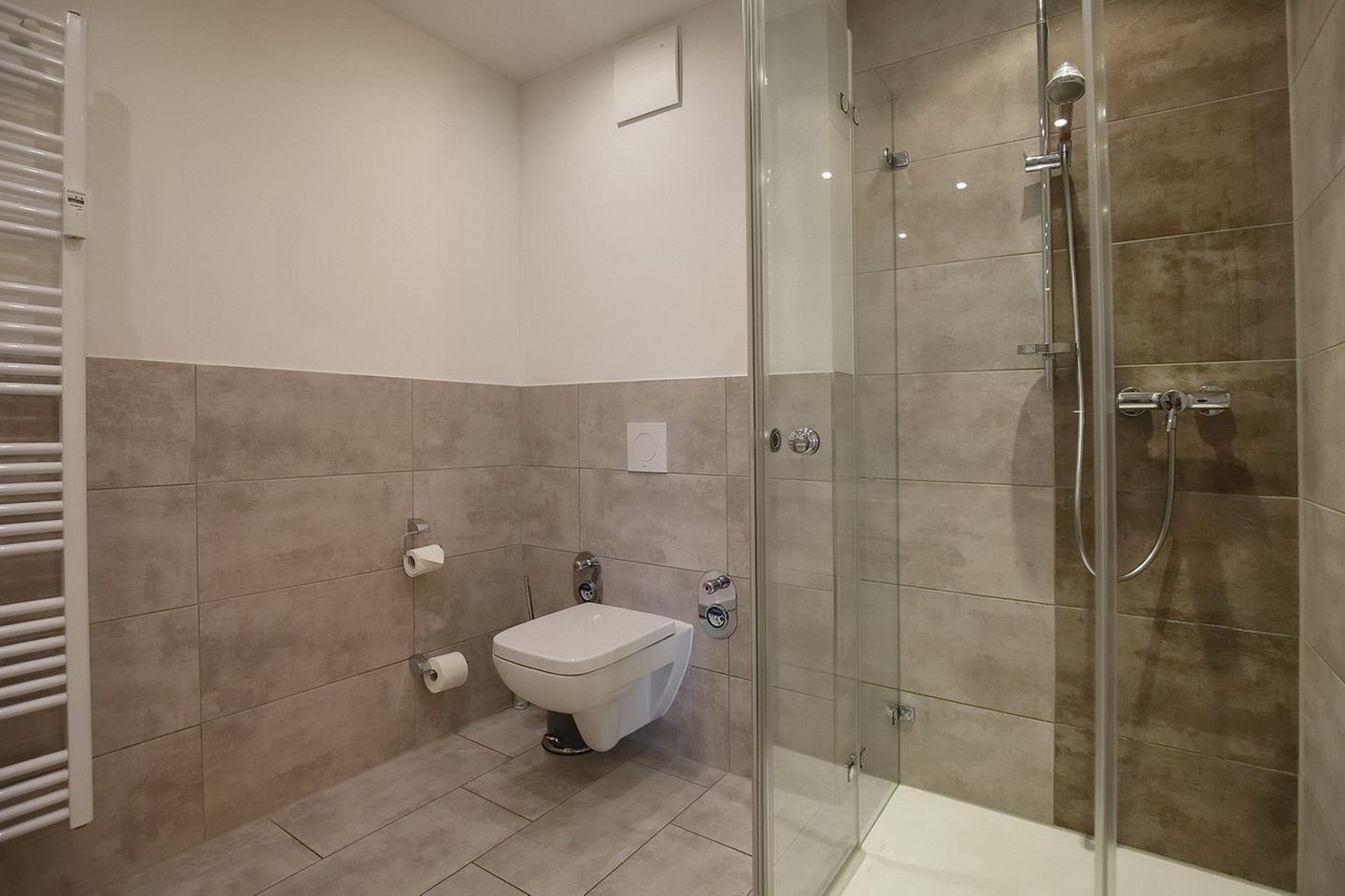 Im Schlafzimmer steht dir ein komfortables Boxspringbett mit zwei Matratzen und einer Auflage (180 cm x 200 cm) zur Verfügung. Der angrenzende begehbare Kleiderschrank bietet ausreichend Stauraum für deine Sachen. Natürlich gehört auch ein Duschbad mit einer großzügigen Dusche zur Wohnung.