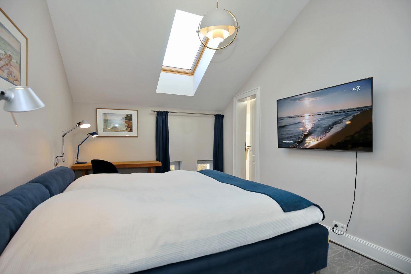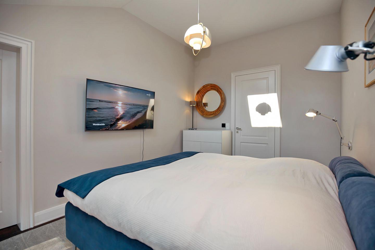 Das zweite Schlafzimmer erwartet Sie ebenfalls mit einem komfortablen Boxspringbett (180x200 cm), einem Schreibtisch, einer Kommode und ebenfalls mit einem internetfähigem Flatscreen-TV.