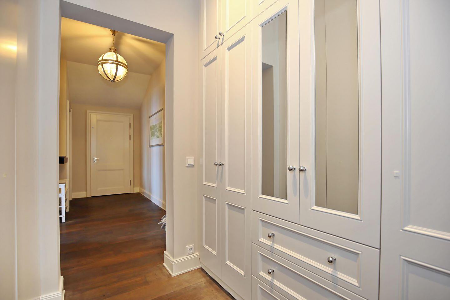 Ihre Bekleidung können Sie in einem großen Ankleidebereich mit begehbarem Kleiderschrank aufbewahren, der vom Flur aus für beide Schlafzimmer nutzbar ist.