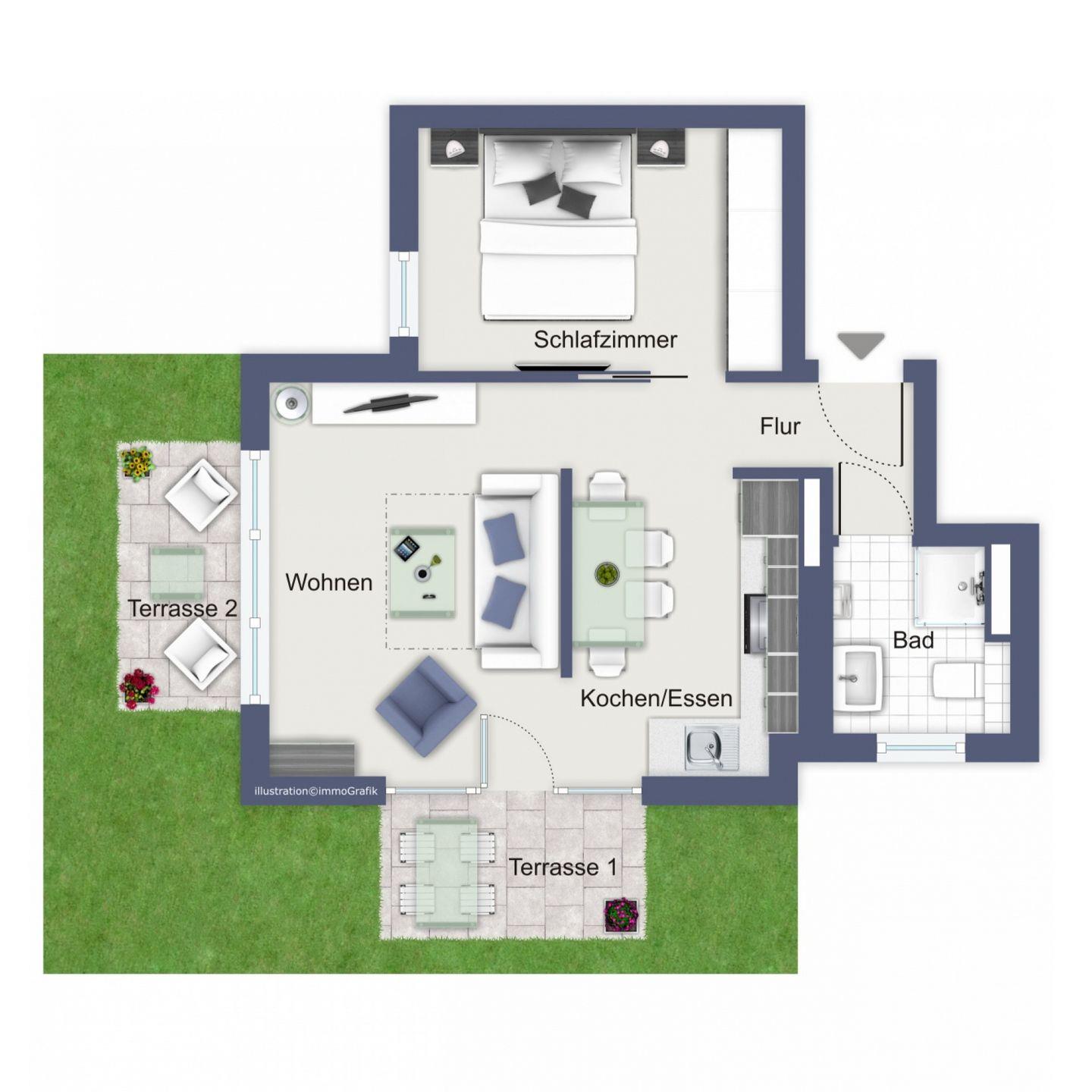 Die 50 m² große 2-Zimmer-Wohnung befindet sich im Erdgeschoss des Hauses. Die zwei möblierten Terrassen laden zu erholsamen Stunden im Freien ein. Die Ferienwohnung bietet mit einem Wohn- und Essbereich, einer Küchenzeile, einem Schlafzimmer und einem Duschbad bis zu 4 Personen Platz für einen schönen Ostseeurlaub. Bis zum Strand sind es nur circa 50 Meter.