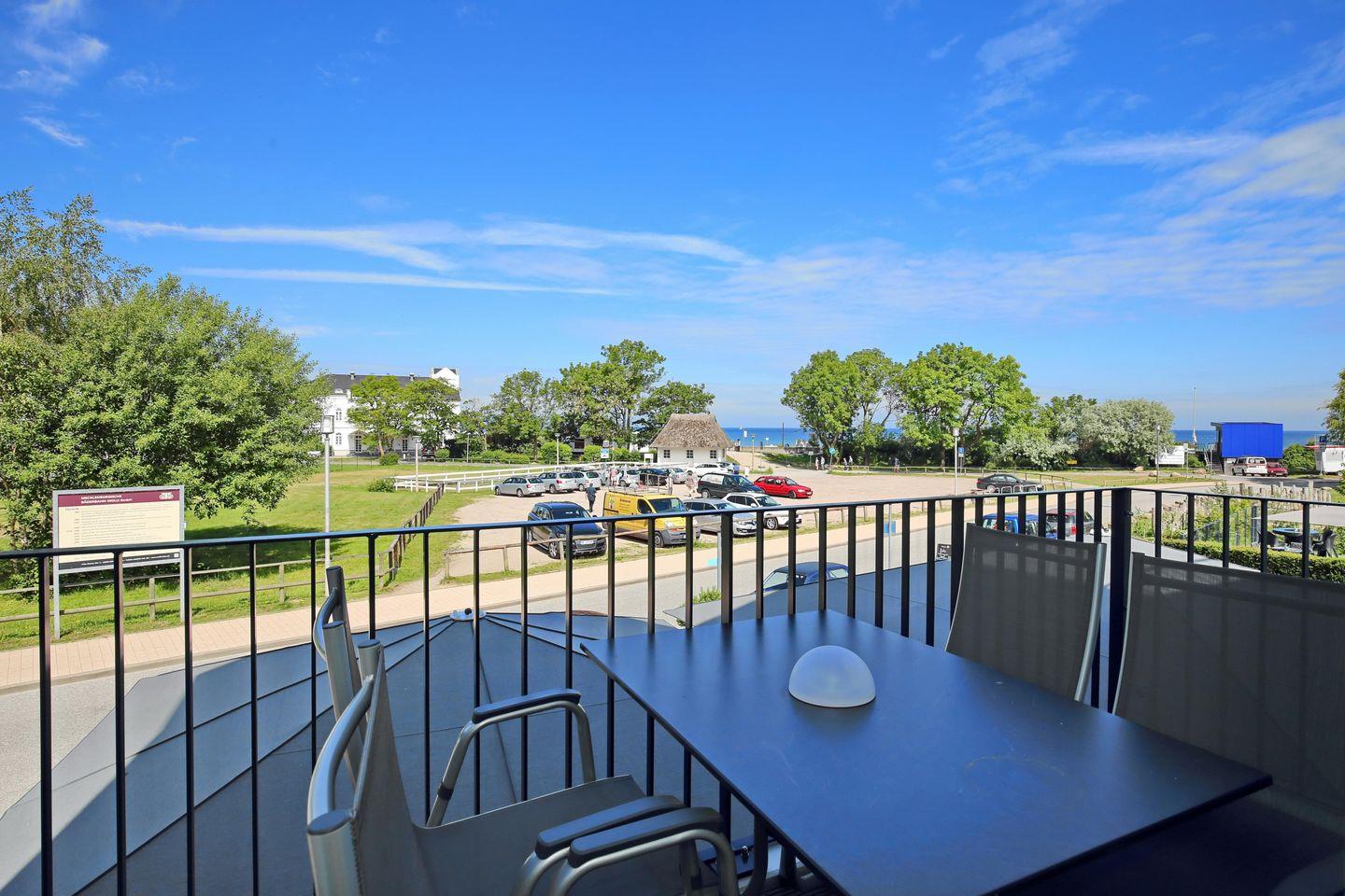 Moderne Ferienwohnung im Linden-Palais mit Seeblick, zwei Balkonen und nur 50 m vom Strand in Heiligendamm entfernt.
