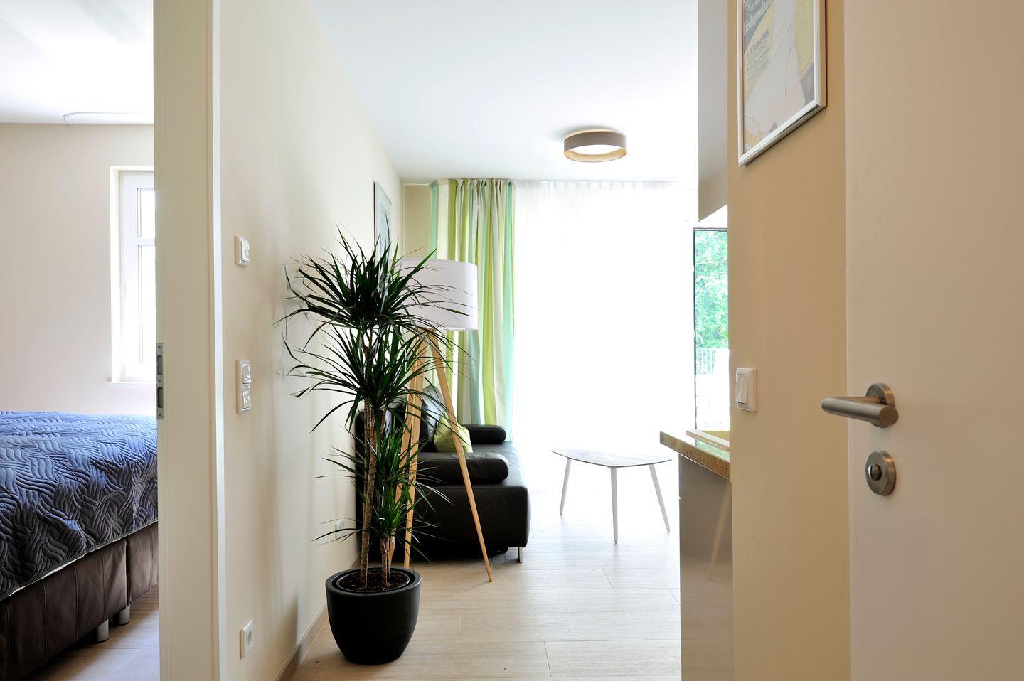 Die Ferienwohnung 11 im Linden-Palais in Heiligendamm ist eine 43 m² große 2-Zimmer-Wohnung für bis zu 4 Personen. Zum Haus gehören ein Fahrradabstellraum und zwei Fahrstühle.