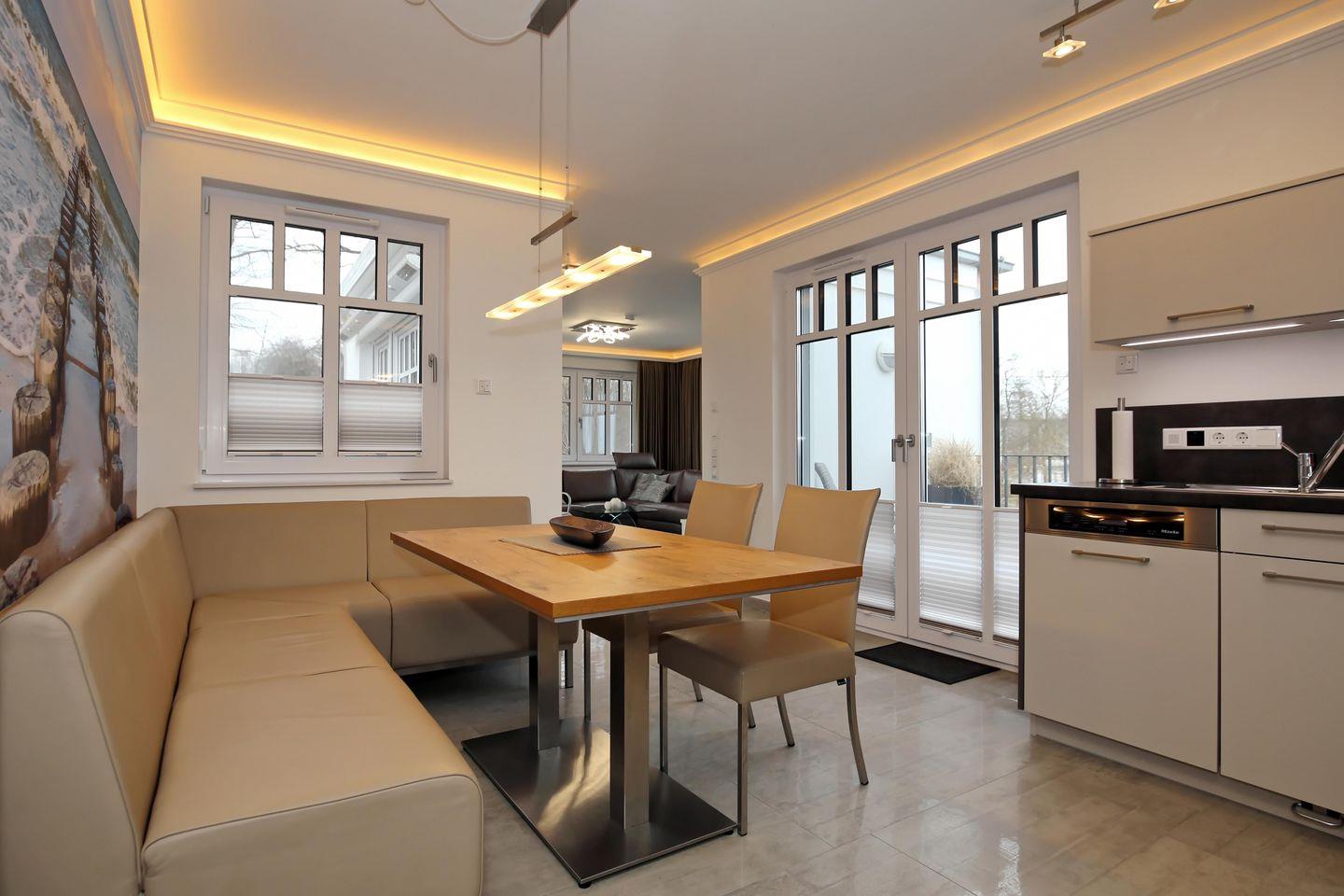 Moderne 3-Zimmer-Ferienwohnung im Linden-Palais mit Seeblick und zwei Dachterrassen, nur 50 m vom Strand in Heiligendamm entfernt.