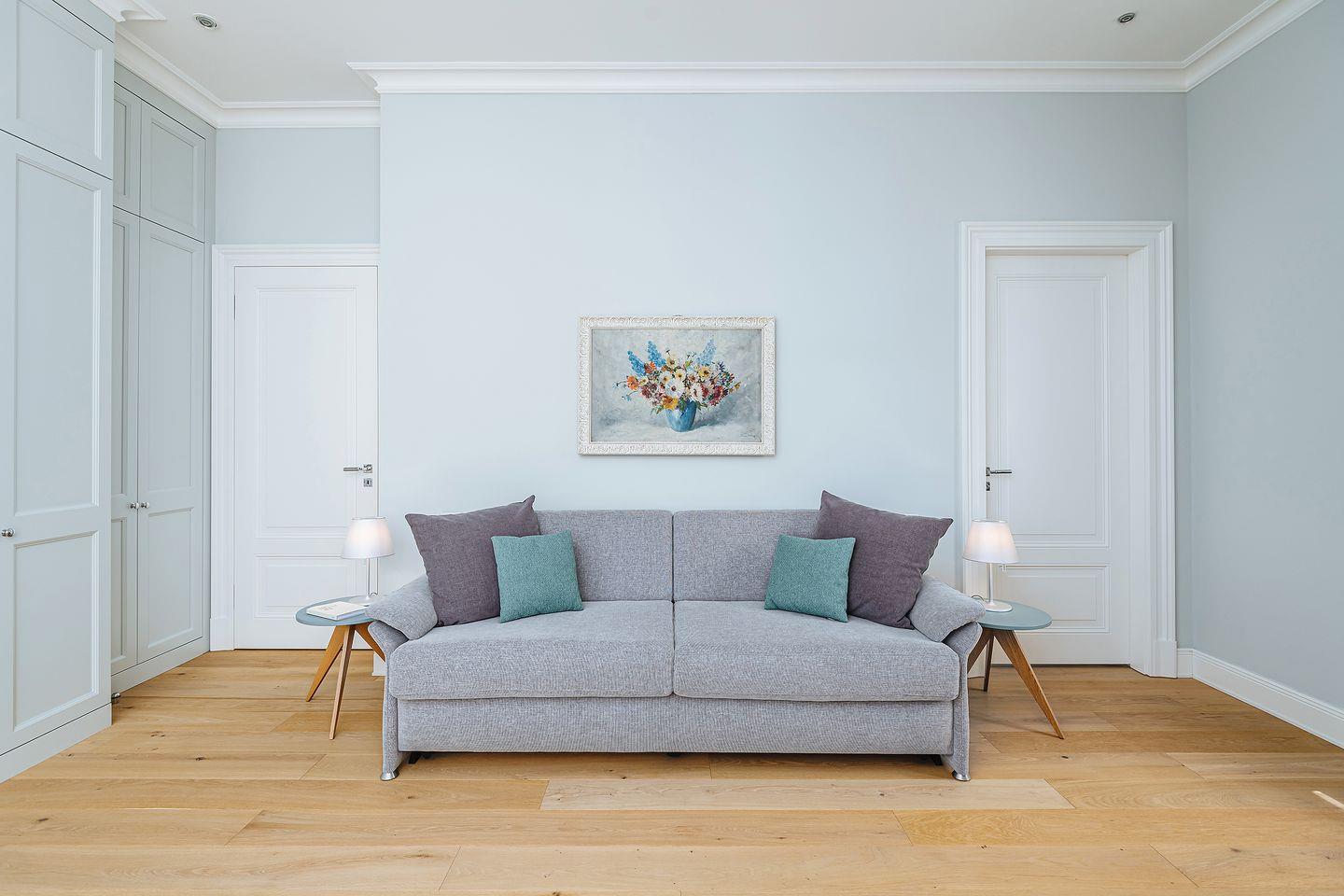 Das große Gäste- oder Arbeitszimmer verfügt über eine Schlafcouch (180 x 200 cm) und kann als weitere Schlafgelegenheit für maximal 2 Personen genutzt werden.