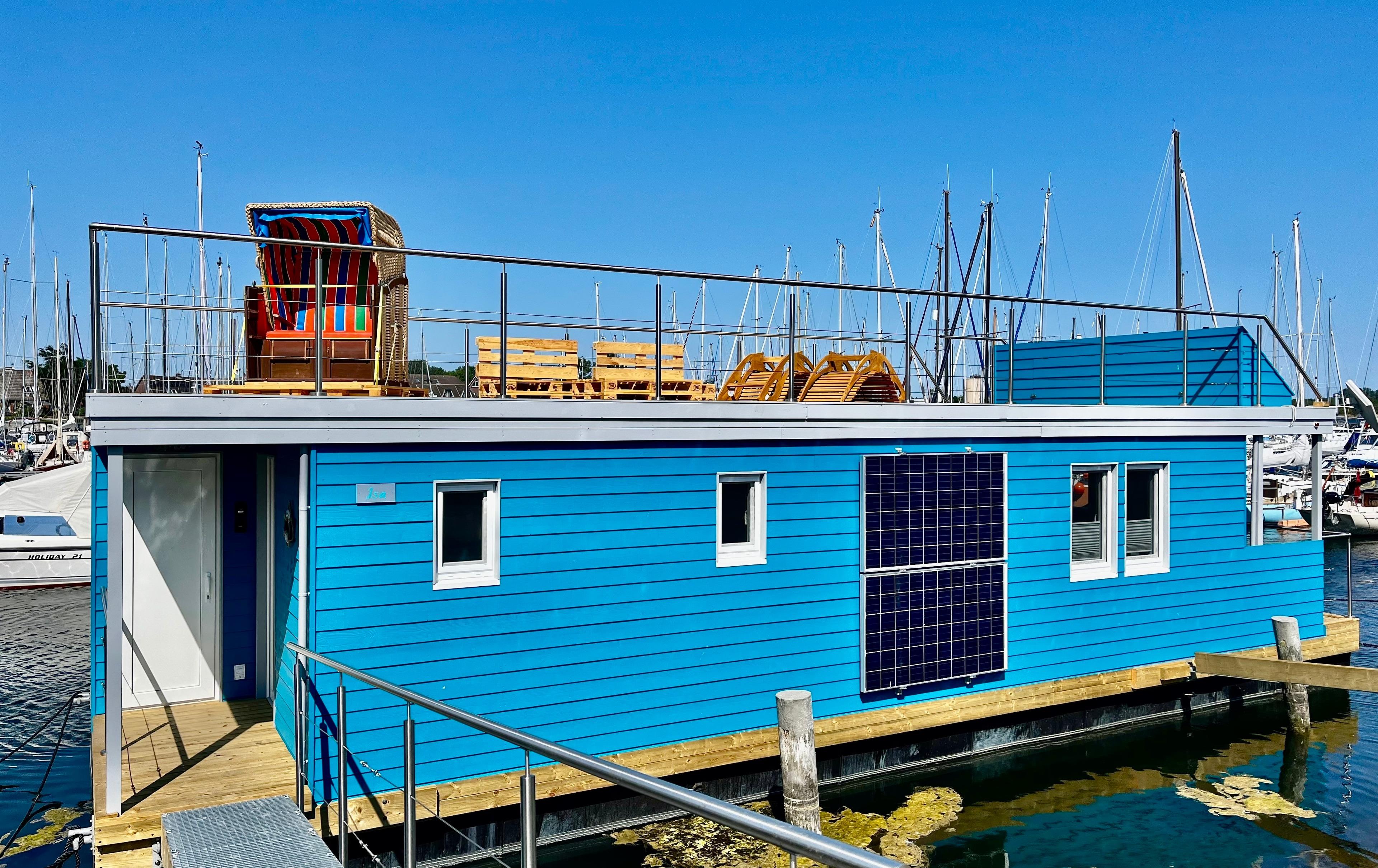 Erleben Sie ein einzigartiges Hausboot mit Meerblick und großem Sonnendeck in Großenbrode.